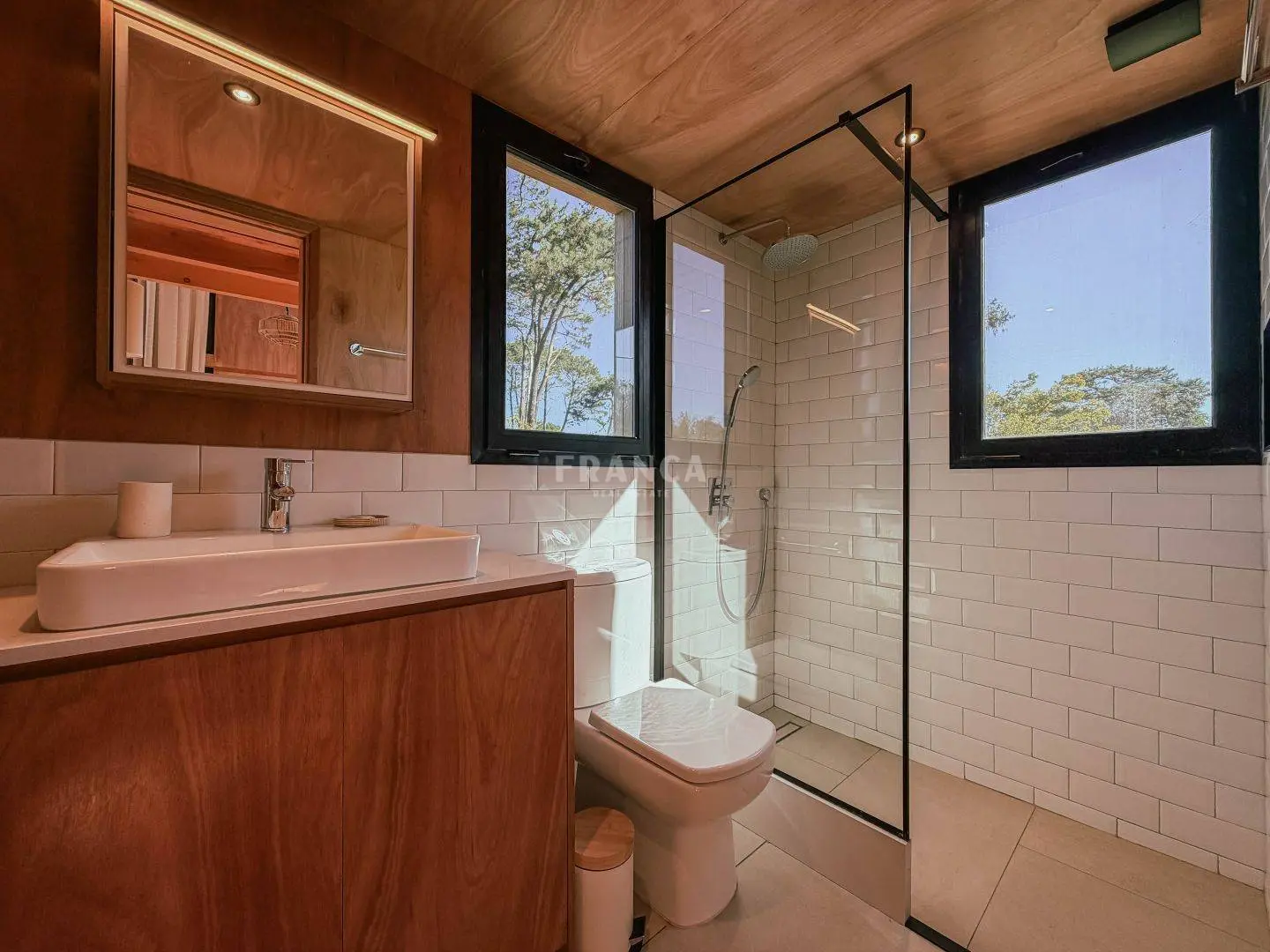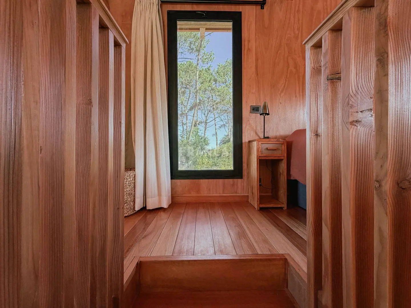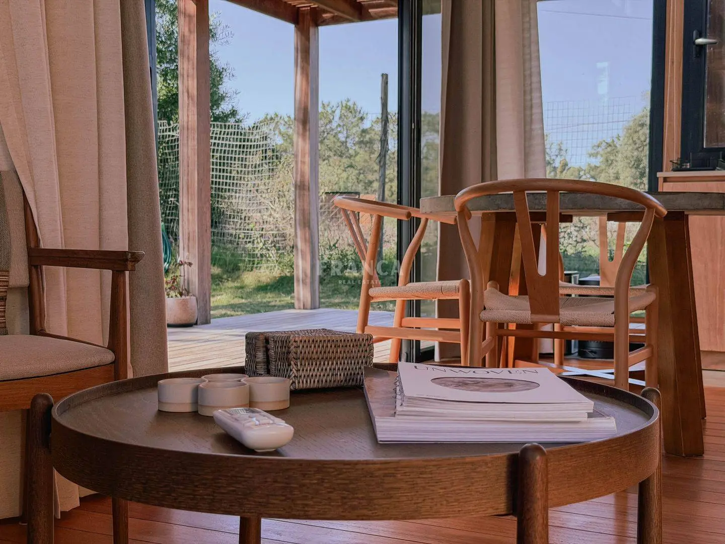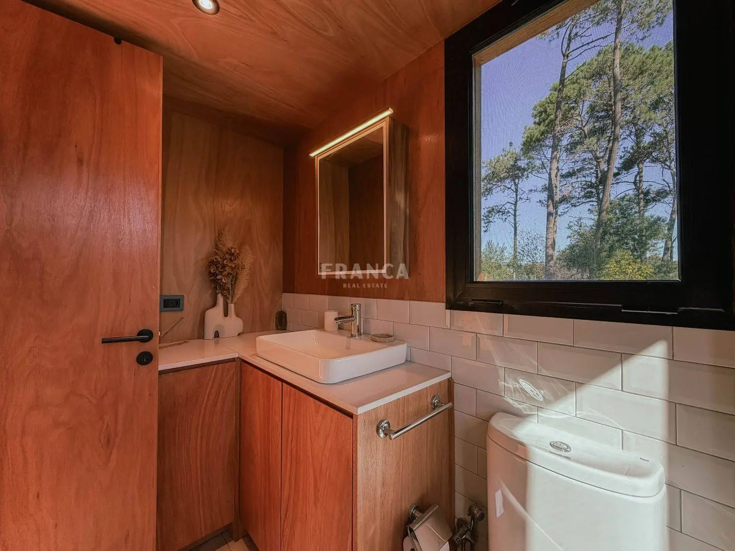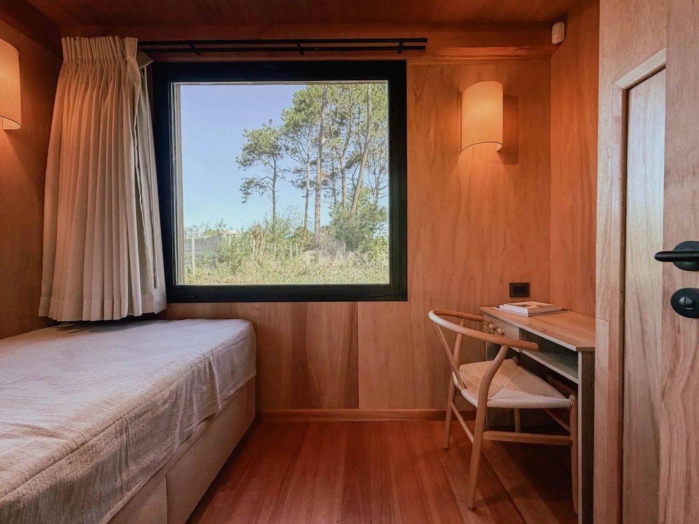 Moderna propiedad de madera muy cálida ubicada en zona residencial en cercanías de Barra Verde. Cuenta con un excelente diseño constructivo con materiales de calidad. Se distribuye en dos plantas, en planta baja living comedor muy luminoso y cálido, además un dormitorio definido con una cama simple y escritorio. En un altillo subiendo por una cómoda escalera se encuentra una cama doble. Para calefaccionar cuenta con un gran equipo de AC frio calor y ademas una estufa a pellets.