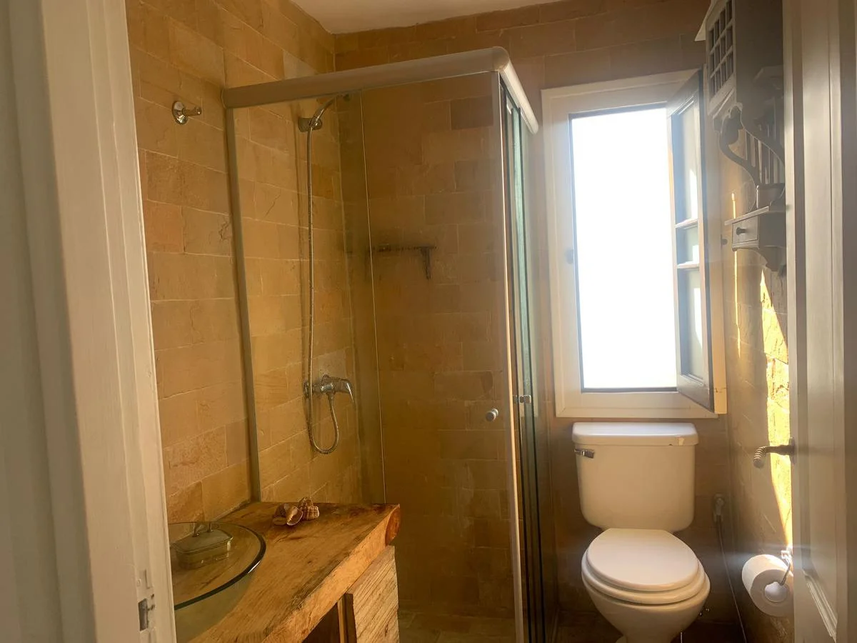 It has 4 bedrooms and 3 bathrooms, only the master suite. All have air conditioning, as does the living room. All rooms have independent access to the garden.