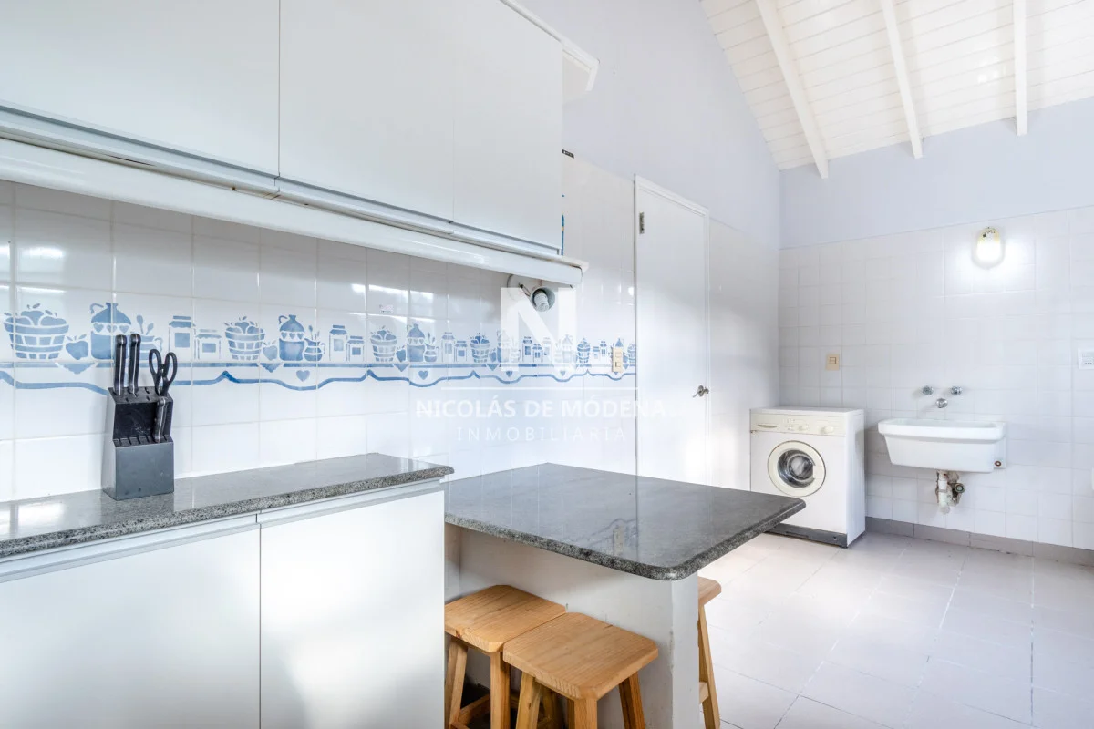 La cocina, de generosas dimensiones, favorece la comodidad y el movimiento, con lugar para almacenamiento y una dinámica fluida hacia las áreas comunes.