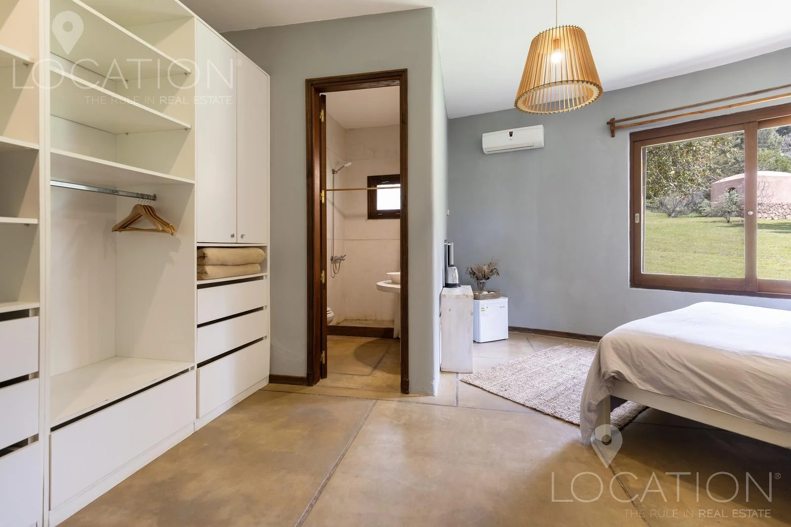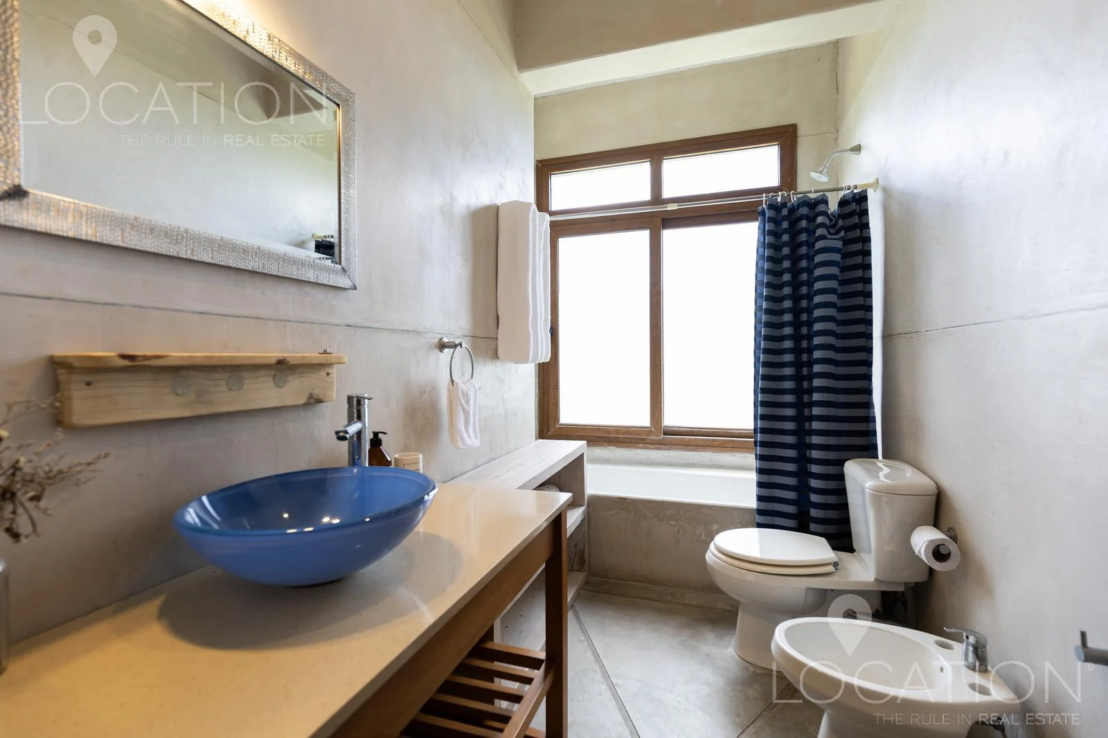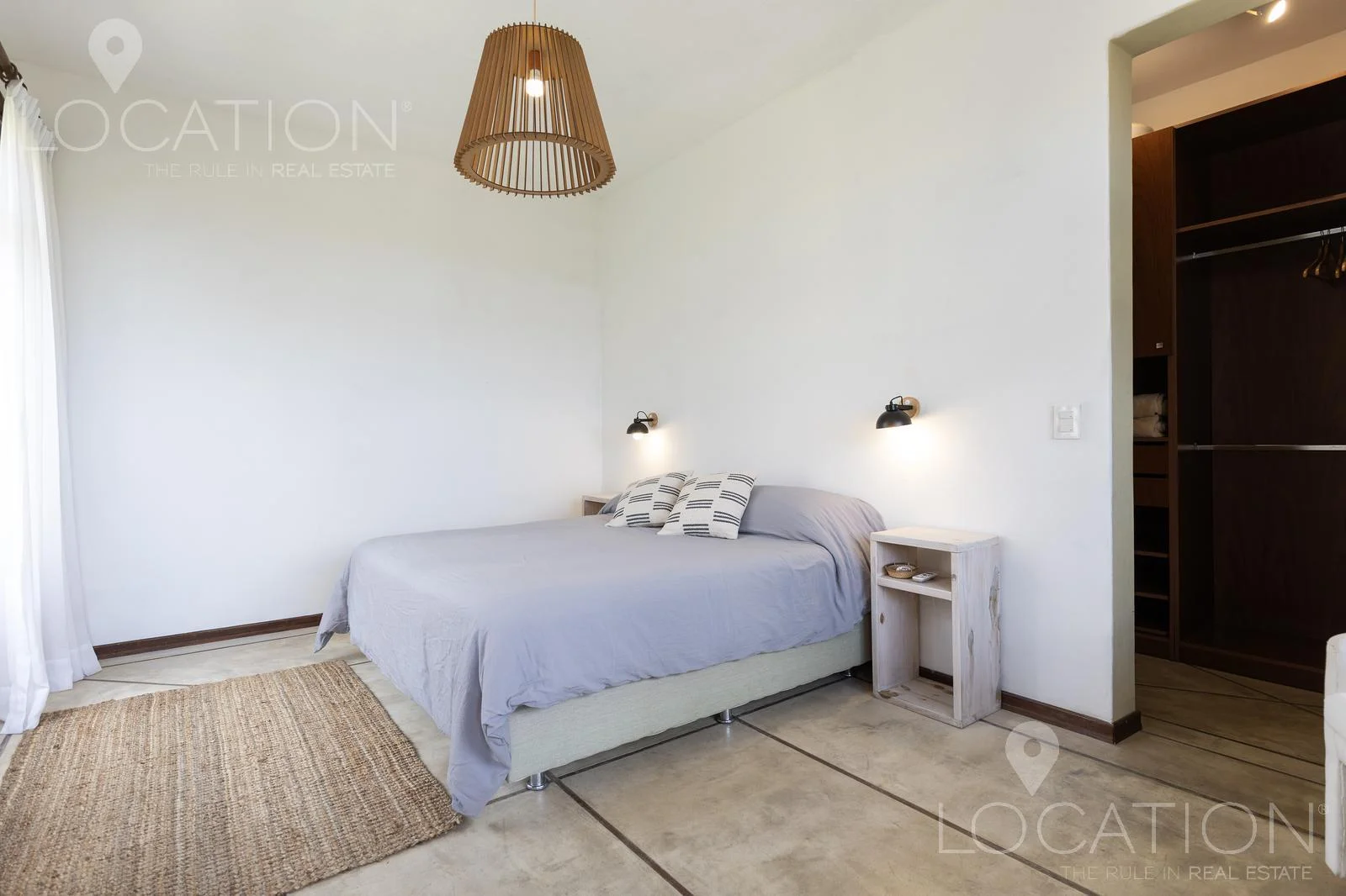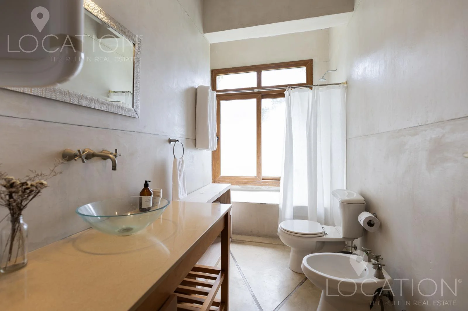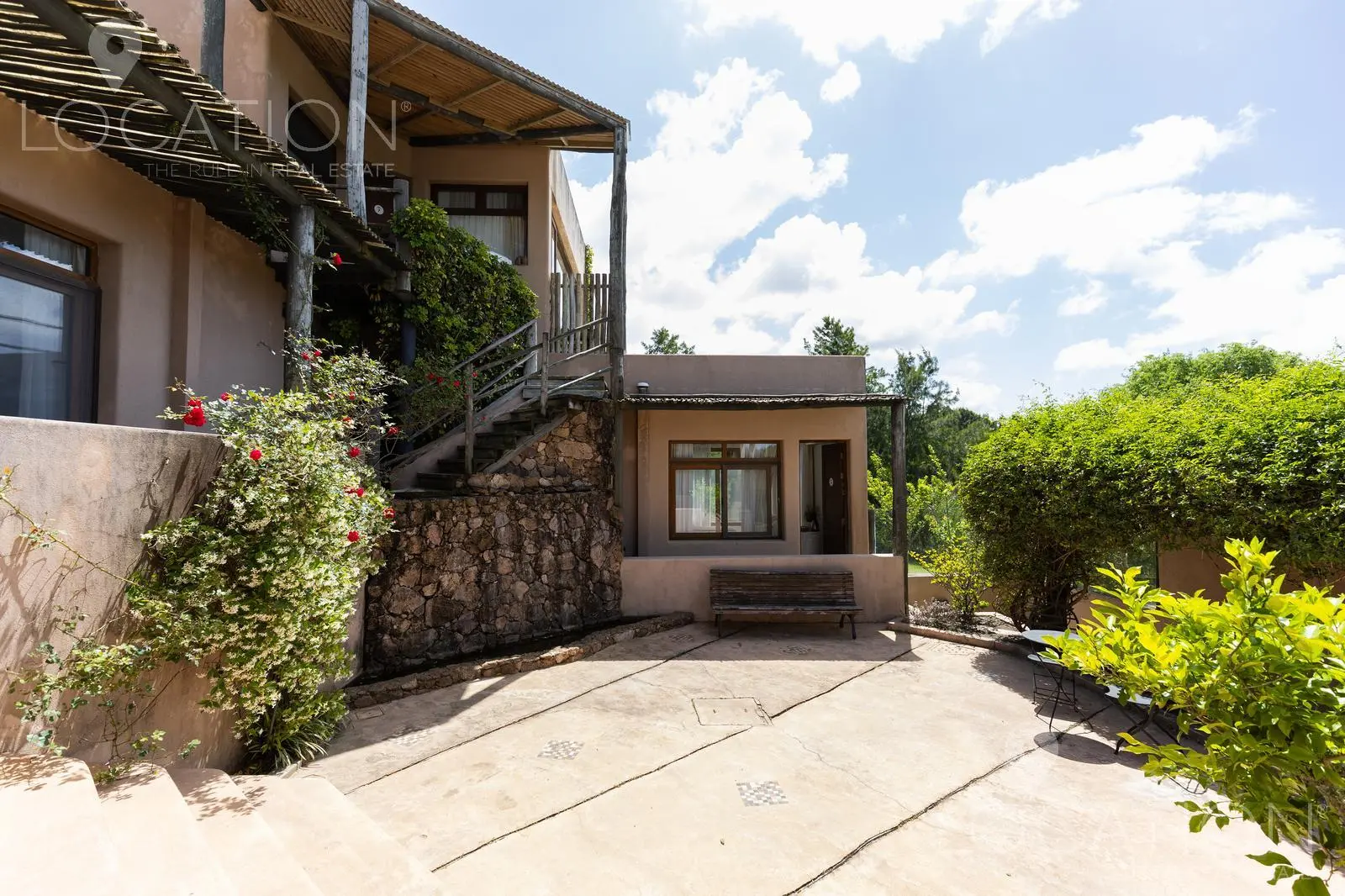 Espectacular casa en chacra de 20 hectáreas, ubicada en Camino Eguzquiza, La Barra. Cuenta con 9 habitaciones en suite, cada una de ellas con aire acondicionado y frigobar. También cuenta con 4 glampings casa uno con cama matrimonial. En la casa principal se encuentran las 9 habitaciones (una de ellas cuenta con sauna), un espacio para gym, living, comedor y cocina definica. En el exterior cuenta con una gran piscina, galería y parrillero. Tiene lago propio con una isla y cuenta con caballos y además un fogón. Capacidad para 26 personas