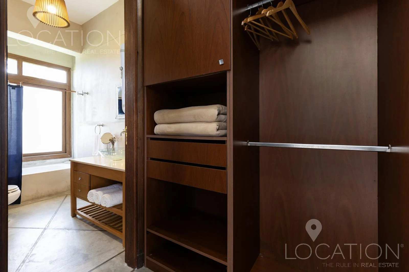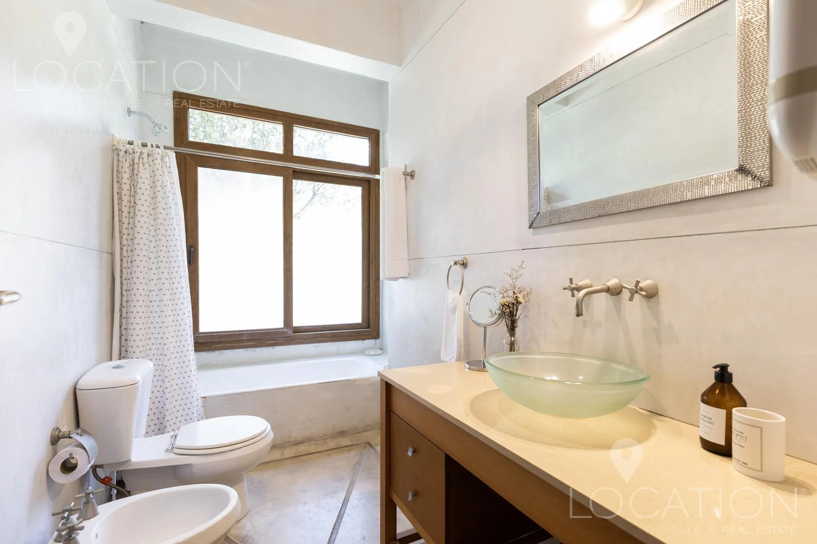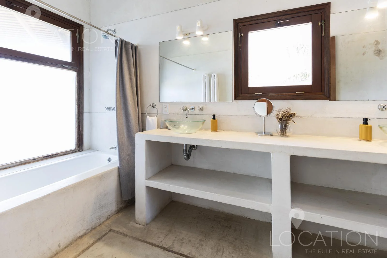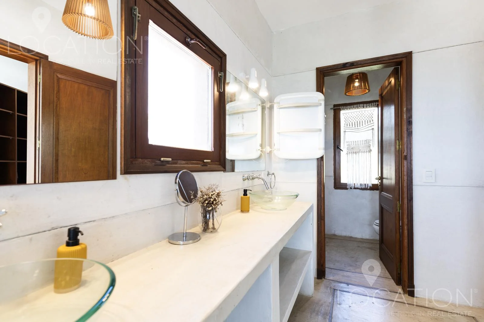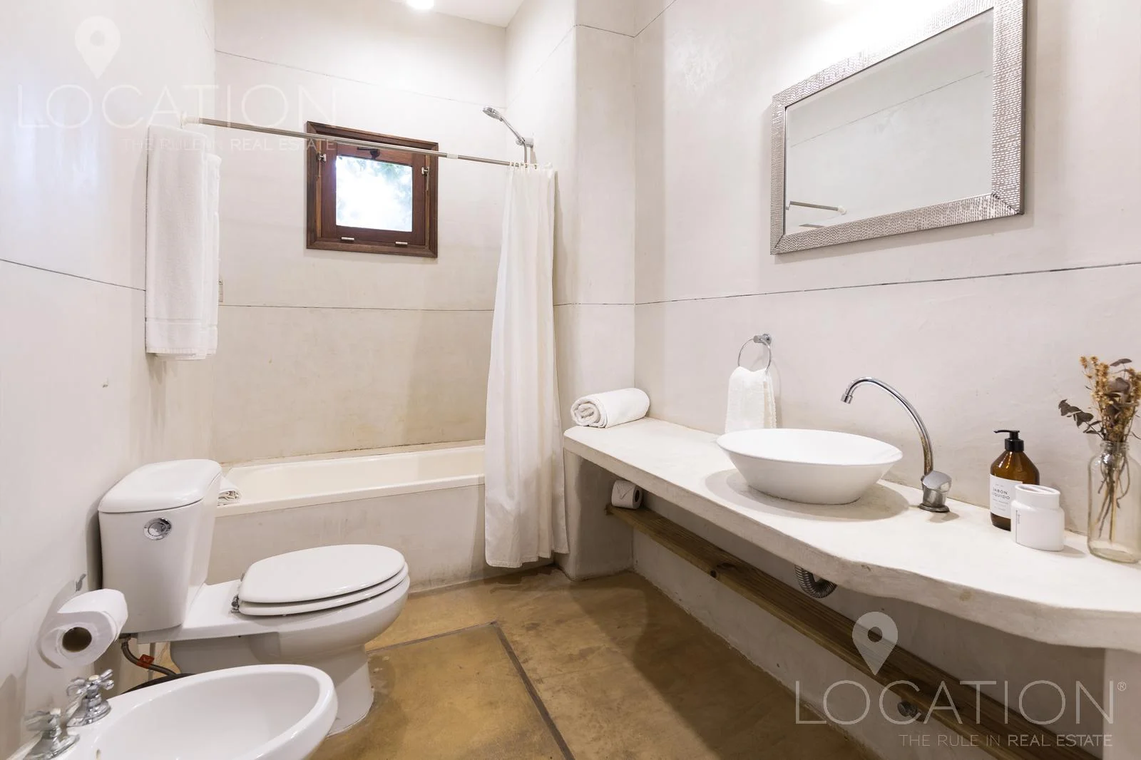 Espectacular casa en chacra de 20 hectáreas, ubicada en Camino Eguzquiza, La Barra. Cuenta con 9 habitaciones en suite, cada una de ellas con aire acondicionado y frigobar. También cuenta con 4 glampings casa uno con cama matrimonial. En la casa principal se encuentran las 9 habitaciones (una de ellas cuenta con sauna), un espacio para gym, living, comedor y cocina definica. En el exterior cuenta con una gran piscina, galería y parrillero. Tiene lago propio con una isla y cuenta con caballos y además un fogón. Capacidad para 26 personas