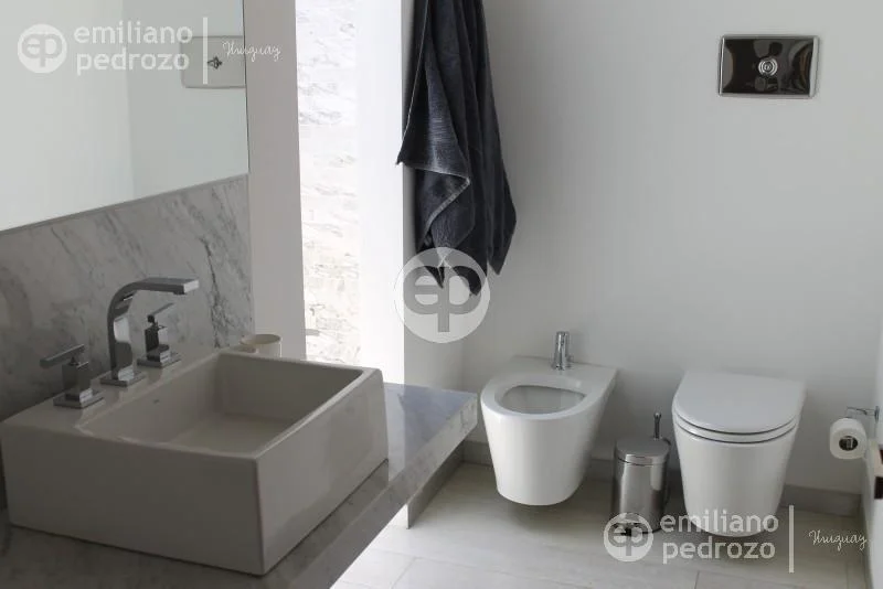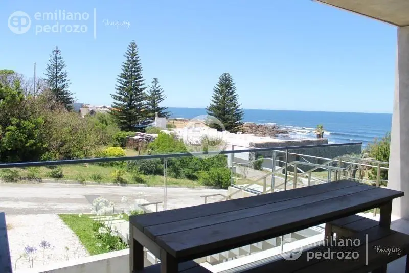 Casa moderna a media cuadra del mar! Se desarrolla en tres niveles y tiene hermosas vistas al Océano. A metros de la playa que le sigue a la Posta del Cangrejo y una cuadra de OH La Barra. Cuenta con 5 dormitorios en suite (3 arriba siendo uno matrimonial y 2 con 1 cama simple cada uno), y 2 en el cuarto de abajo, 1 con cama matrimonial y uno con cama simple. Ademas cuenta con lavadero, segunda heladera, balcon con parrillero, toilette, y vista al mar.