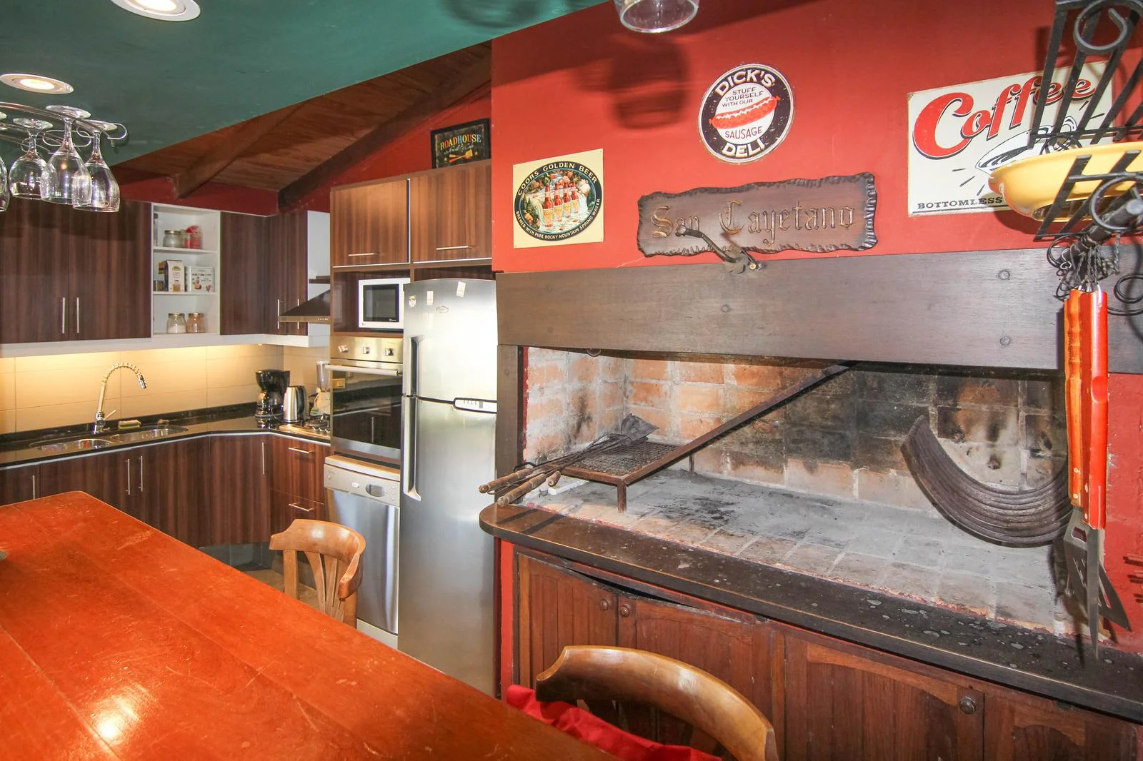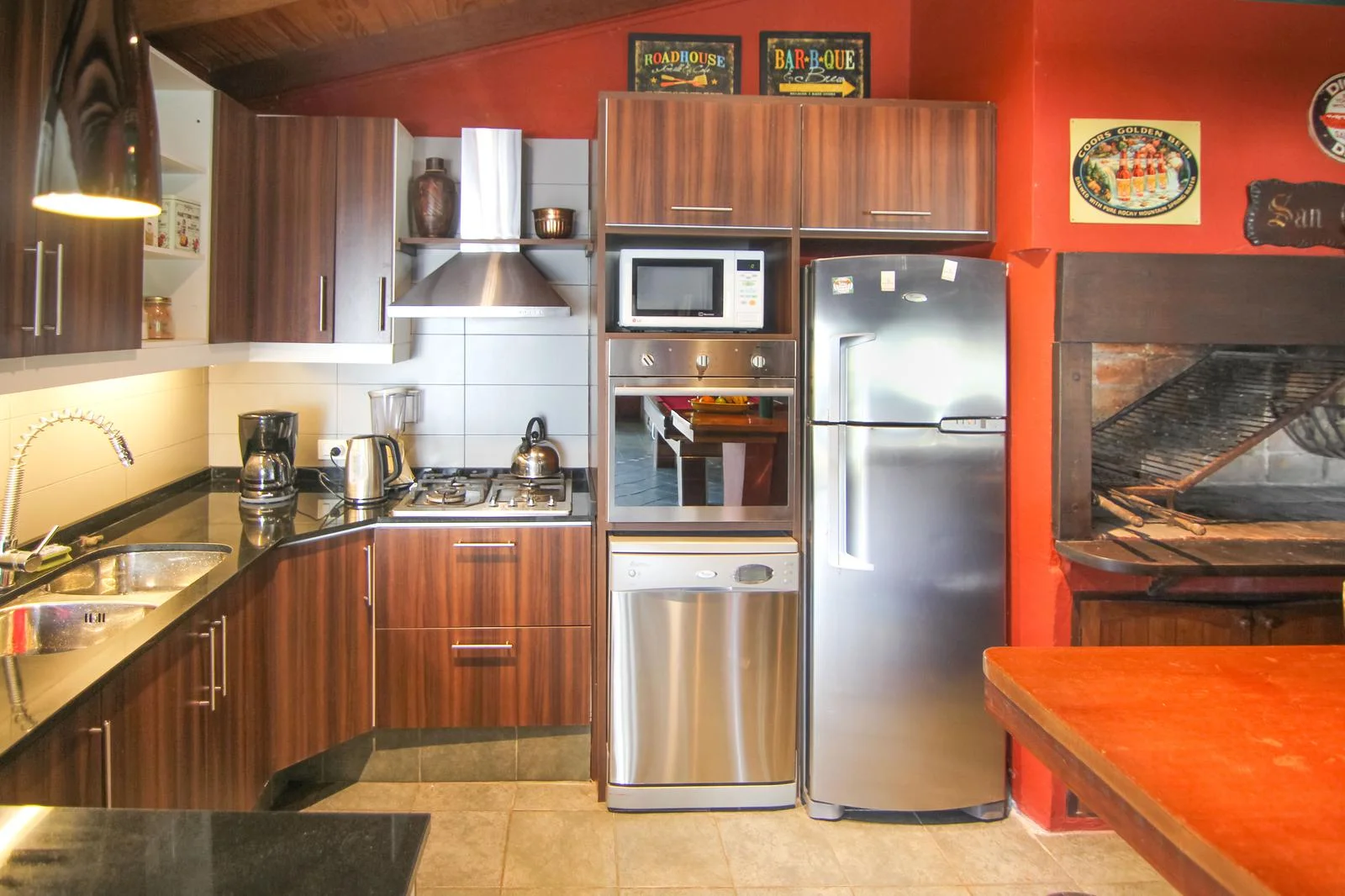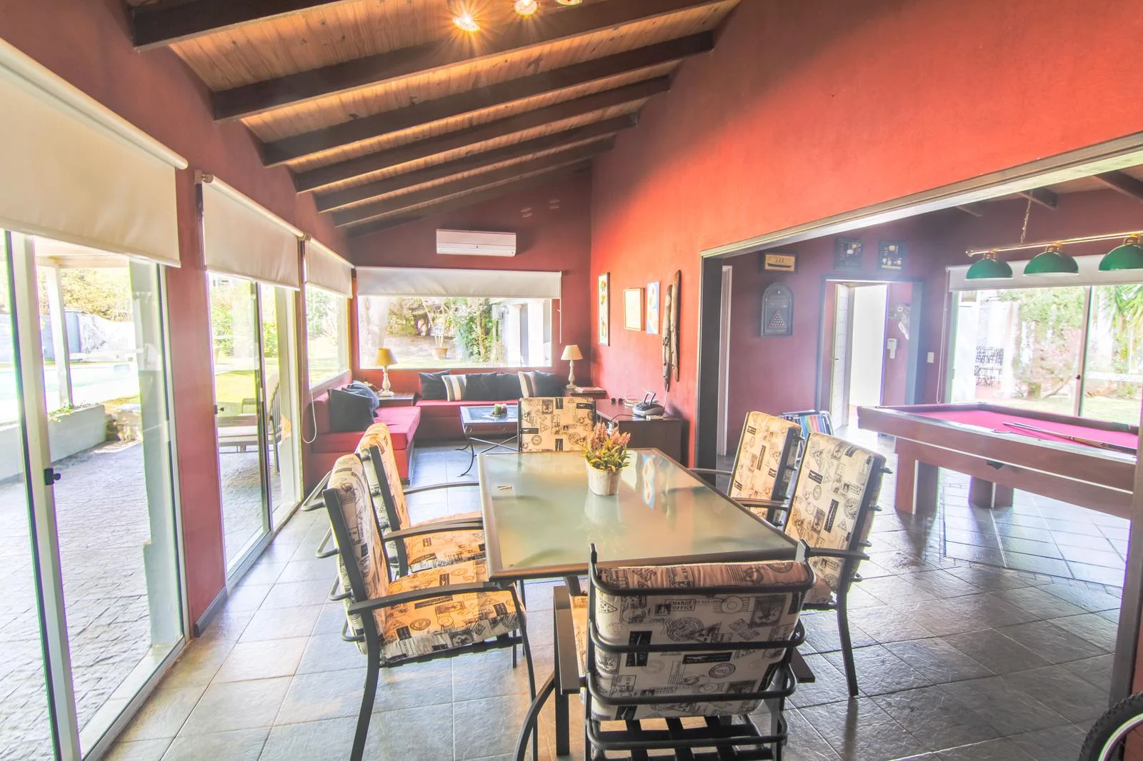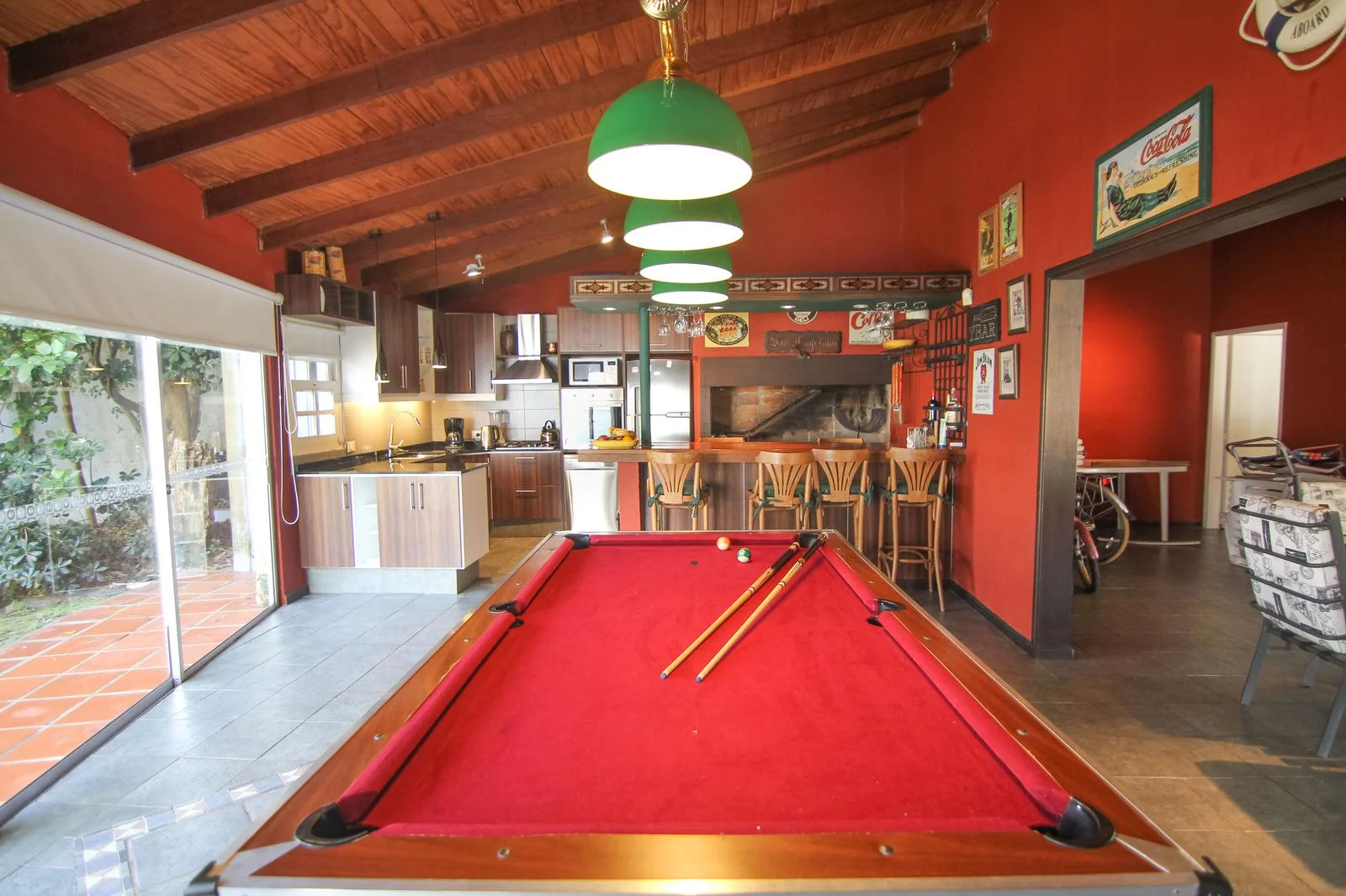 The property features 4 bedrooms and comes fully equipped. Additionally, there is a covered barbecue area with a pool table.