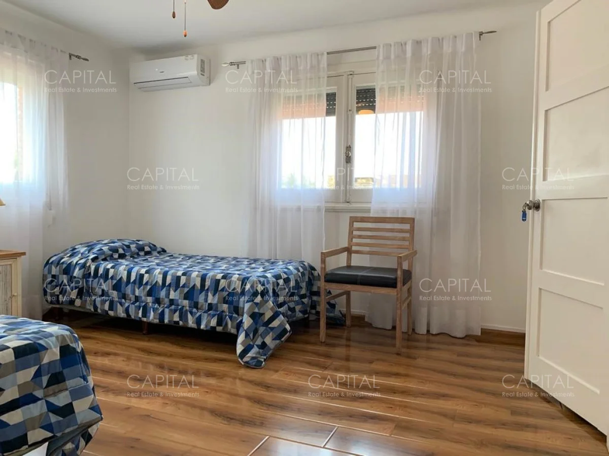 Cómoda propiedad de ambientes amplios y luminosos. Cuenta con un espacioso living comedor con muy buena luz natural y dos estufas a leña. Cuatro dormitorios en planta alta, con dos baños, uno de ellos en suite; más dependencia de servicio con baño en planta baja (el mismo también puede utilizarse como toilette). Gran cocina bien equipada con comedor diario y área de lavadero en el exterior.