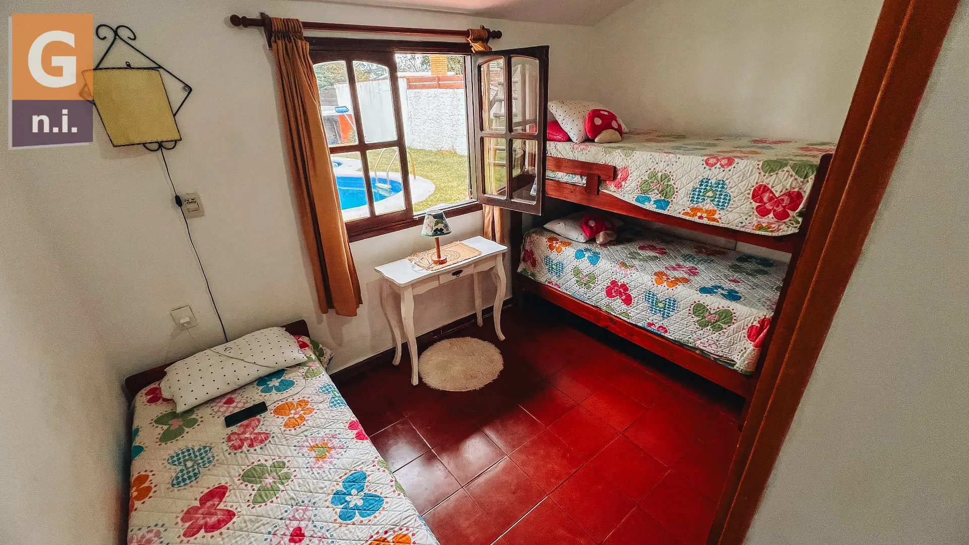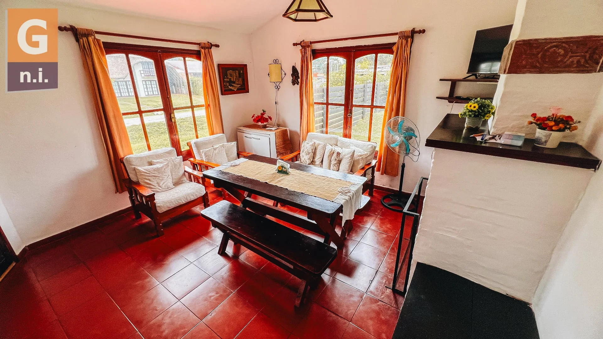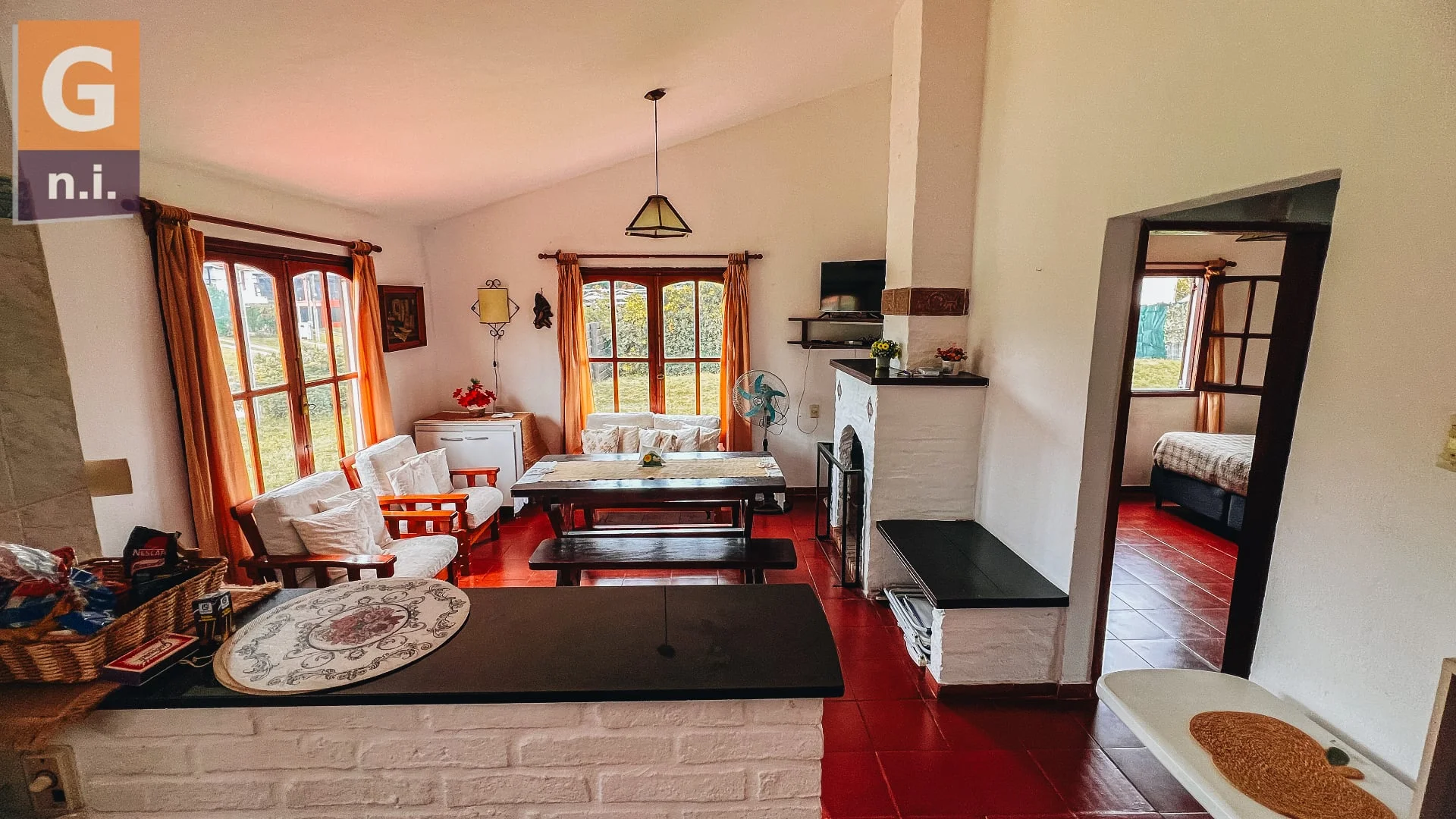 Se distribuye en living-comedor con estufa a leña, cocina separada por mesada en ladrillo y granito, un baño, dos dormitorios, parrillero techado, parque/jardín.