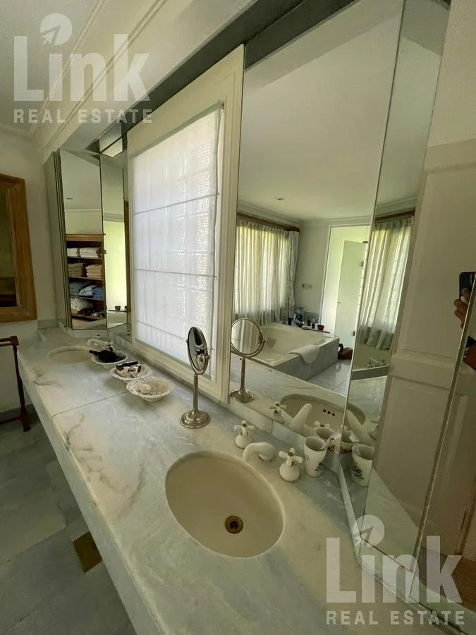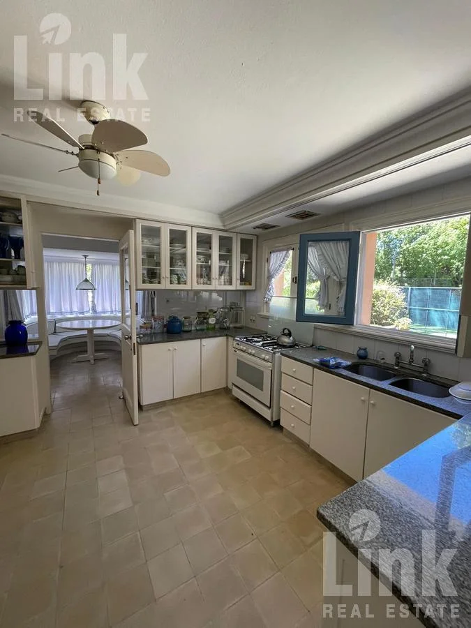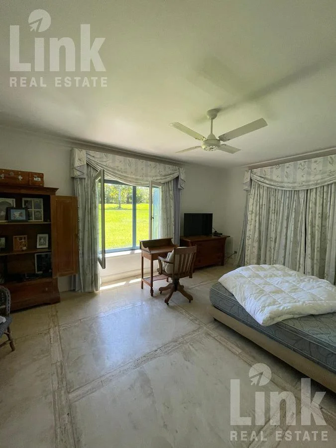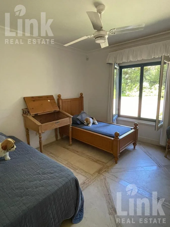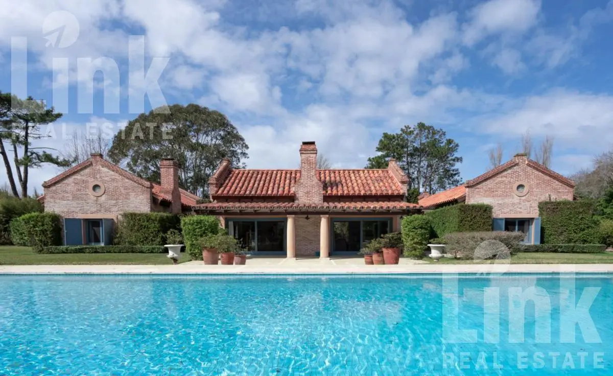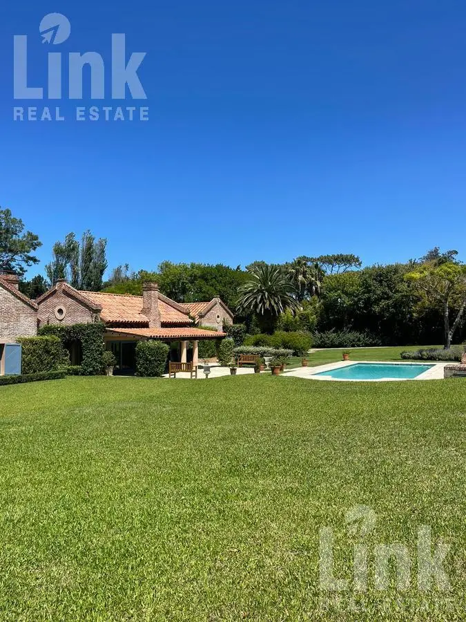 En un predio de 11.433 m2 y dividida en distintos módulos, cuenta con 5 dormitorios en suite más dependencia de servicio.  Amplio living con estufa a leña, comedor y cocina definida.  Espectacular jardín con piscina climatizada, cancha de paddle y barbacoa. Cochera para tres autos.