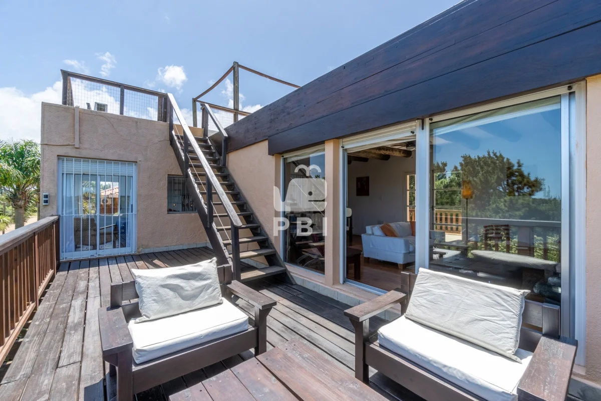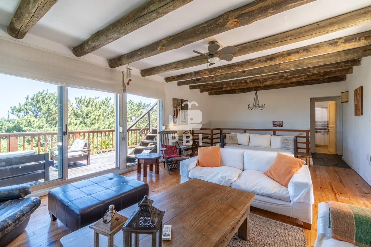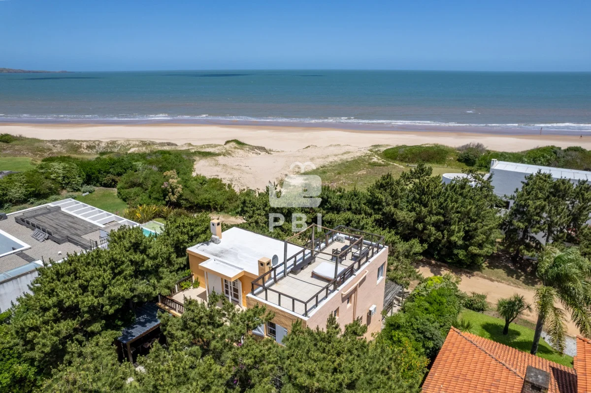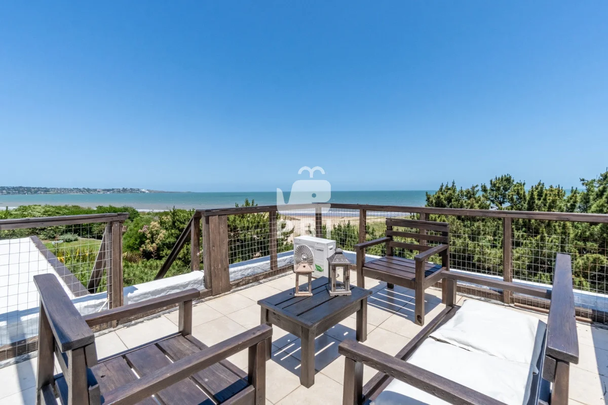 Posee 2 niveles, en planta baja living con chimenea con salida a una terraza amplia que da al frente. En planta alta amplio living con salida a un gran deck con vistas al mar y otra terraza mirando a la piscina.