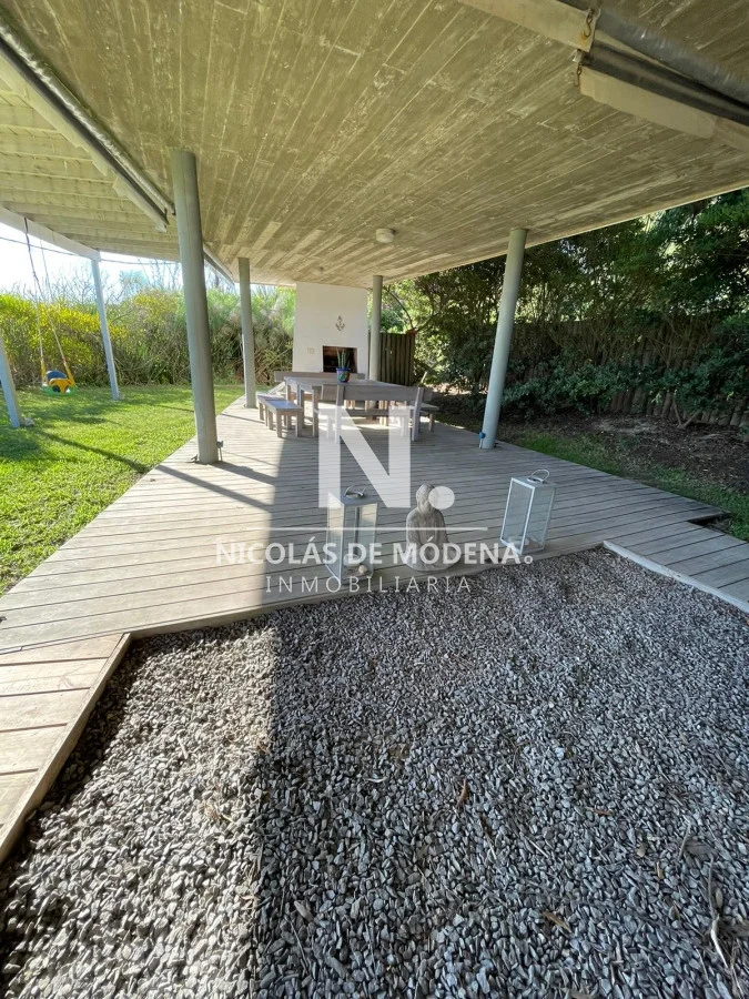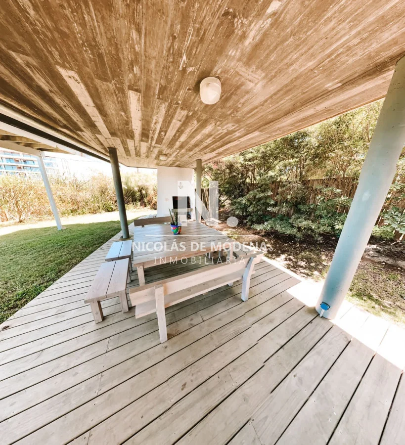 La casa se organiza en torno a un living-comedor con cocina integrada, abierto hacia una terraza con deck protagonista, el lugar donde se pasa la mayor parte del día, contemplando el mar y disfrutando de la brisa oceánica. Además, cuenta con dos parrilleros: uno en la planta alta con vista a la playa, perfecto para atardeceres inolvidables, y otro en planta baja, acompañado de un jardín con sombra natural, pensado para largas sobremesas en verano.