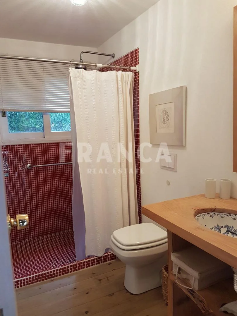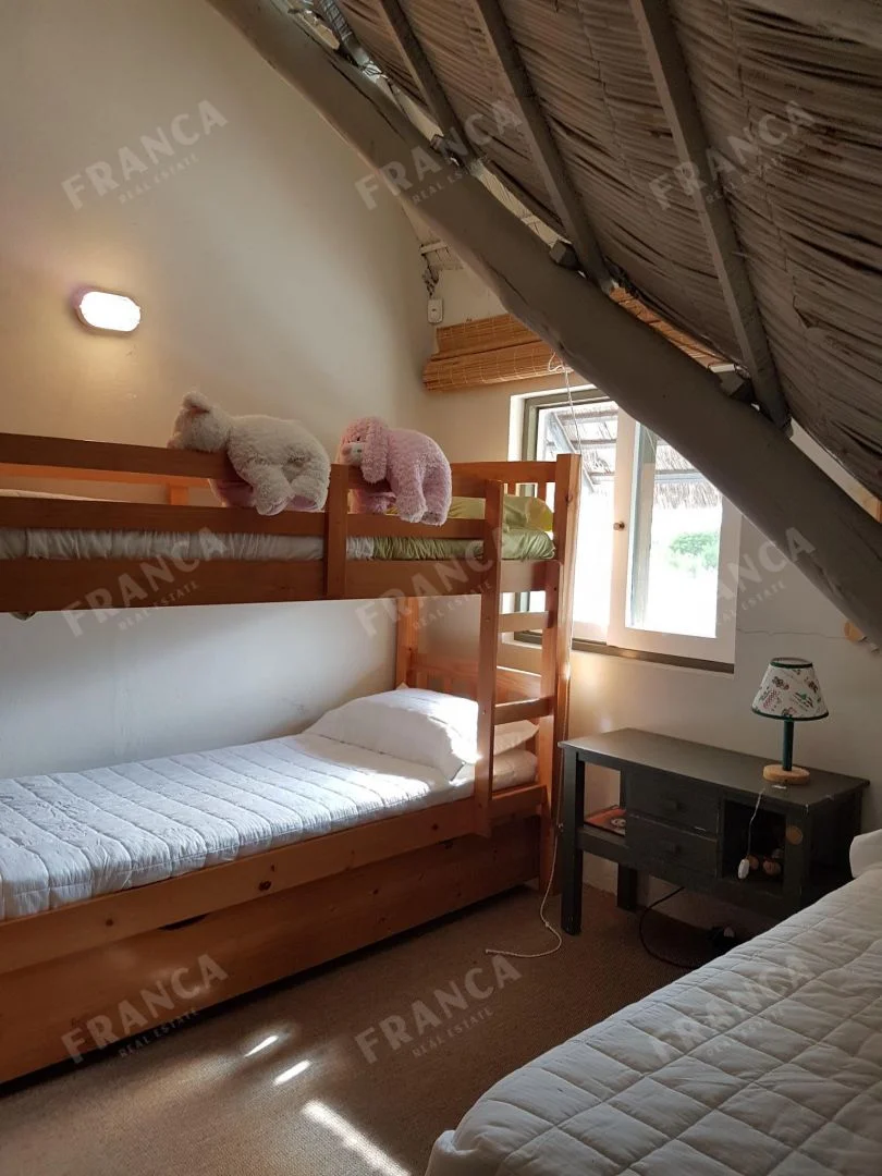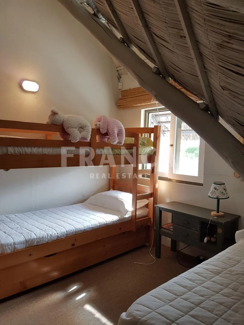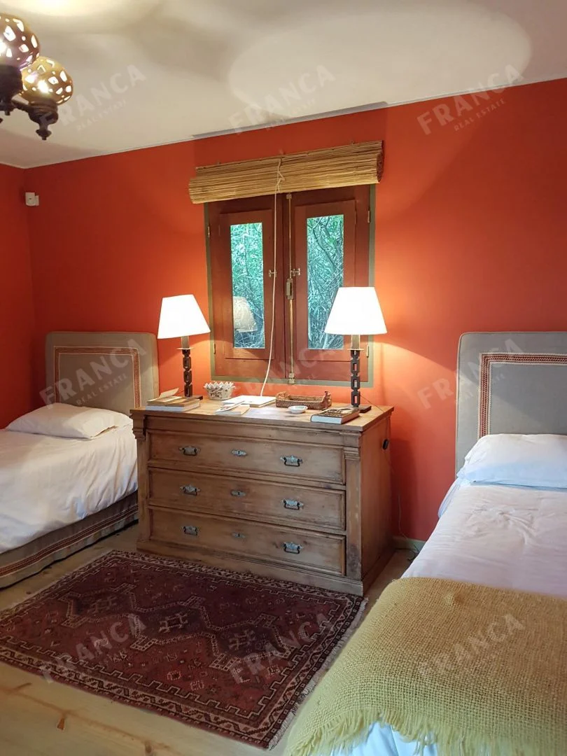 Esta casa rodeada de arboles y con un jardín encantador que la rodea consta de 3 dormitorios en planta alta , Abajo otro dormitorio con su baño. Y en otro bloque: dos dormitorios que comparten un baño.