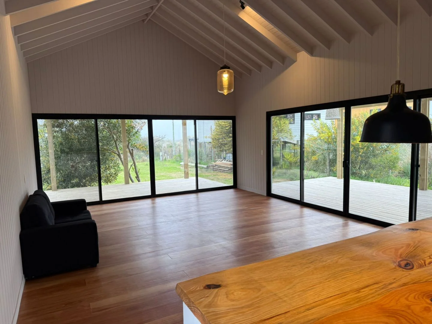 El living comedor es amplio y se integra perfectamente con el exterior, generando una sensación de continuidad entre el interior de la casa y el jardín. El diseño arquitectónico aprovecha al máximo la luz natural y la orientación del terreno, logrando espacios cálidos durante todo el año.