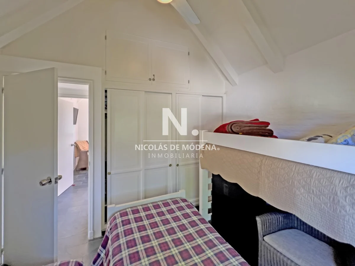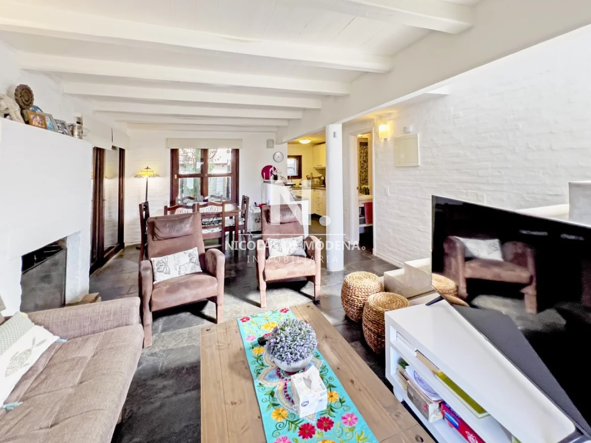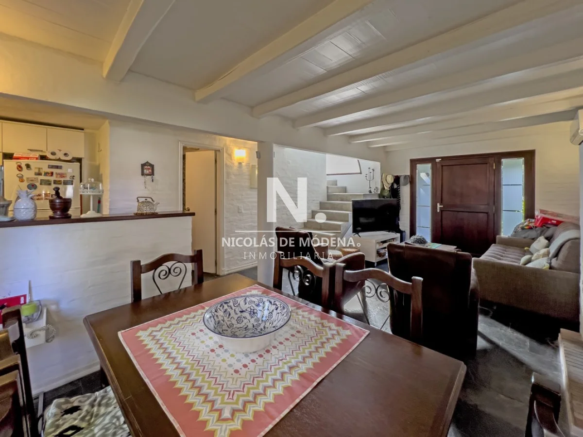Casa en venta ubicada en Barrio Privado. Distribuida en dos plantas. Planta Baja: living-comedor con estufa a leña y acceso directo al parrillero; cocina y baño. Planta alta dos dormitorios y baño. Piscina abierta, solarium; canchas de tenis y pádel; gimnasio y vigilancia. A solo 200 metros del mar, y 5 minutos del centro de Punta del Este. Referencia Interna : Tera-25376