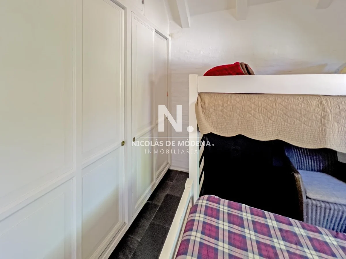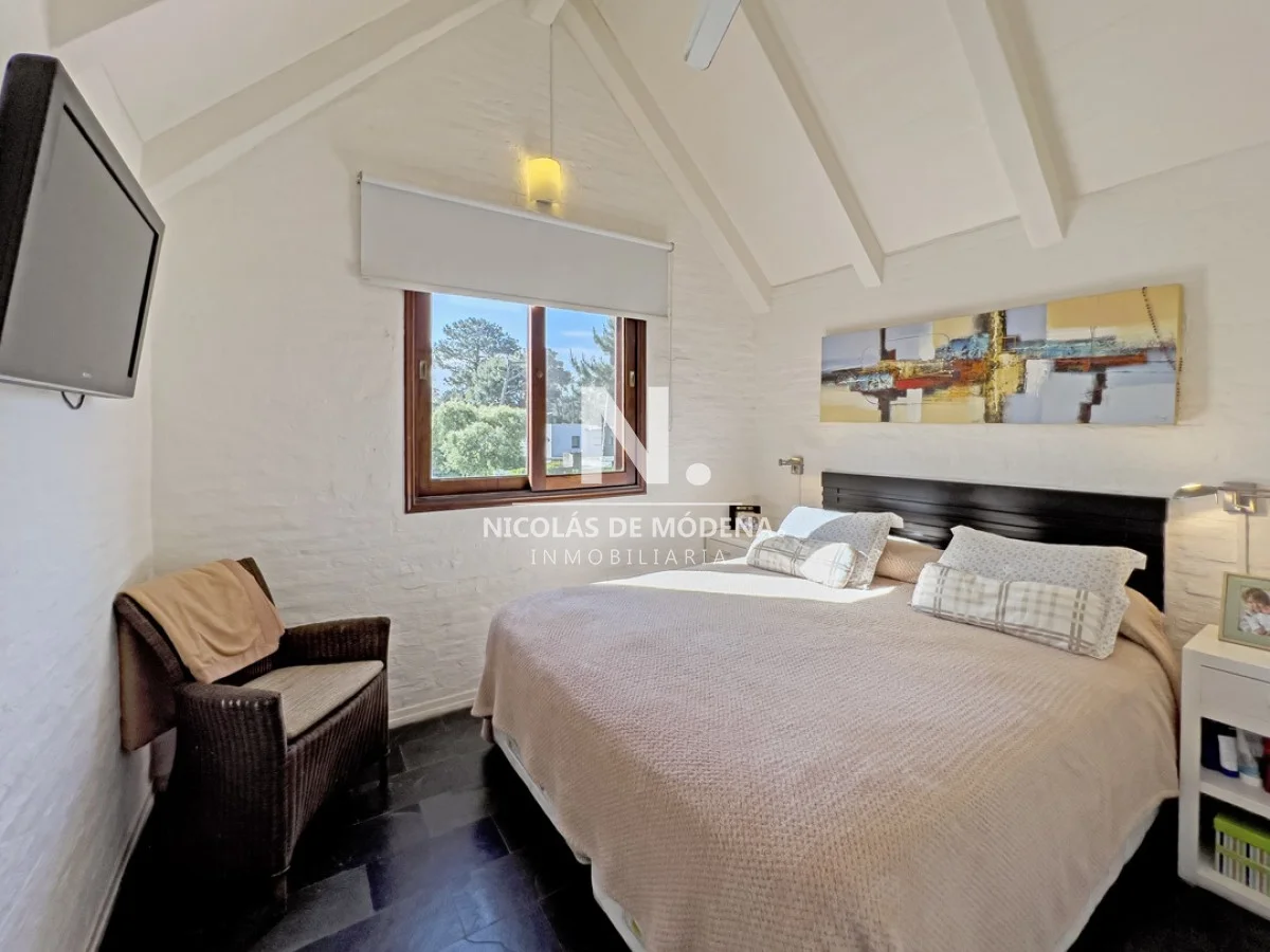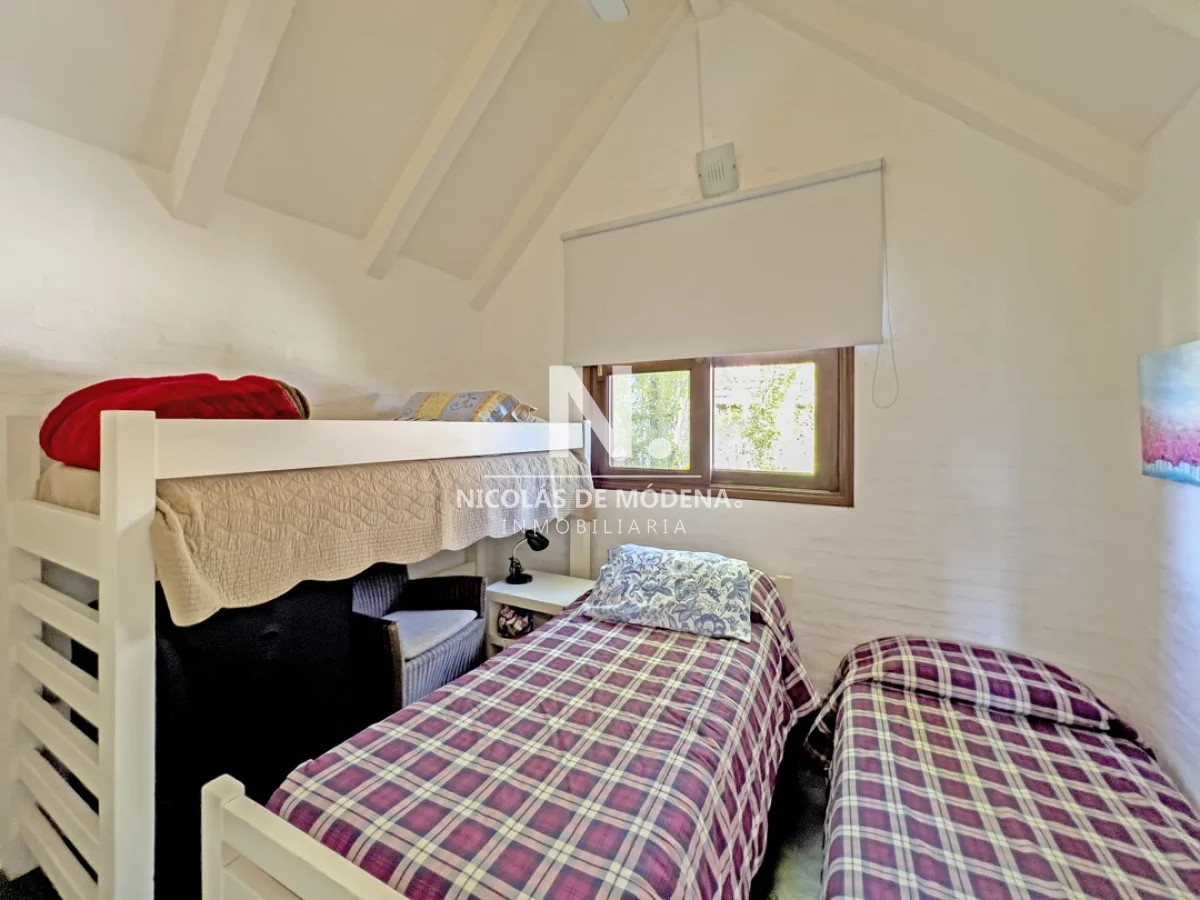 Casa en venta ubicada en Barrio Privado. Distribuida en dos plantas. Planta Baja: living-comedor con estufa a leña y acceso directo al parrillero; cocina y baño. Planta alta dos dormitorios y baño. Piscina abierta, solarium; canchas de tenis y pádel; gimnasio y vigilancia. A solo 200 metros del mar, y 5 minutos del centro de Punta del Este. Referencia Interna : Tera-25376