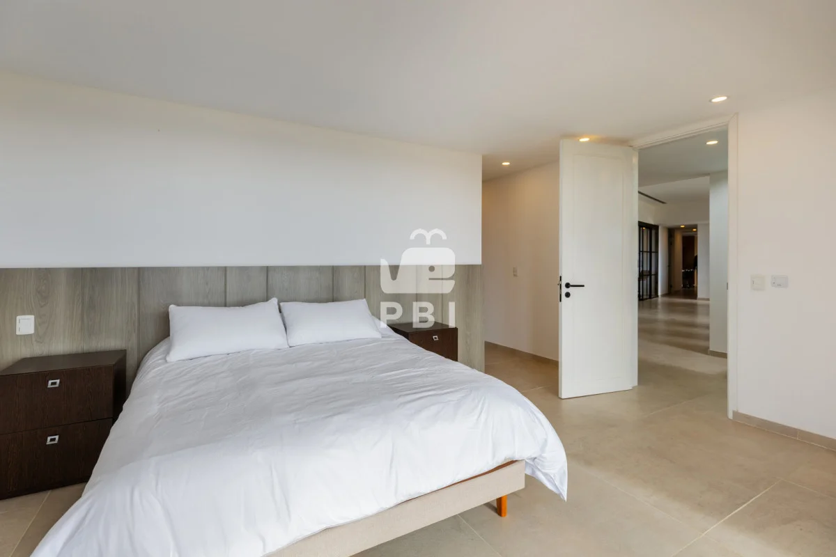 3 suites en la primera planta (una de ellas con vestidor) y una suite principal en la segunda planta (con vestidor y balcón con una increíble vista), 4 baños completos, toilette, living comedor con estufa de alto rendimiento, cocina semi integrada con isla, cava, 2 escritorios, lavadero, parrillero techado, piscina exterior climatizada y parrillero exterior en piedra.