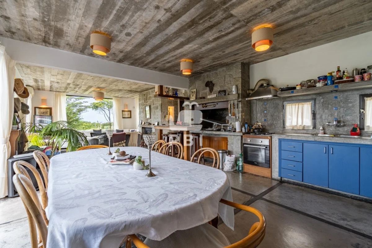 Comedor con capacidad para 8 personas, cocina integrada con parrillero interior, además un pequeño bar.