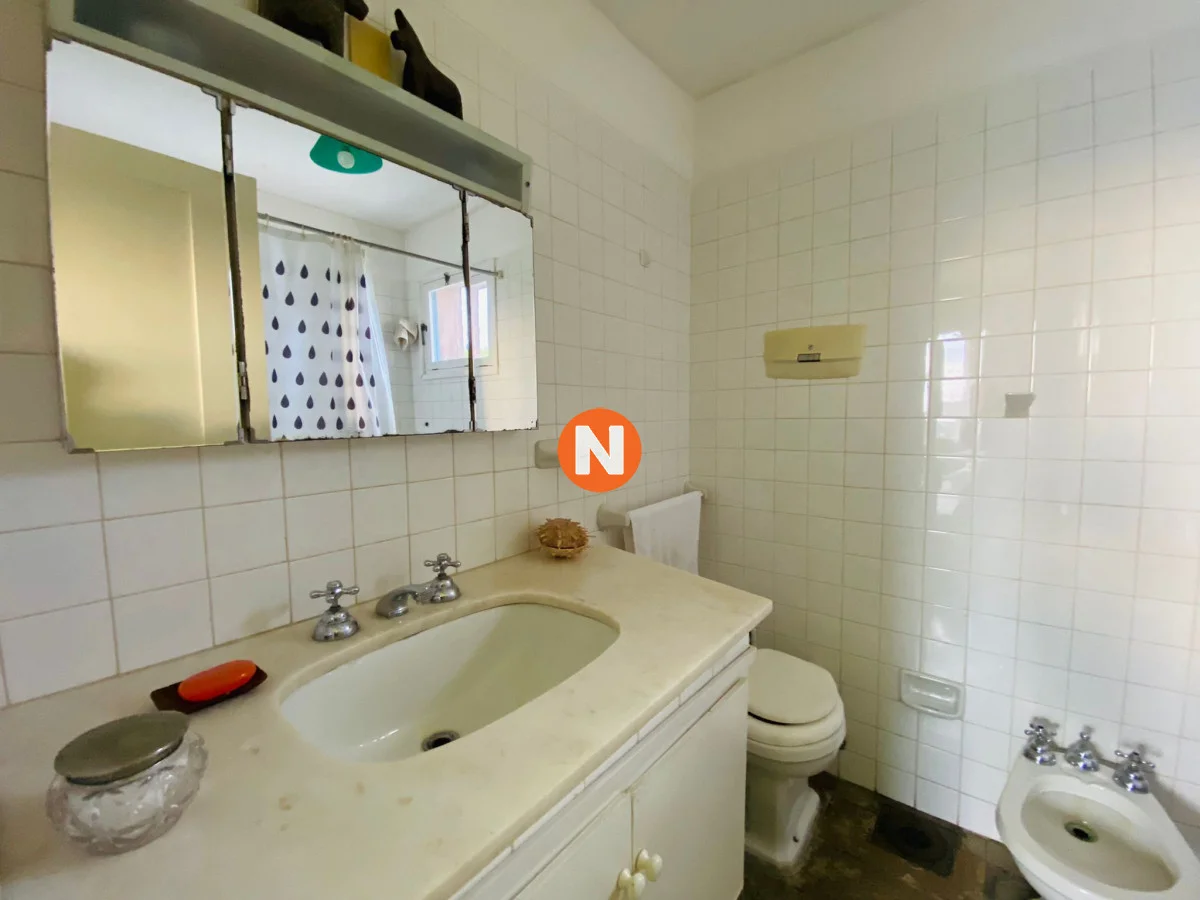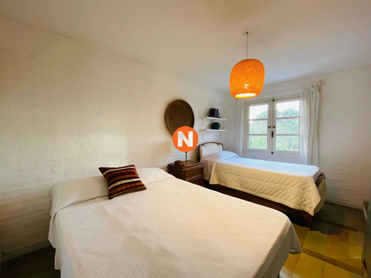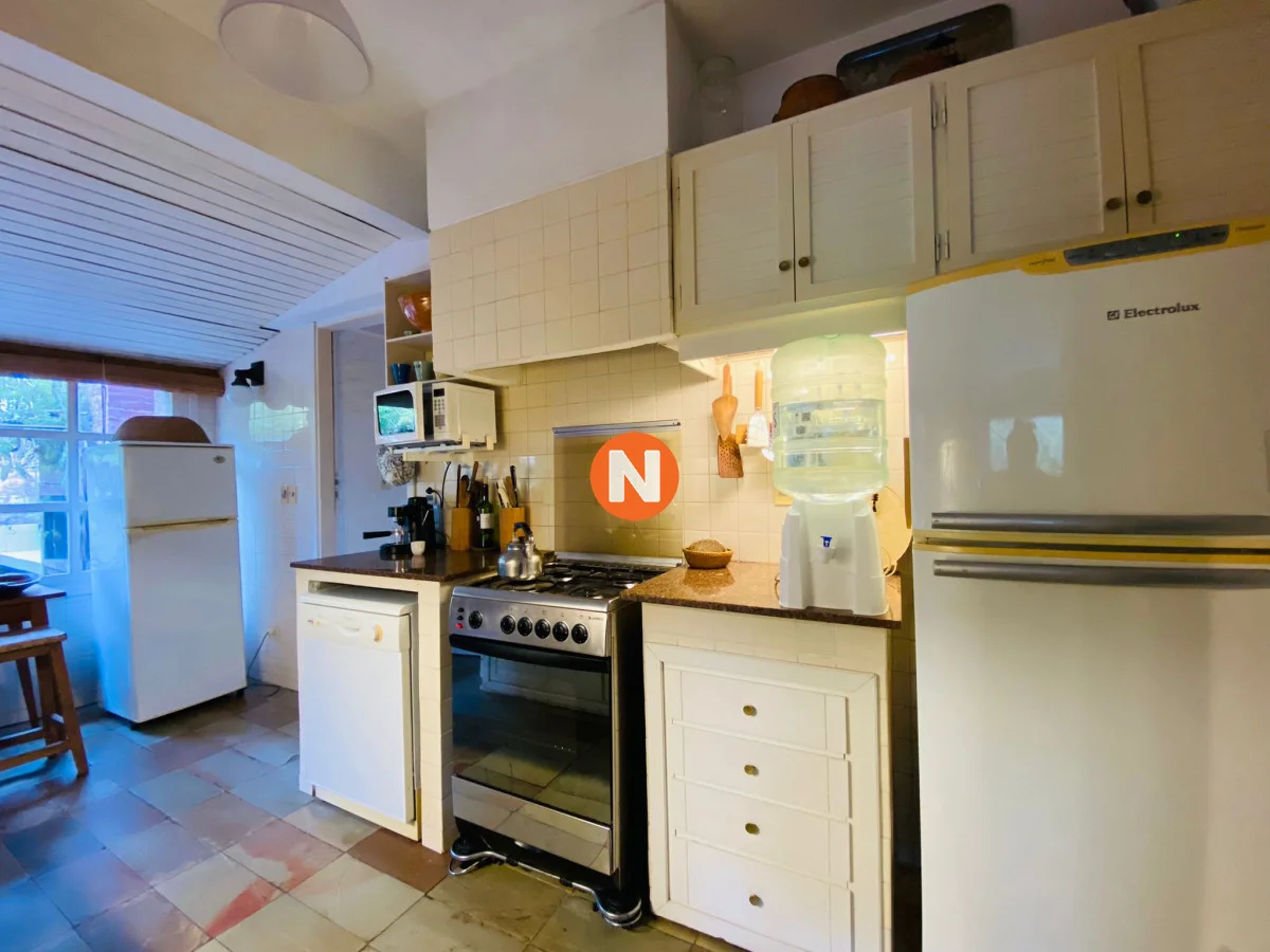 Excelente casa en La Barra con muy buena ubicación a 300m del mar. Rodeada de jardín cercado, con mucha privacidad. Amoblada con muy buen gusto. Planta baja: -Living comedor con aire acondicionado y estufa a leña, -Dormitorio principal en suite con estufa a leña y vestidor. -Toilette. -Dos galerías techadas, una sobre el jardín al frente y la otra sobre patio interior y parrillero. -Dependencia de servicio en suite con cama simple (sirve como 4to. dormitorio). -Cocina, lavadero y amplio tendedero oculto a la vista. -Cochera. Planta alta: -Dos dormitorios amplios en suite. -Terraza. Equipamiento: Cocina a gas,2 heladeras (1 con freezer), lavavajilla, lavarropas, vajilla completa para 12 personas, microondas, licuadora, cafetera eléctrica, tostadora, aspiradora, enceradora, plancha, tabla de planchar, ventiladores, equipo de música, lector de DVD, Tv por cable en cada habitación, conexión a internet por banda ancha y WIFI. -Alarma sectorizada y con respuesta por guardias de seguridad.