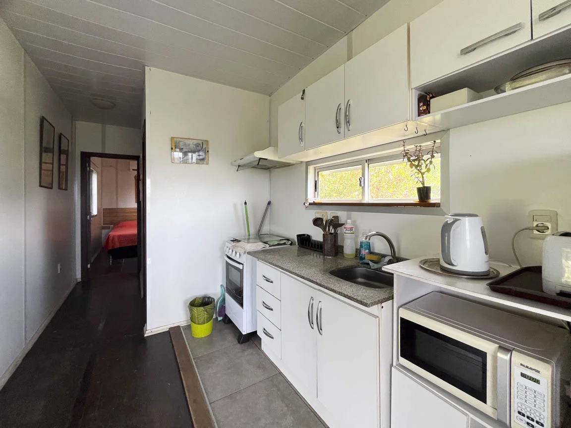 Se trata de dos viviendas de construcción liviana, distribuidas de manera idéntica. Cada una ofrece un cálido ambiente integrado de living, comedor y cocina, un dormitorio y un baño completo.