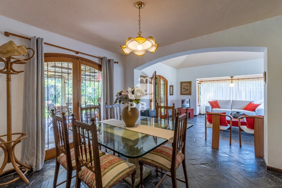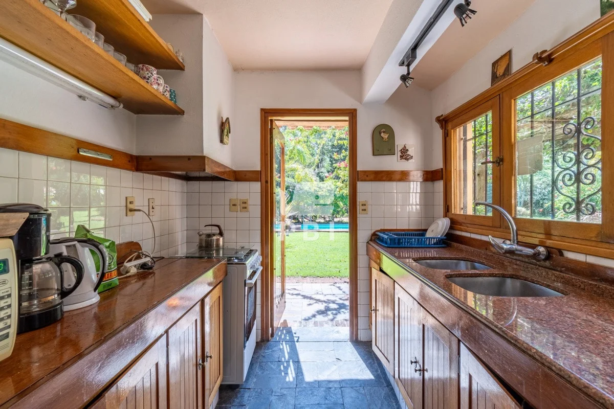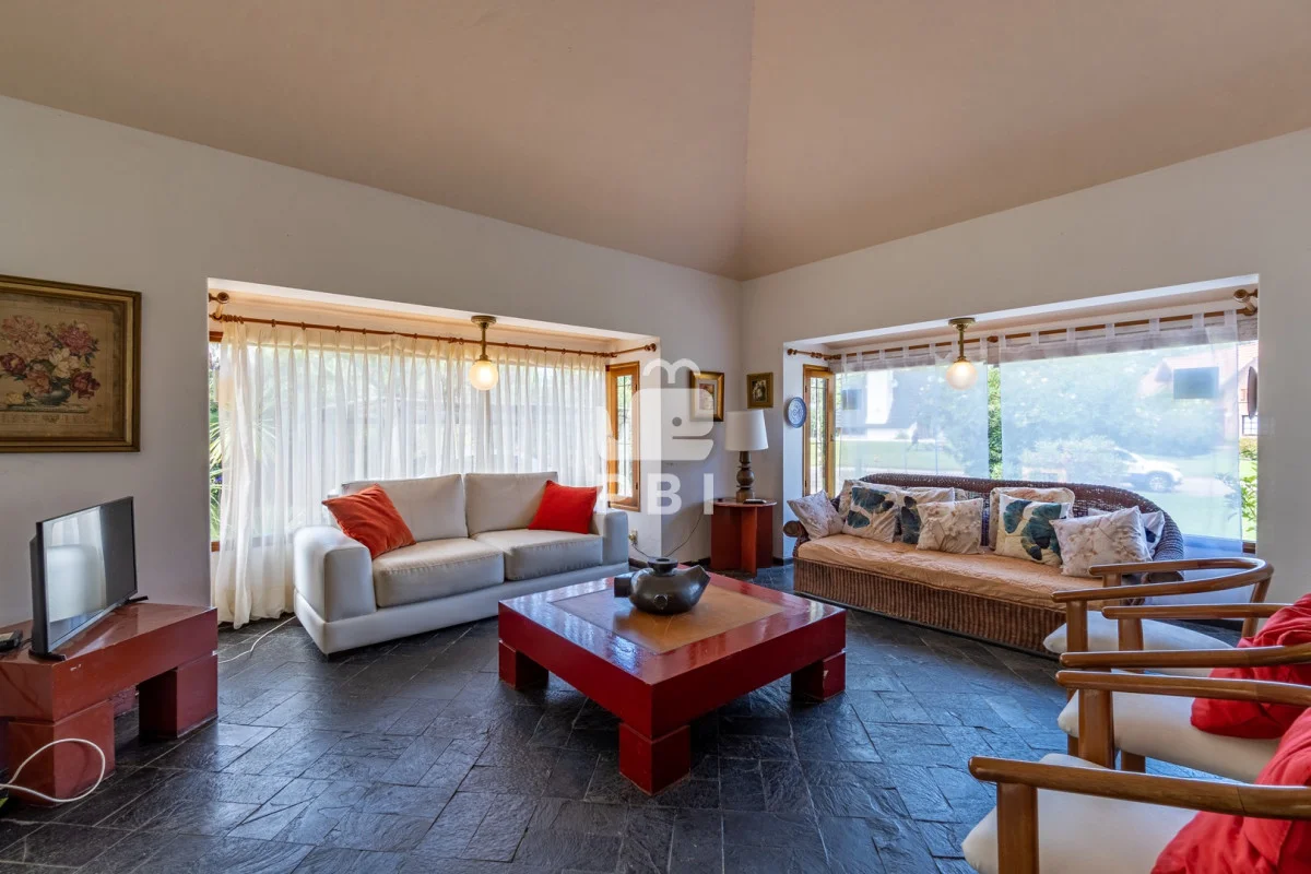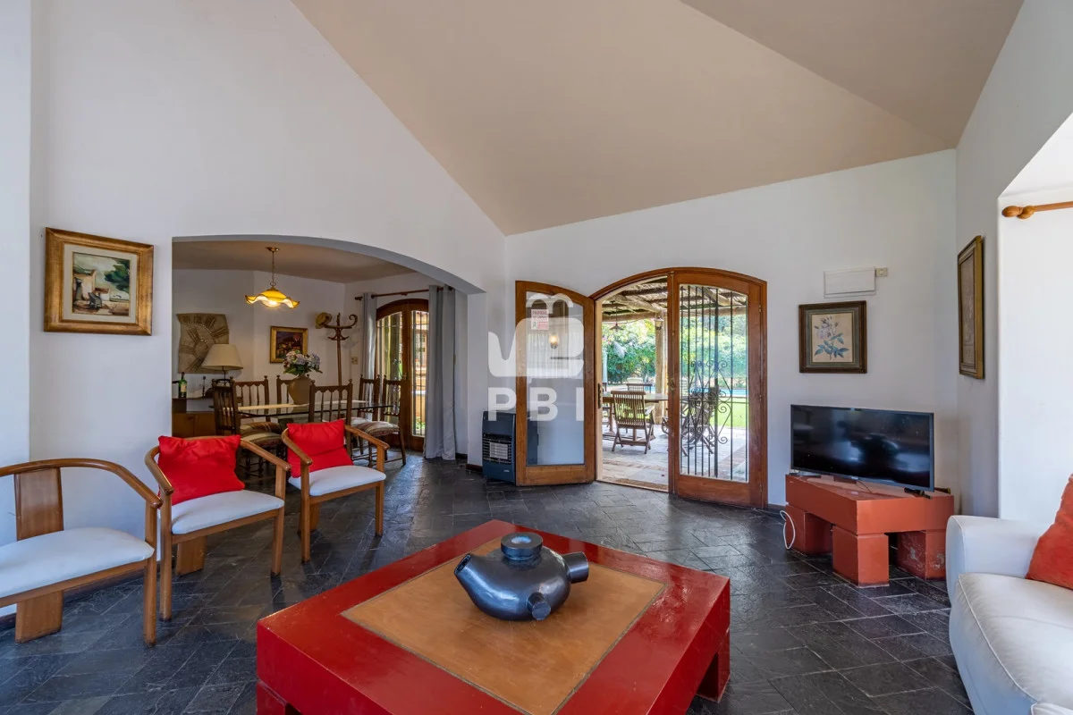 Posee 2 niveles, amplio living, comedor integrado que conecta a la terraza techada con salida al jardín totalmente parquizado.