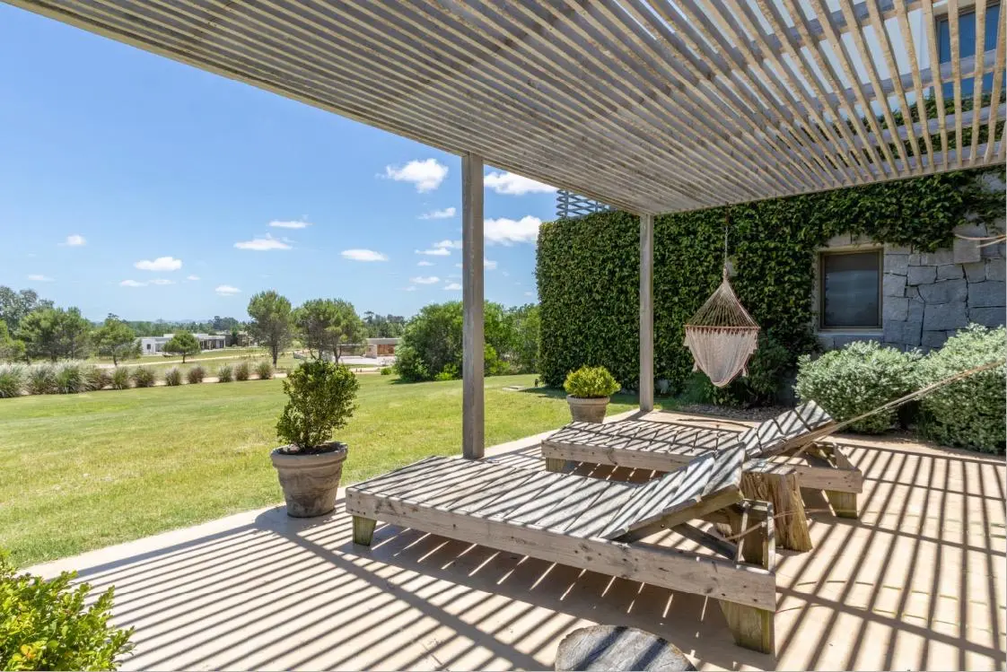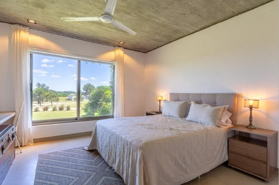 Tiene 3 dormitorios en suite,el principal arriba con gran vestidor,con ventanal que abre a una terraza y su propio living con TV.