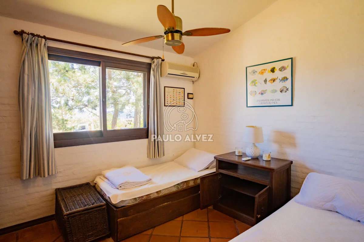 Con excelente ubicación en Playa Verde, frente al mar y con atardeceres únicos. Predio esquina de 2.500 m² con un hermoso jardín. Son 160 m² de construcción tradicional, doble pared, techo de losa y tejas. Su distribución es luminosa: living-comedor con estufa a leña y gran ventanal que permite apreciar el jardín y su entorno natural. Cocina semi-definida. Pasillo hacia el dormitorio principal en suite, seguido de dos dormitorios adicionales y un segundo baño completo. En el exterior se suma un cuarto dormitorio de servicio con baño completo, además de un depósito muy práctico. También cuenta con un parrillero cubierto ideal para disfrutar del aire libre. Un espacio que lo tiene todo: amplio predio, sólida construcción y una ubicación inmejorable. No dudes en coordinar tu próxima visita.