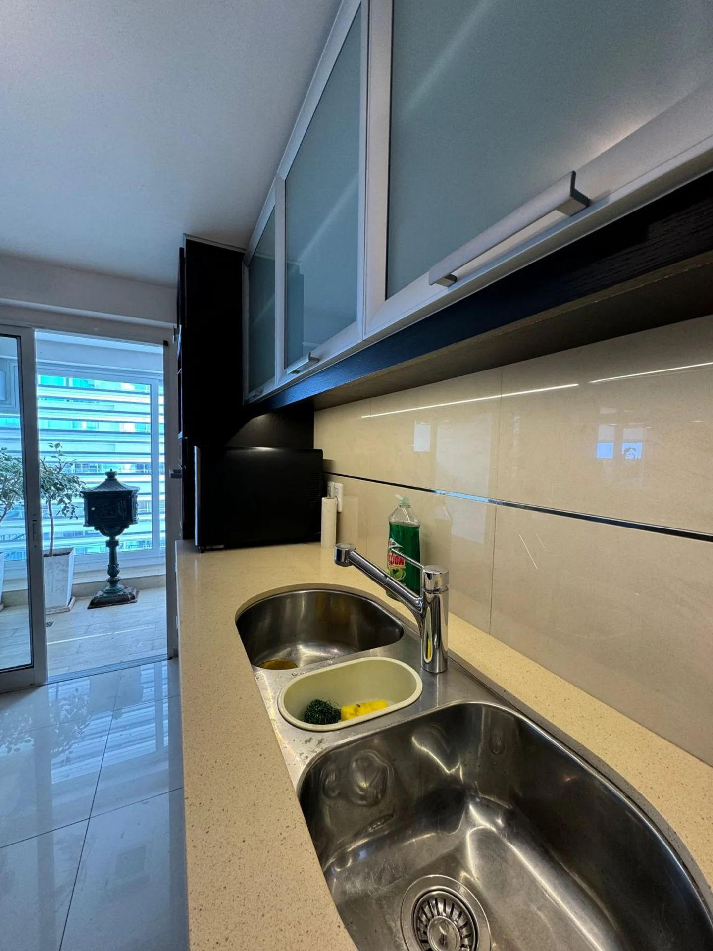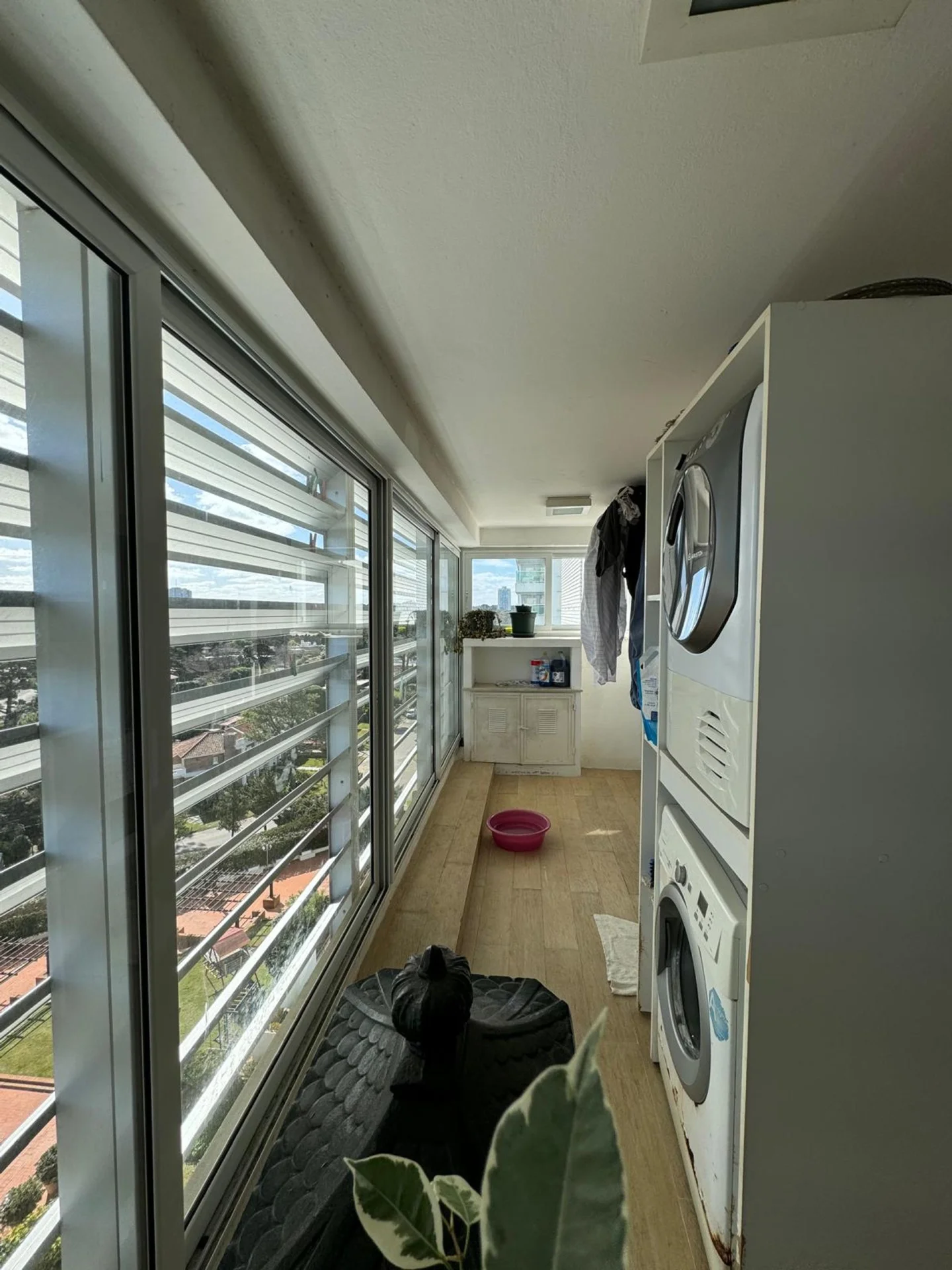 Dependencia de servicio con 1 cama y baño con ducha. Total 5 baños, este espacioso hogar tiene todo lo necesario para una estadía de lujo. Además, dispone de un área de lavadero y está en un edificio con servicio de playa y gimnasio.