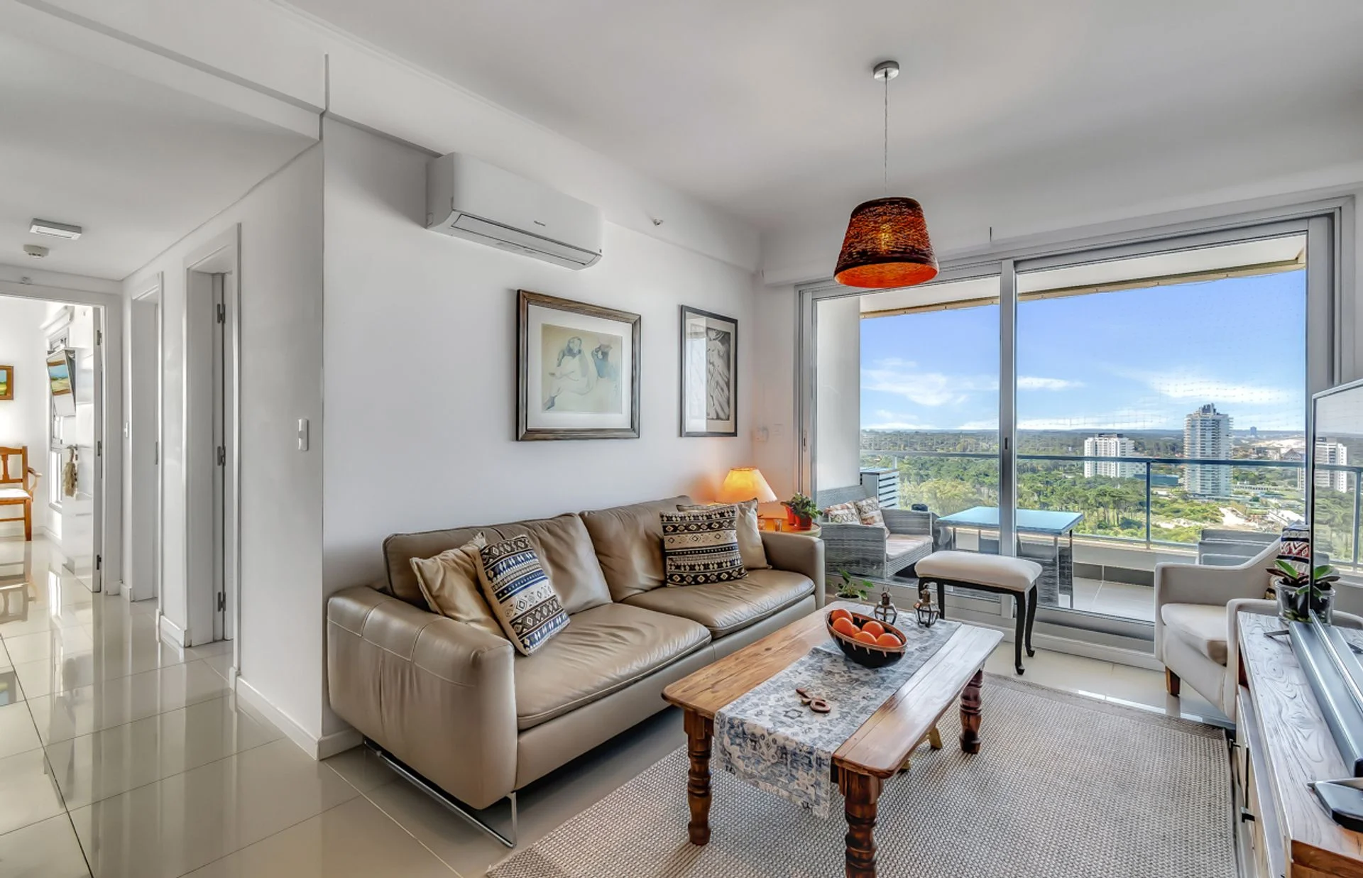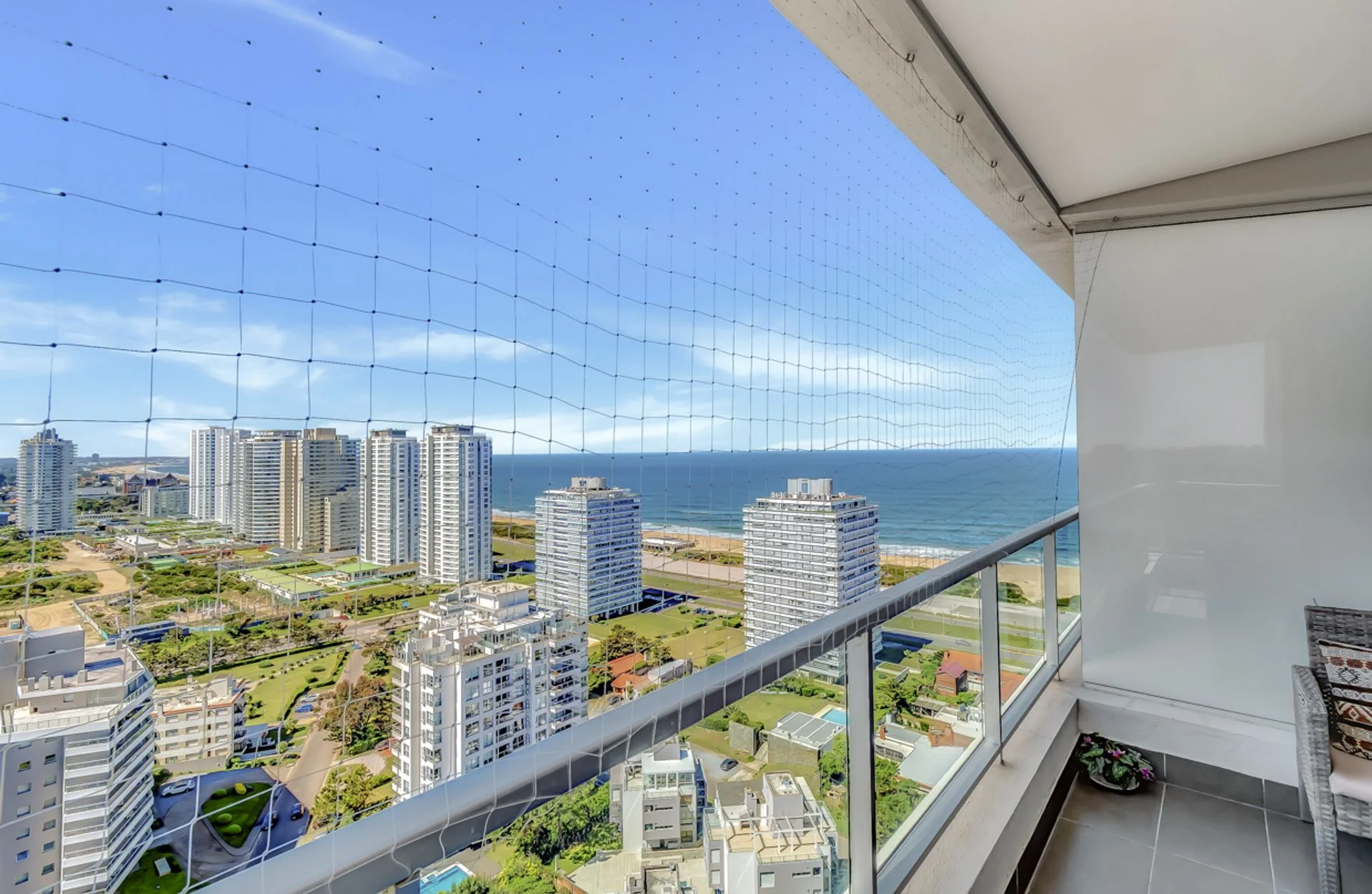 Exclusivo apartamento en alquiler de temporada en torre premium, Wind Tower, a pasos del mar de la Playa Brava, Parada 7. Posee living comedor muy cómodo con salida a balcón terraza con vista al mar. Cocina definida, dos dormitorios y dos baños, el principal en suite. Cuenta con aire acondicionado frio calor en todos los ambientes y losa radiante sectorizada. Amoblado y equipado full, con lavarropas y lavavajillas. Cuenta con garage.