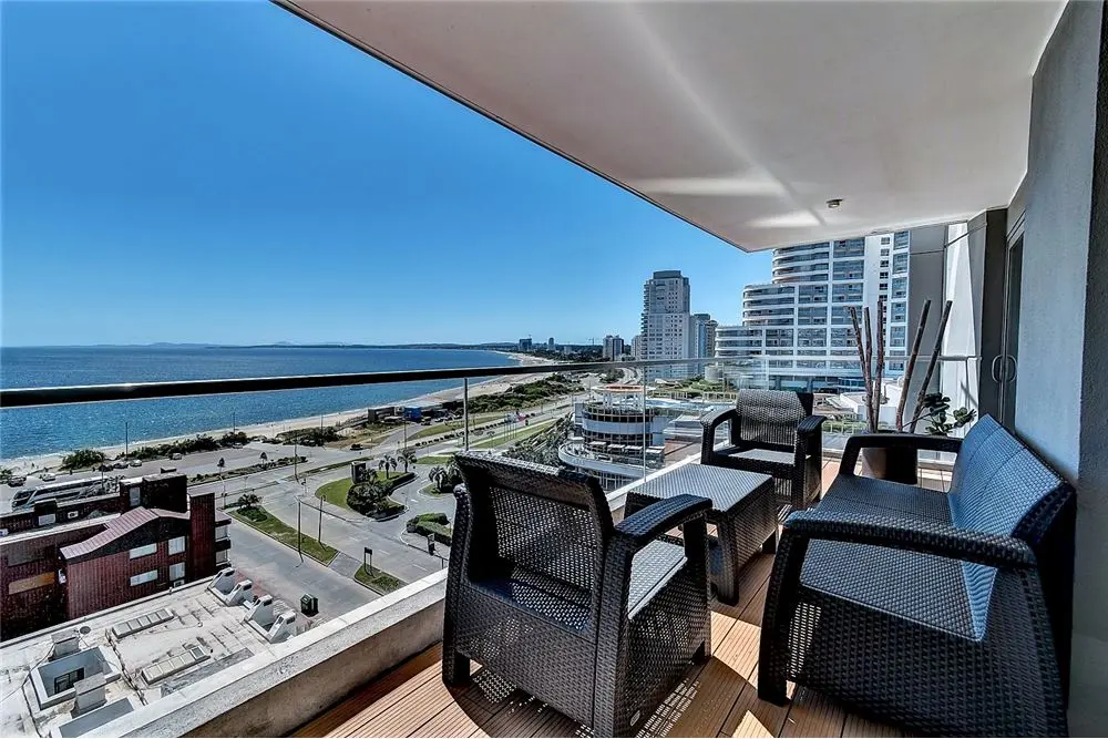 En Exclusividad: Apartamento en alquiler de temporada de verano en la moderna torre Alexander Collection Condominium. Ubicación estratégica, en la parada 3 de la Playa Mansa frente al Hotel Casino Enjoy (ex Conrad). Se trata de un piso alto. Posee amplio living comedor con salida a la terraza y una impactante vista a la Playa Mansa. Cocina definida muy amplia, totalmente equipada, que conecta con la terraza lavadero. Tiene 3 dormitorios en suite + dependencia de servicio completa + toilette. Se halla muy bien equipado y amueblado, muy luminoso. Calefaccion por aires acondicionados frio calor. Garaje en subsuelo y baulera. Excelente calidad de construcción, aberturas de pvc con doble vidrio, pisos en porcelanato, amplios placares. El edificio ofrece diversos amenities y servicios: piscina climatizada externa, pileta cubierta, gimnasio, sauna, salón amplio de uso múltiple/ barbacoas, sala de internet, servicio de mucamas diario, recepción 24 horas, servicio de playa. Ideal para disfrutar en familia y con amigos!