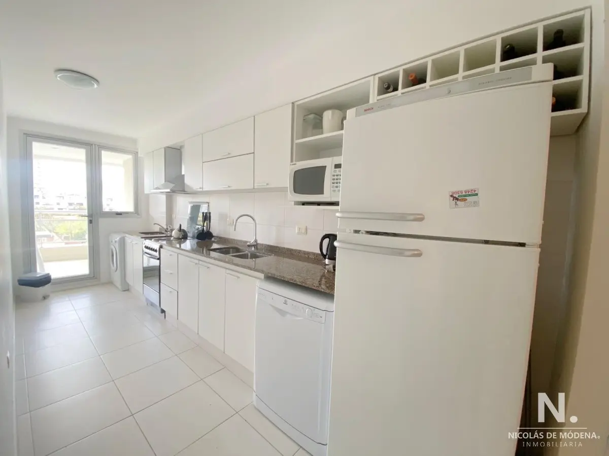 Excelente unidad en torre con servicios, cuenta con 2 dormitorios, 2 baños, 1 en suite, cocina definida, dependencia de servicio con baño y garaje en subsuelo. Referencia Interna : Tera-13531