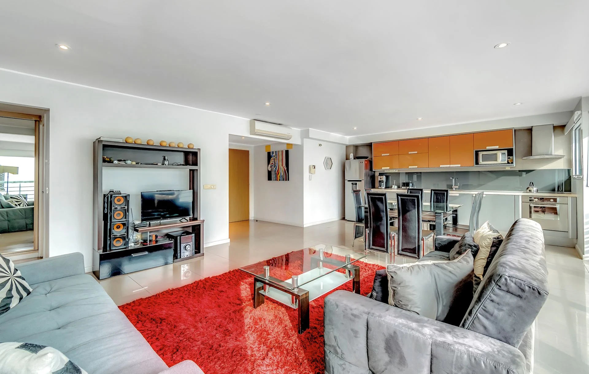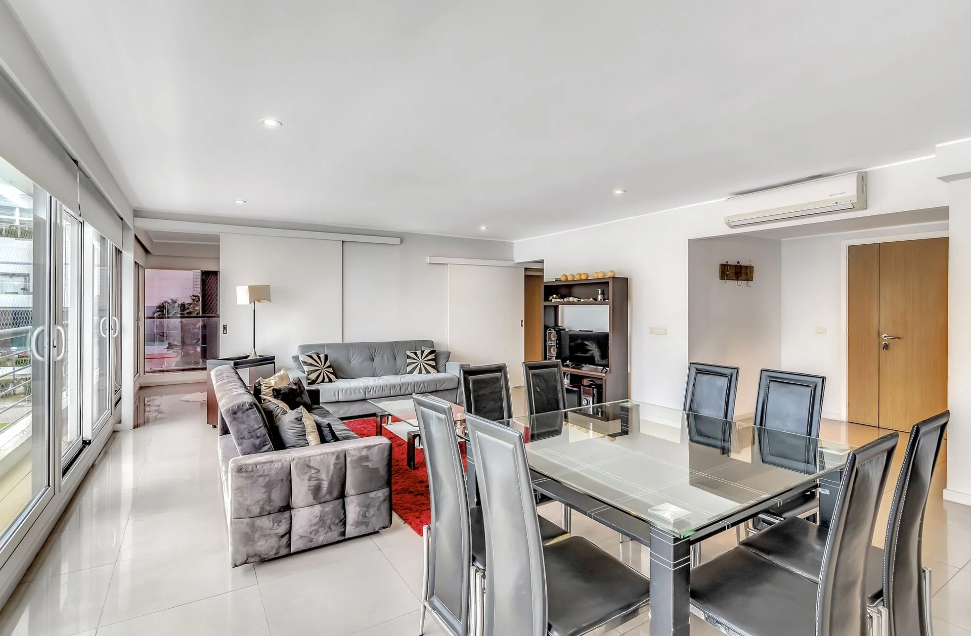 Area de descanso con aire acondicionado y vista a la Playa Mansa. Tiene dos baños completos, principal con doble bacha e hidromasaje.