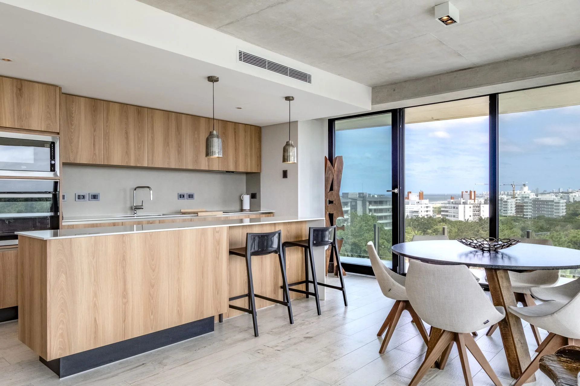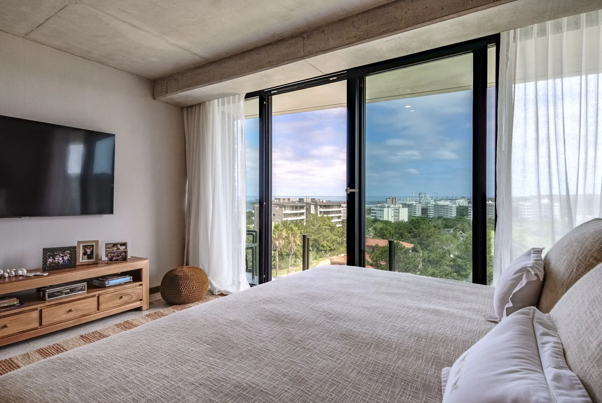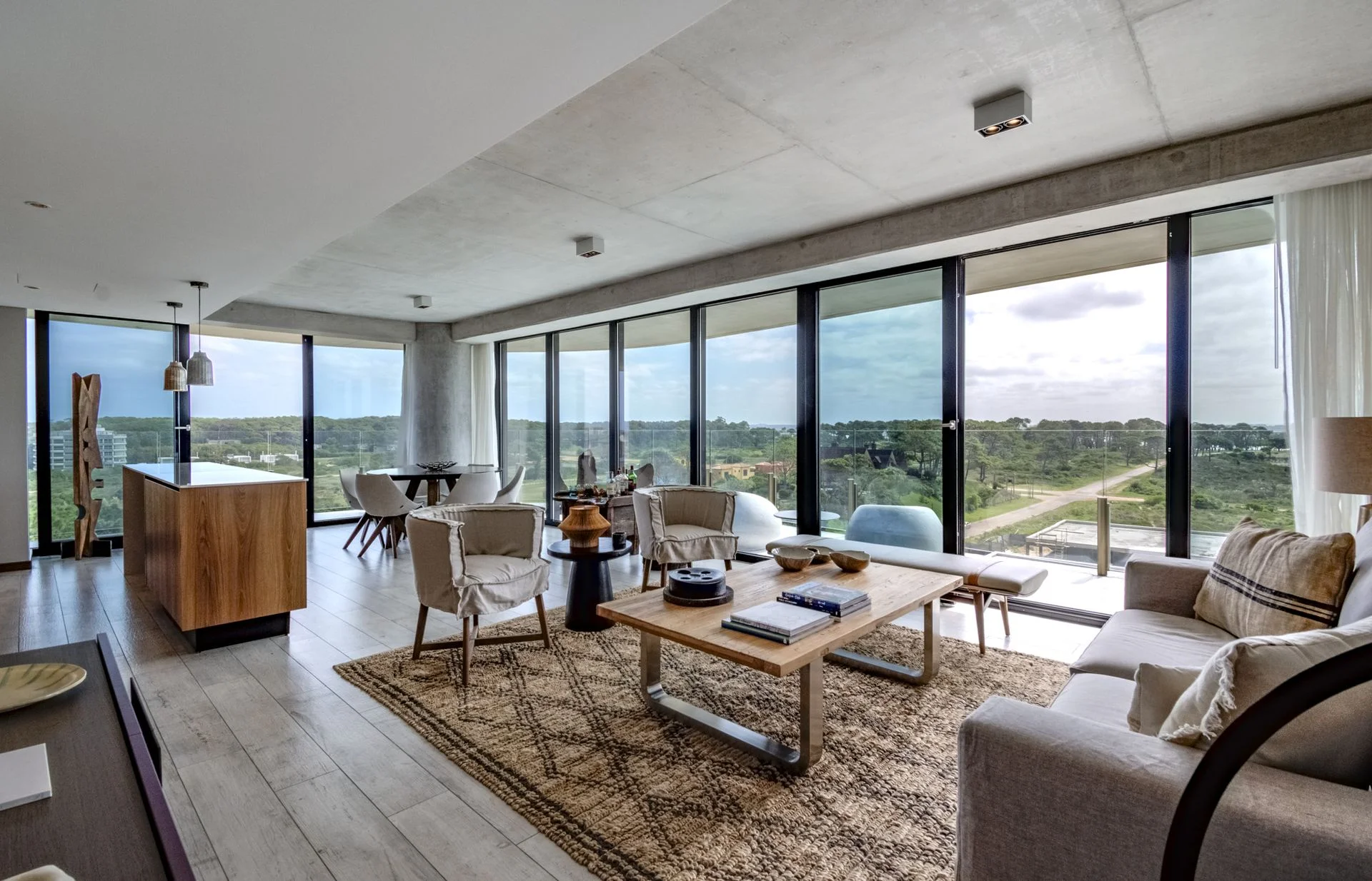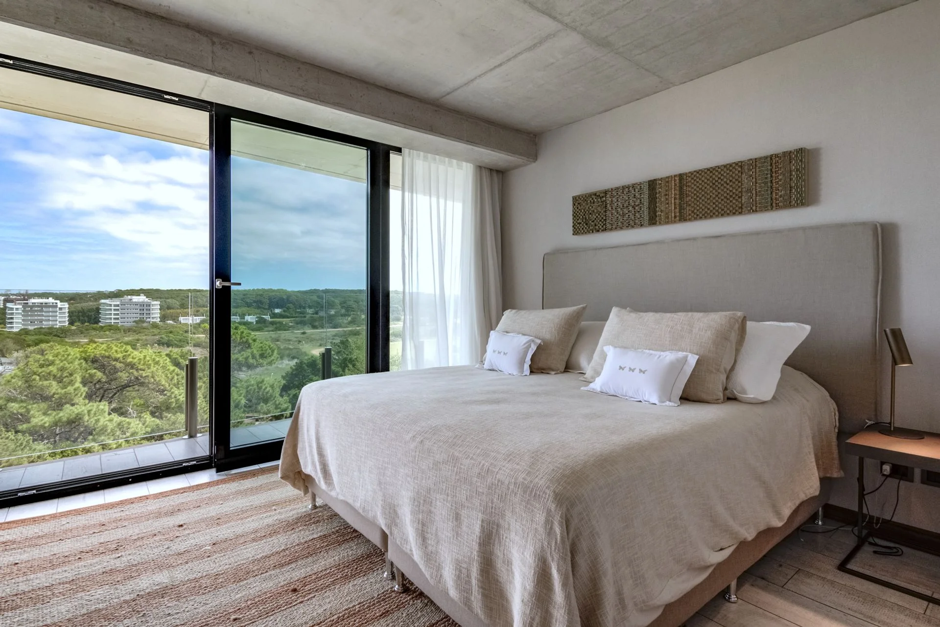 Amplia planta de 142,79 m2 totales, con una generosa terraza con una vista espectacular al mar de la Playa Brava, el bosque y el arroyo de La Barra. Tipología 1 dormitorio en suite + DEN (el DEN es un medio dormitorio) + otro baño completo + garage. Cuenta con estar, cocina americana y comedor integrados, con salida a la terraza, al igual que la suite. Posee equipamiento de alta calidad, fina decoración y amoblamiento premium.