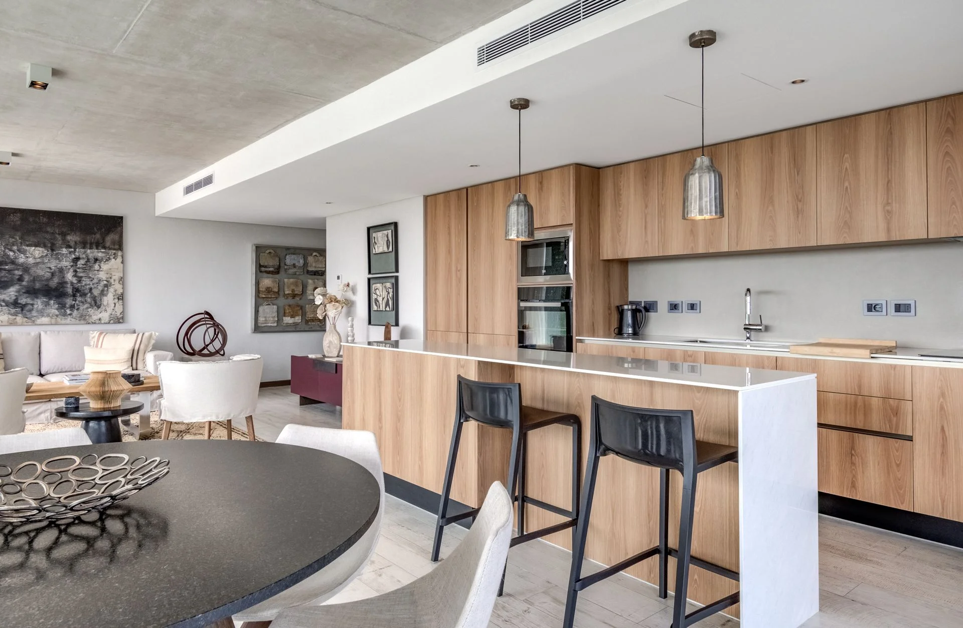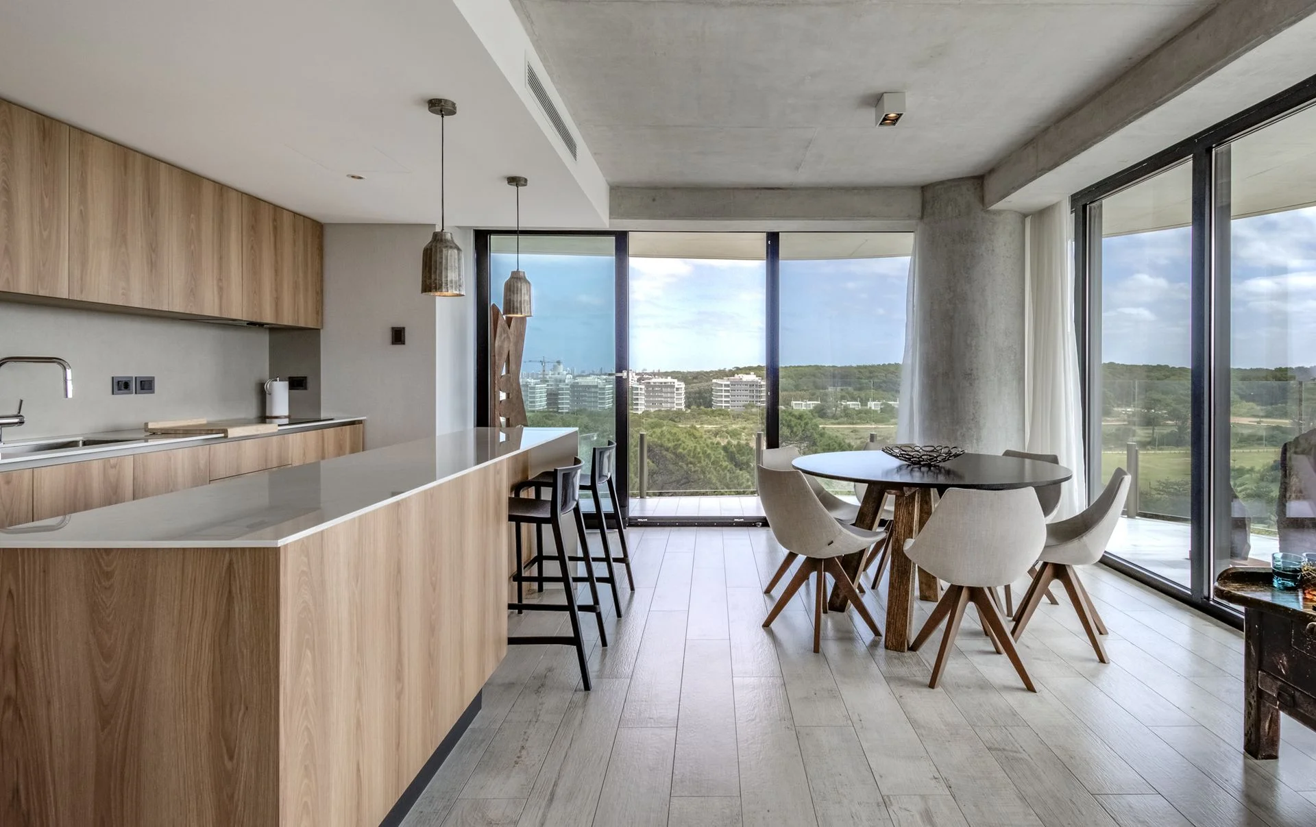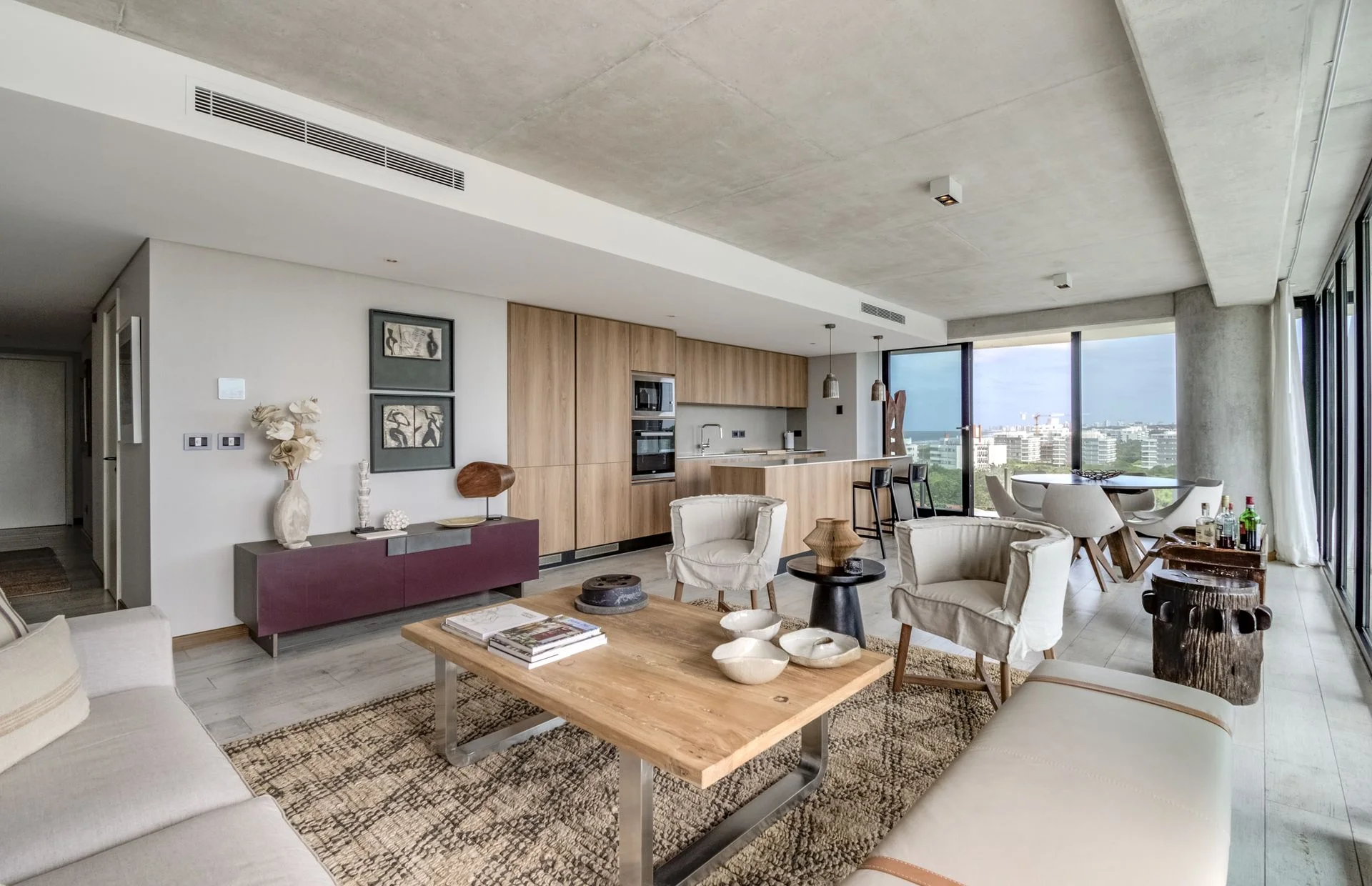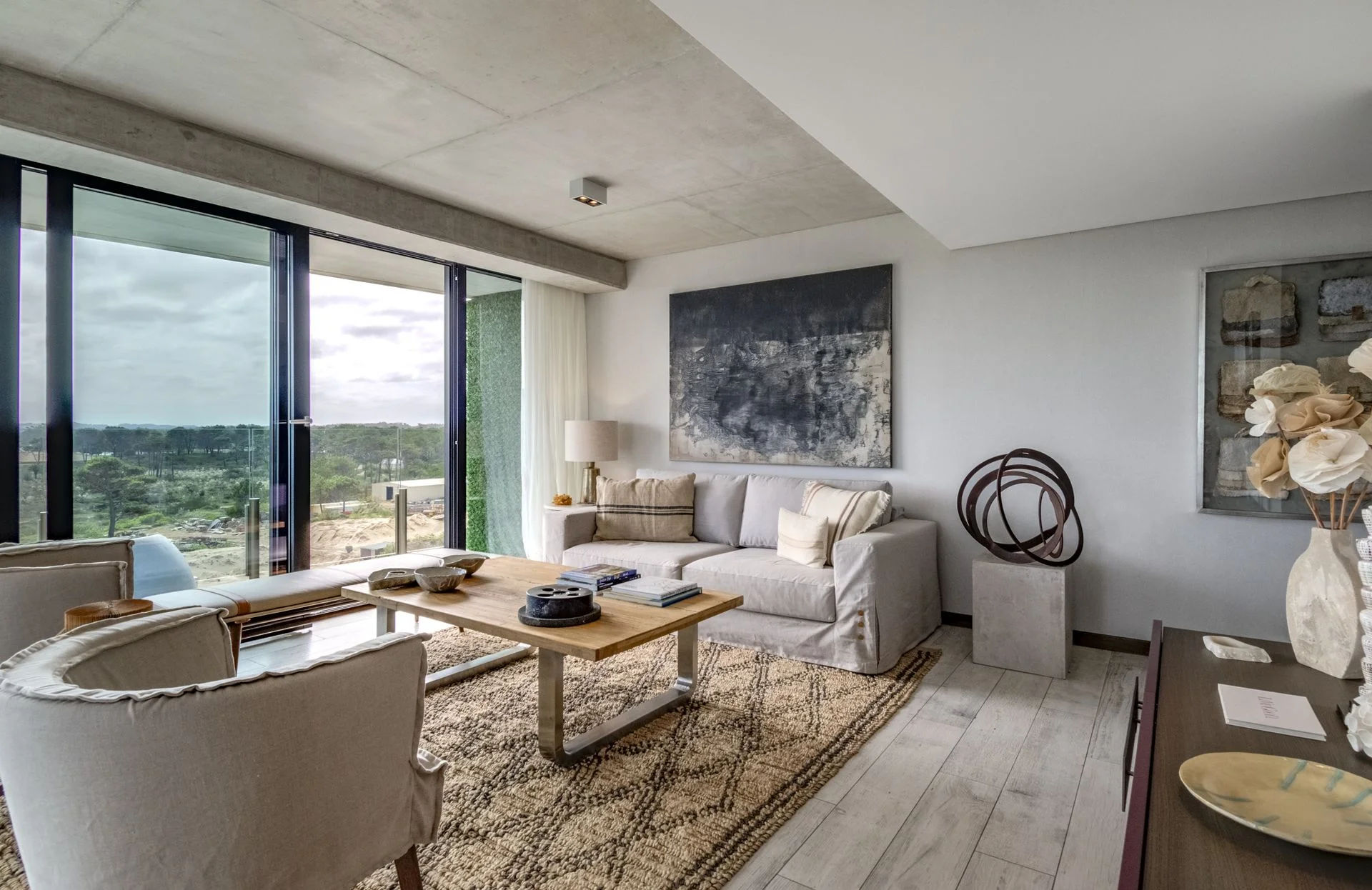 Amplia planta de 142,79 m2 totales, con una generosa terraza con una vista espectacular al mar de la Playa Brava, el bosque y el arroyo de La Barra. Tipología 1 dormitorio en suite + DEN (el DEN es un medio dormitorio) + otro baño completo + garage. Cuenta con estar, cocina americana y comedor integrados, con salida a la terraza, al igual que la suite. Posee equipamiento de alta calidad, fina decoración y amoblamiento premium.