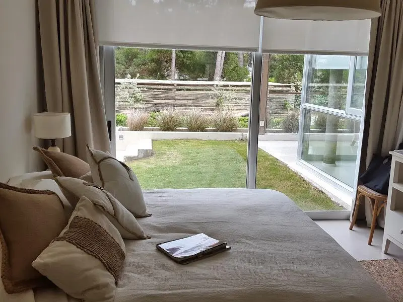 Excellent apartment with 2 en-suite bedrooms plus a maid’s room, located next to Laguna Blanca, right across from Manantiales beach. Bright and spacious living–dining room that opens onto a large terrace with a barbecue area, which extends into a private garden. Guest toilette. Fully equipped kitchen. Garage.