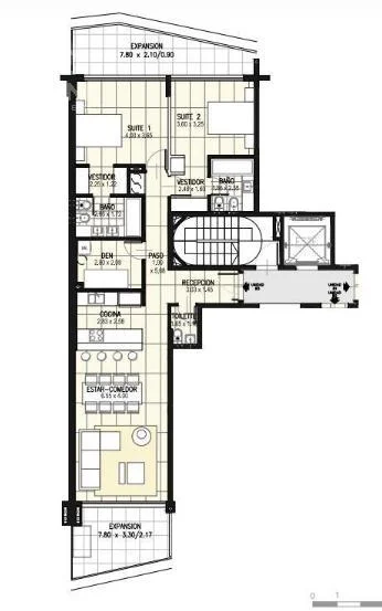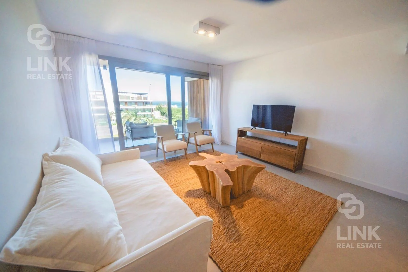 Moderno apartamento central con 2 dormitorios en suite, más un den y toilette de recepción. La cocina está integrada al espacio principal. Cuenta con dos terrazas, una con acceso desde los dormitorios y otra desde el living-comedor, equipada con parrillero.