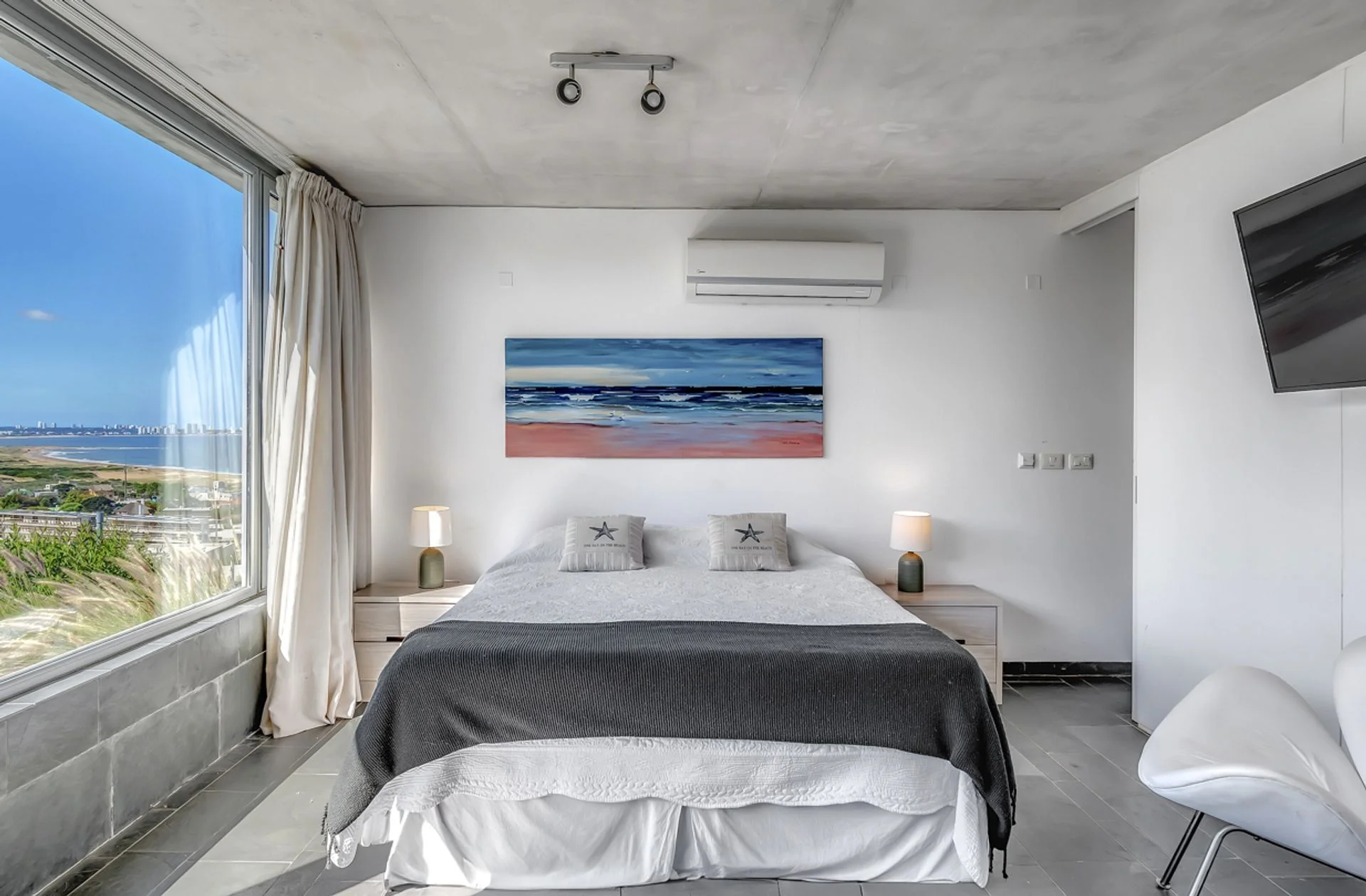 Cuenta con amplios ventanales que ofrecen una vista abierta a la bahía de Punta del Este, aportando luz natural y una conexión constante con el entorno. Además, dispone de una terraza con fogón que puede usarse como parrillero, ideal para disfrutar al aire libre.