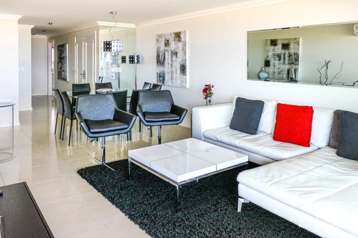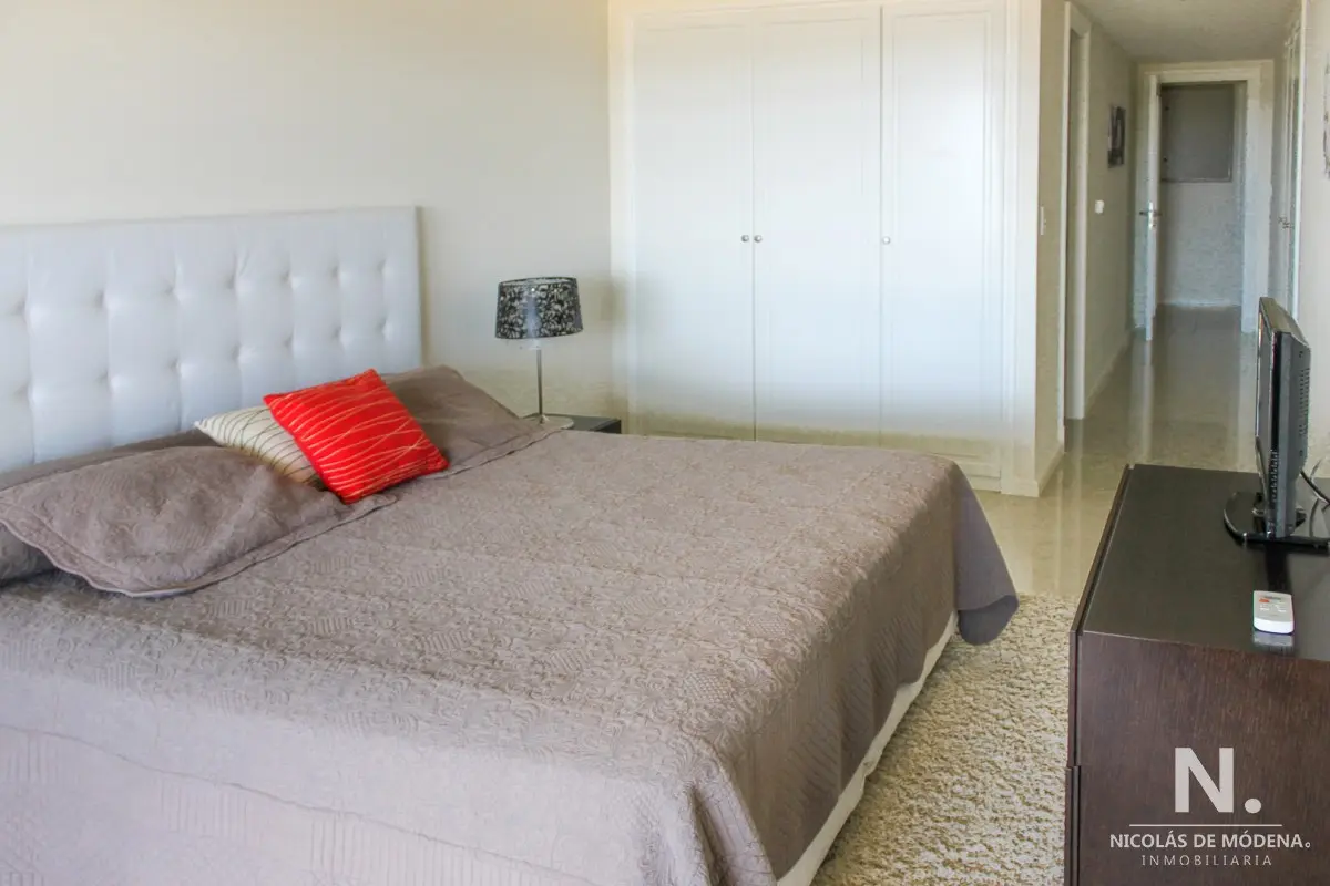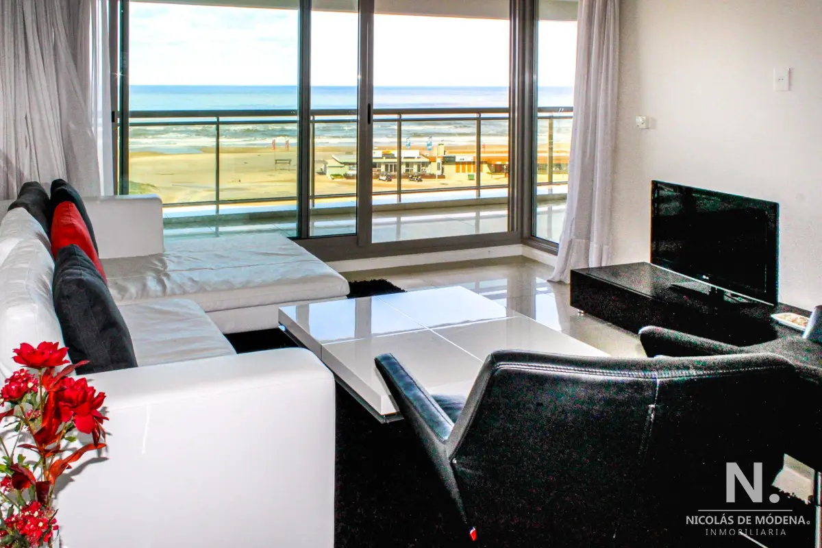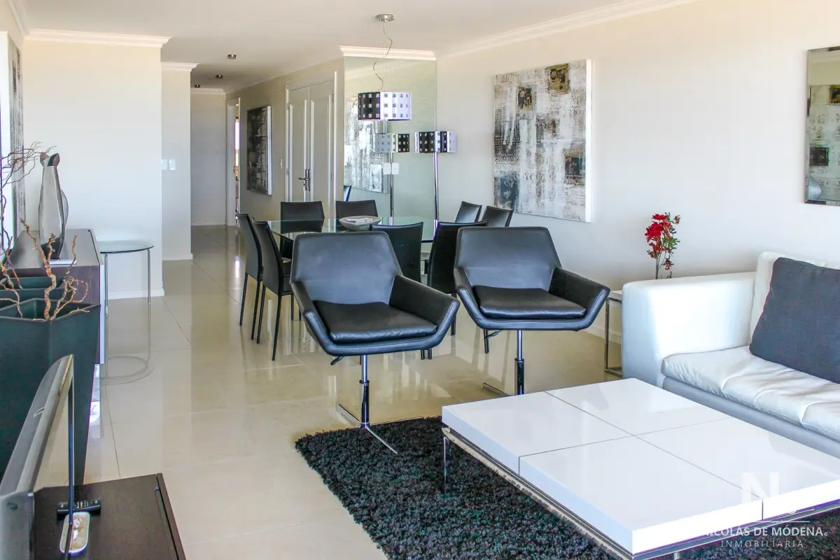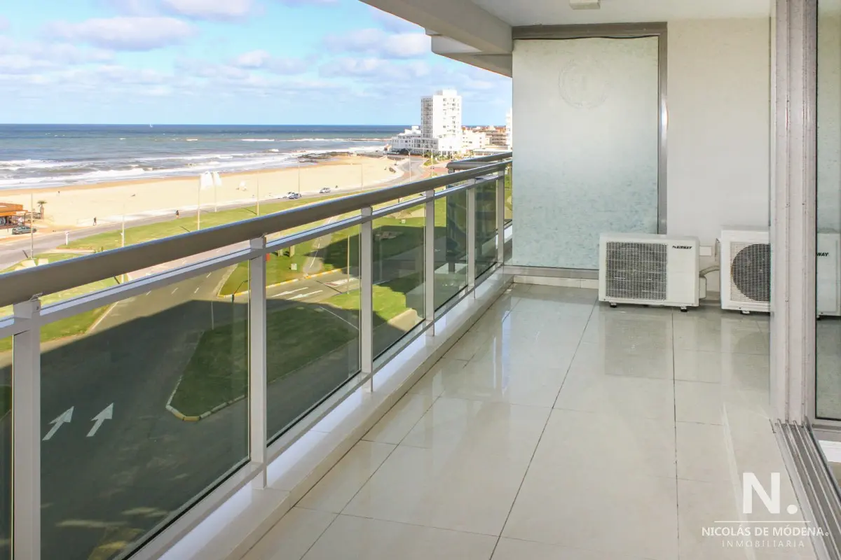 DEPARTAMENTO EN TORRE IMPERIALE, 3 SUITES, PUNTA DEL ESTE, PLAYA BRAVA, VENTA Primera línea frente al mar, amplio y luminoso living comedor con salida a importante terraza, toilette, suite principal con vista al mar, 2 dormitorios en suite con vista a la playa mansa, cocina definida con comedor diario, terraza lavadero, garaje, baulera, totalmente equipado! El edificio premium con excelentes servicios a pasos del mar y de la Península. Consulte con nuestros Agentes. Referencia Interna : Tera-6178