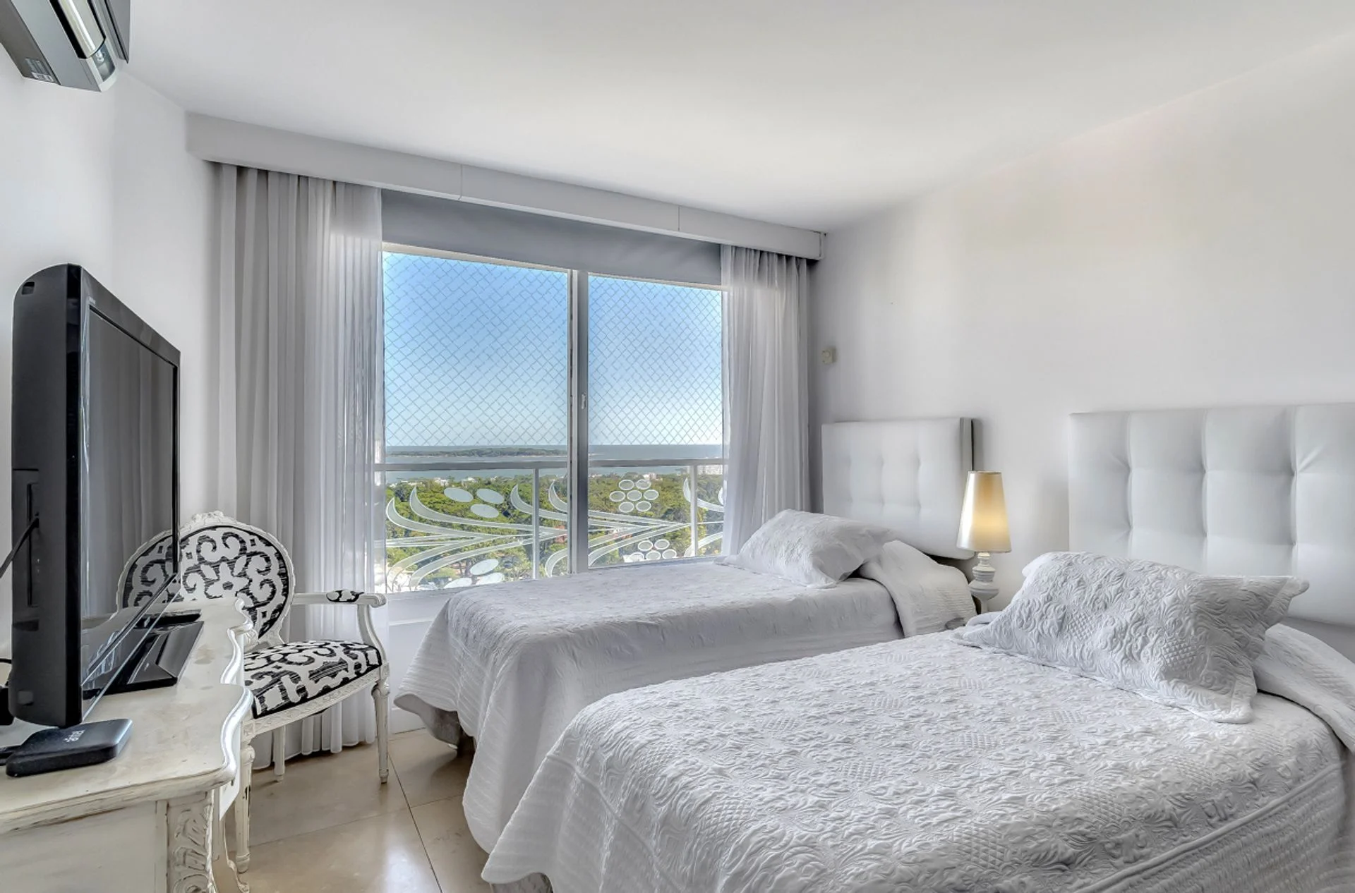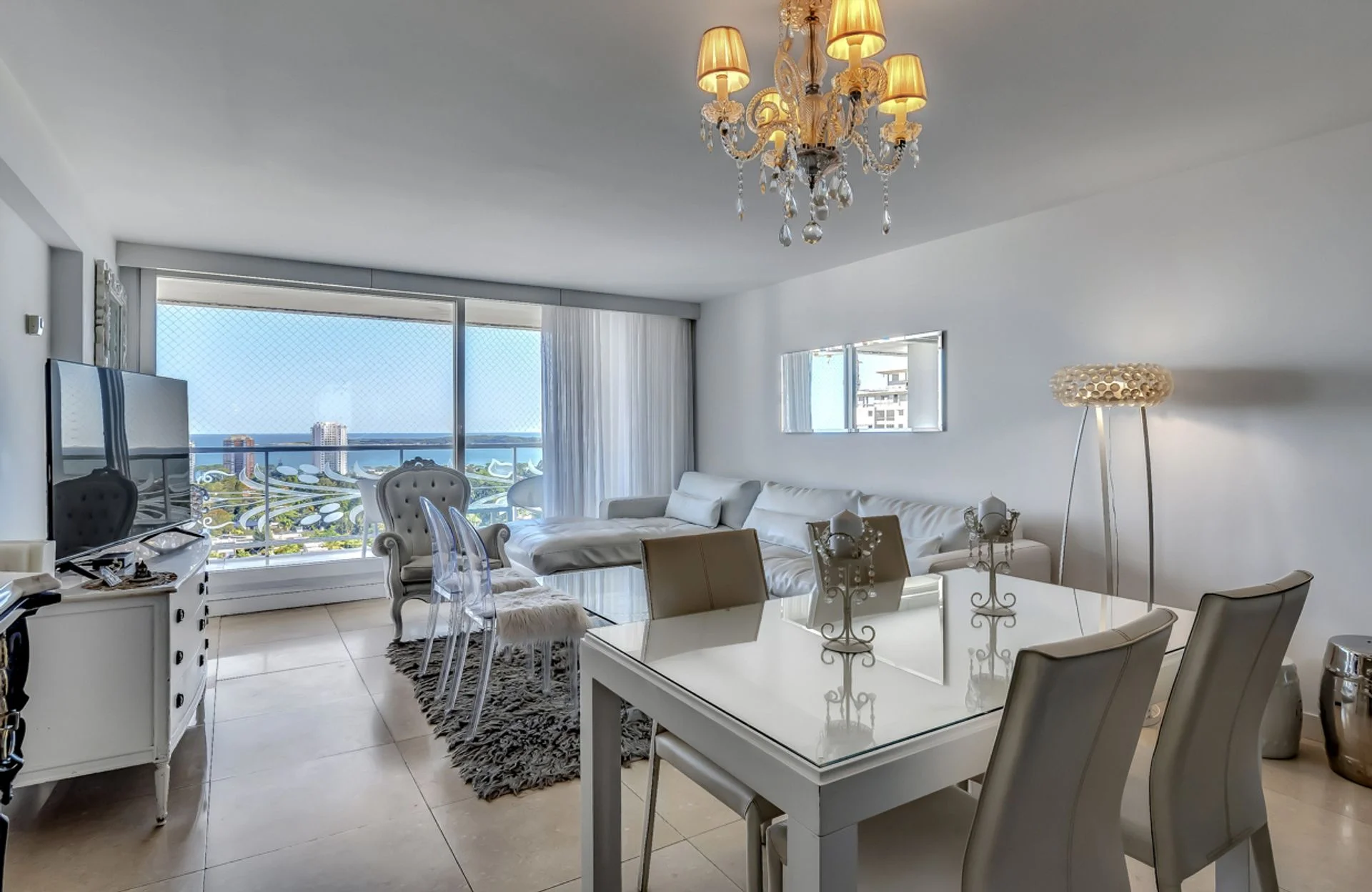 Exclusivo departamento en piso alto en Torre YOO Punta del Este, con vista espectacular al mar y la ciudad. Categoría Luxury, con revestimientos en mármol de palieres, pisos y baños. Cuenta con calefacción por aire acondicionado frío-calor y losa radiante. Posee amplio living con salida a la terraza, 2 dormitorios y 2 baños completos (principal en suite). Cocina semi integrada completamente equipada. Finamente amueblado. Garaje en subsuelo. Edificio con servicios únicos de un resort 5 estrellas: recepción 24 hs, servicio de mucama, servicio de playa en verano, piscina climatizada cubierta, jacuzzi, saunas seco y húmedo, ducha escocesa, club kids, cyber, meeting room, microcine, gym, piscina exterior, barbacoas, snack bar en verano y restaurant. Ideal como inversión para obtener renta durante todo el año y disfrutar de las mejores vacaciones en completo relax y comfort ! Rentabilidad única.