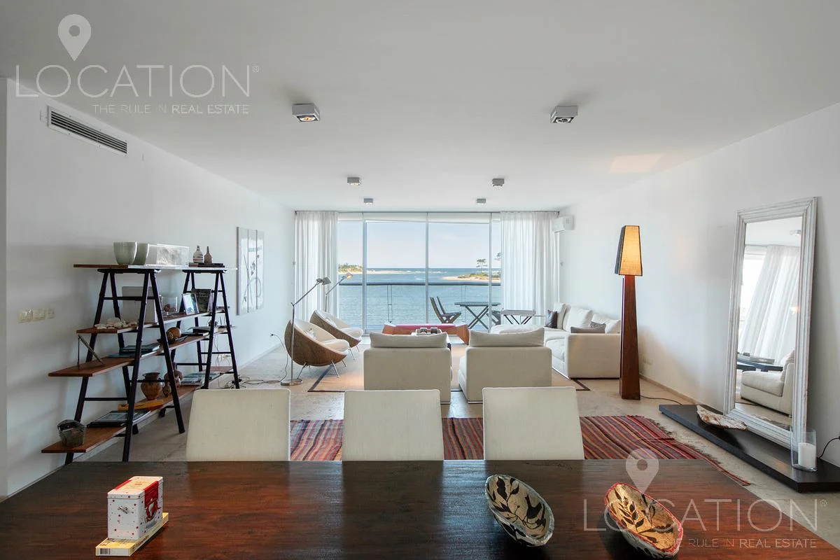 Exclusivo departamento de 4 dormitorios más dependencia, ubicado en la desembocadura de La Barra, planta amplia y luminosa con excelente distribución. Cocina integrada, lavadero, living comedor. Decoración sofisticada.