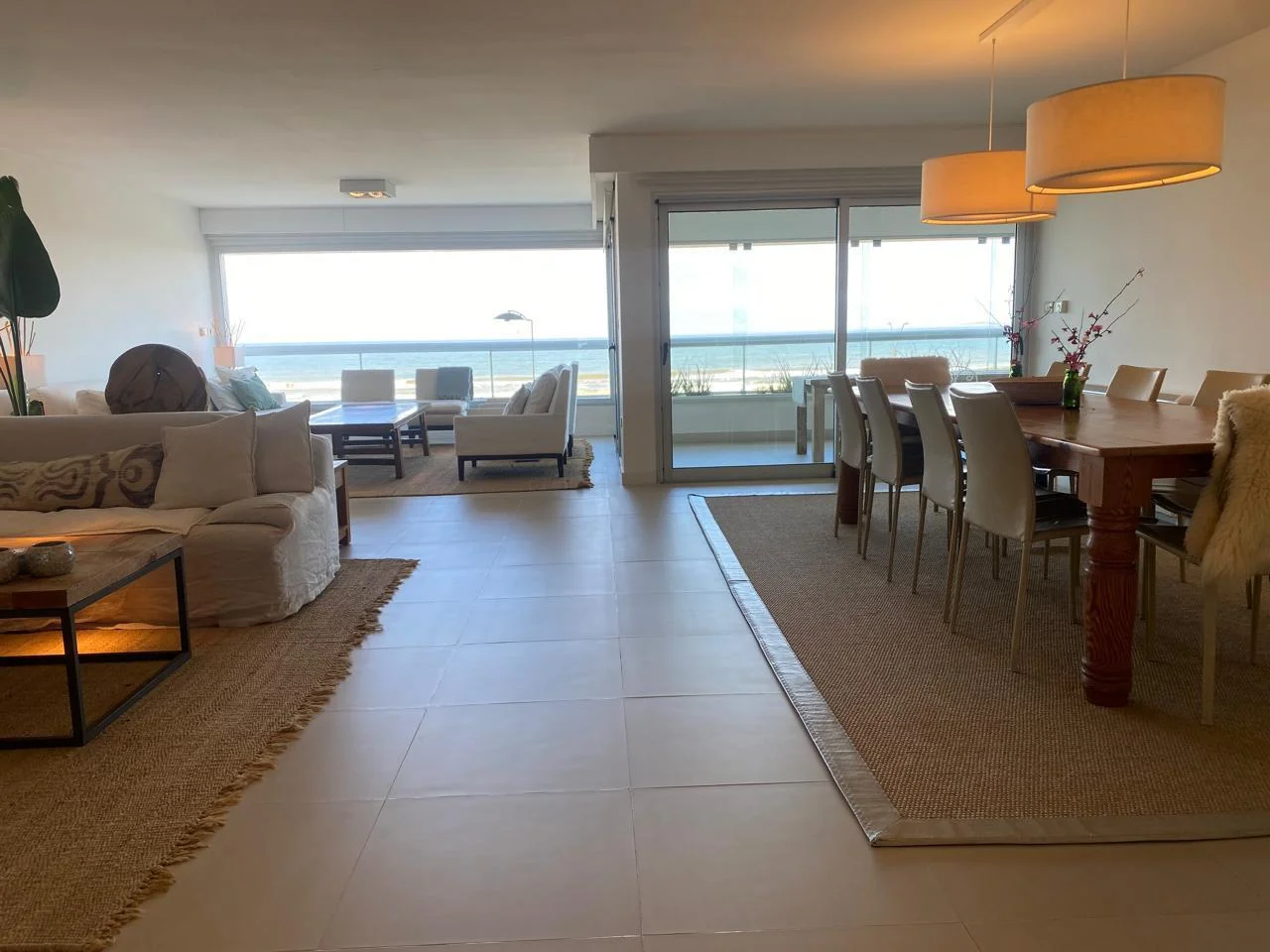 El departamento en duplex cuenta con 3 dormitorios en suite y una dependencia de servicio, living-comedor, cocina con desayunador, lavadero y , terraza al mar, en planta de acceso.