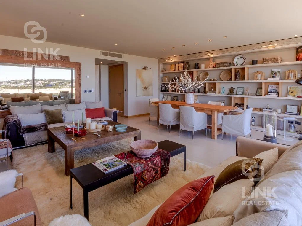 Magnífica planta con 3 amplias suites + dependencia de servicio completa con lavadero, parrillero propio techado, cómoda cocina . Muy disfrutables balcones con livings exteriores y 2 garajes independientes. Equipado con muebles de calidad y muy buen gusto. Excepcional vista directa a la Desembocadura y al mar.