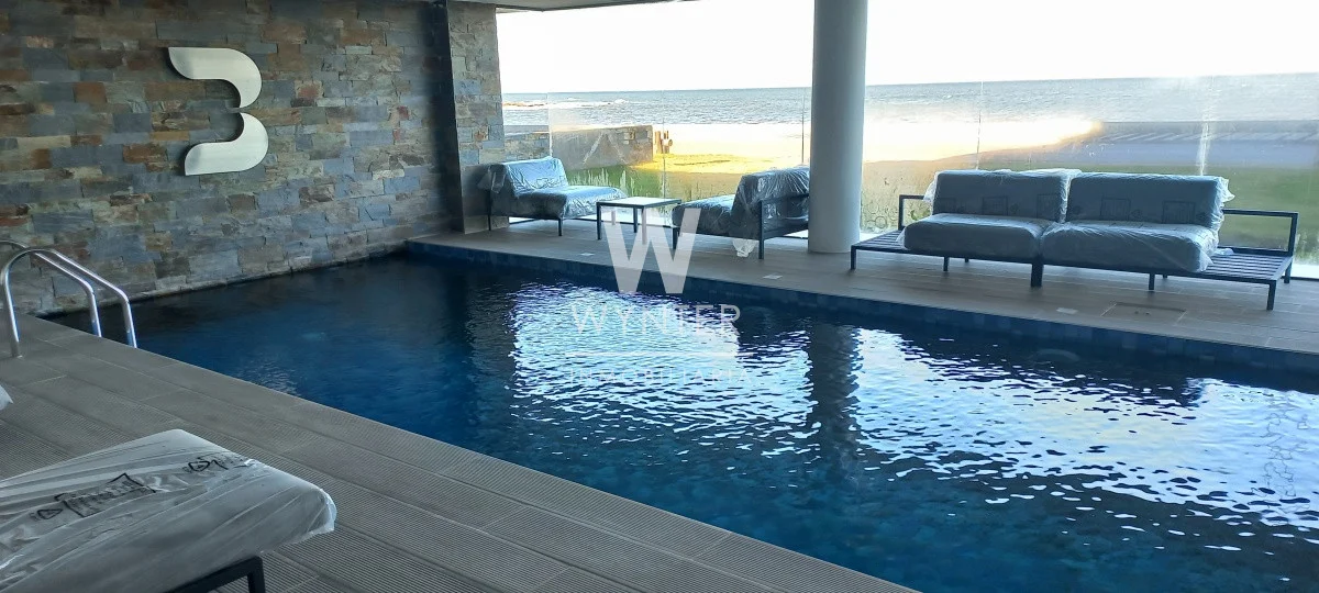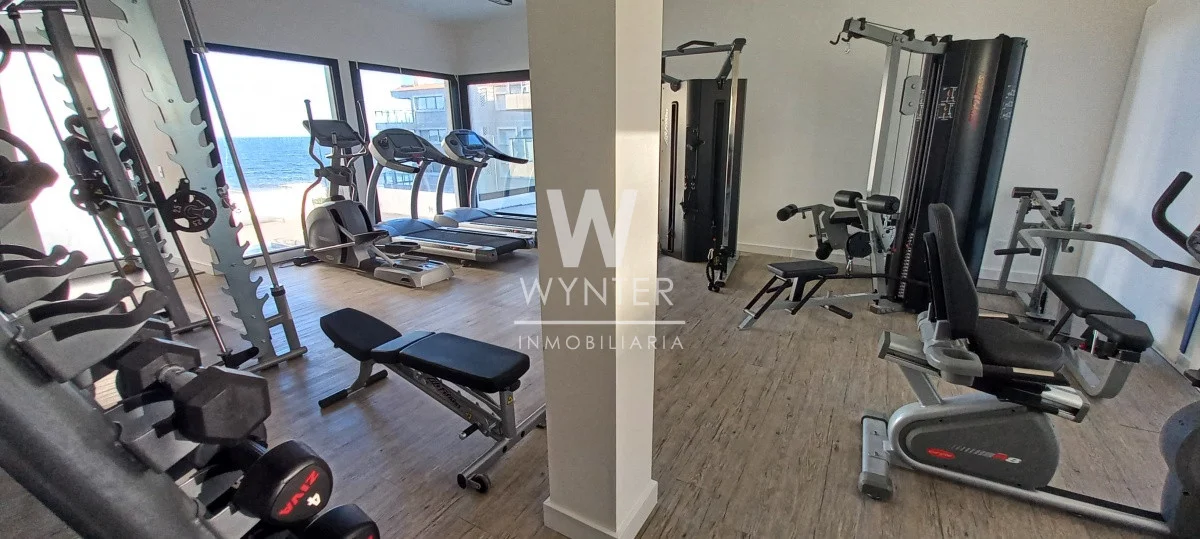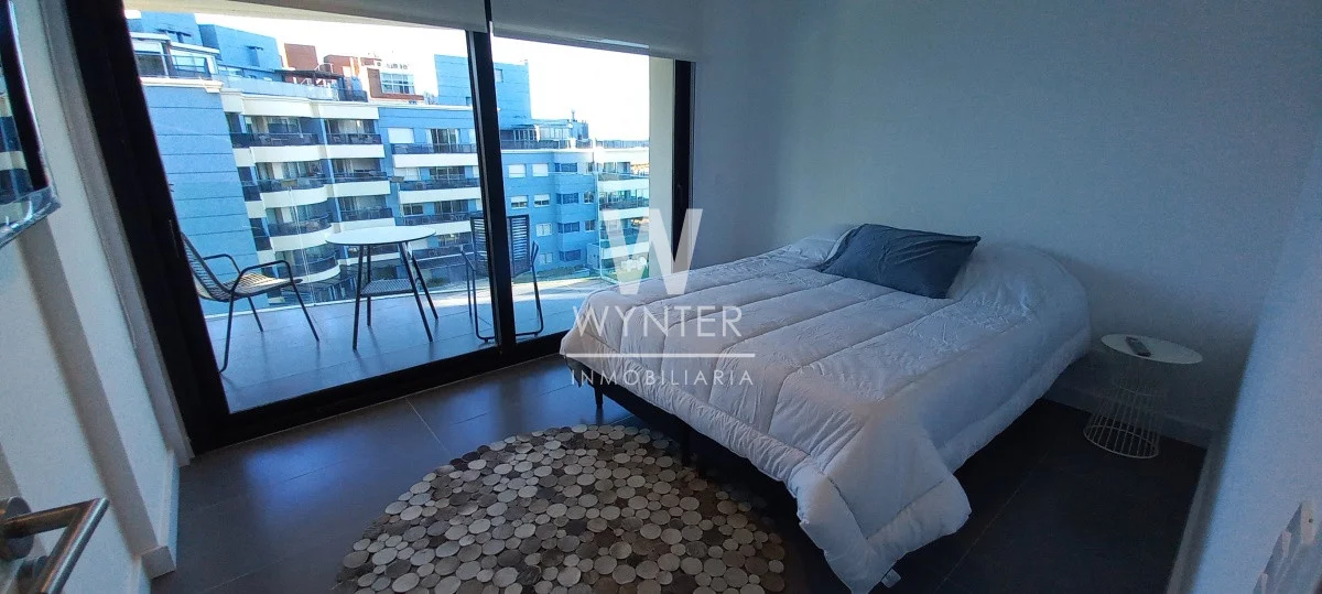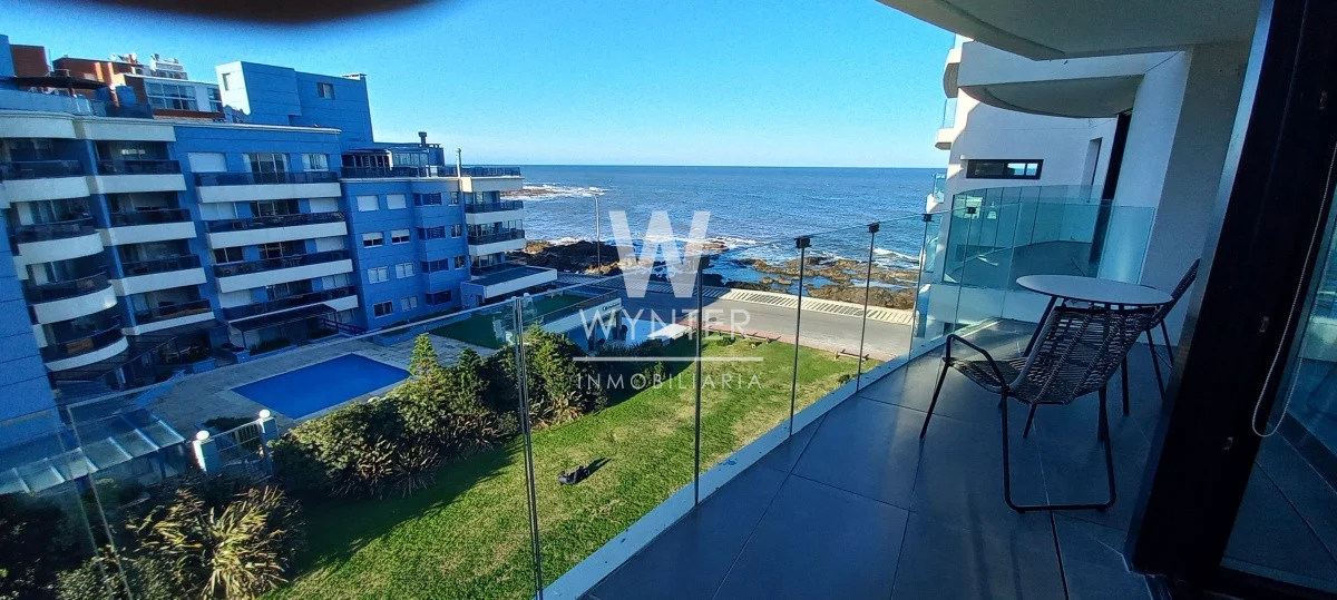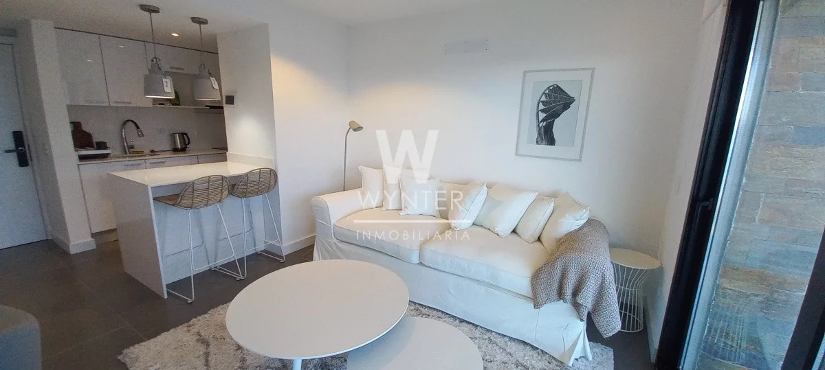 Apartamento de 1 dormitorio con 1 baño, living-comedor con terraza con vista al mar, kitchenette, garaje y losa radiante.
