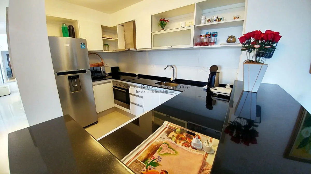 Comodo living comedor, con cocina integrada y amplio lugar de guardado. 2 dormitorios y medio, 2 baños completos, balcón amplio, cochera en planta baja. Calefacción por losa radiante.