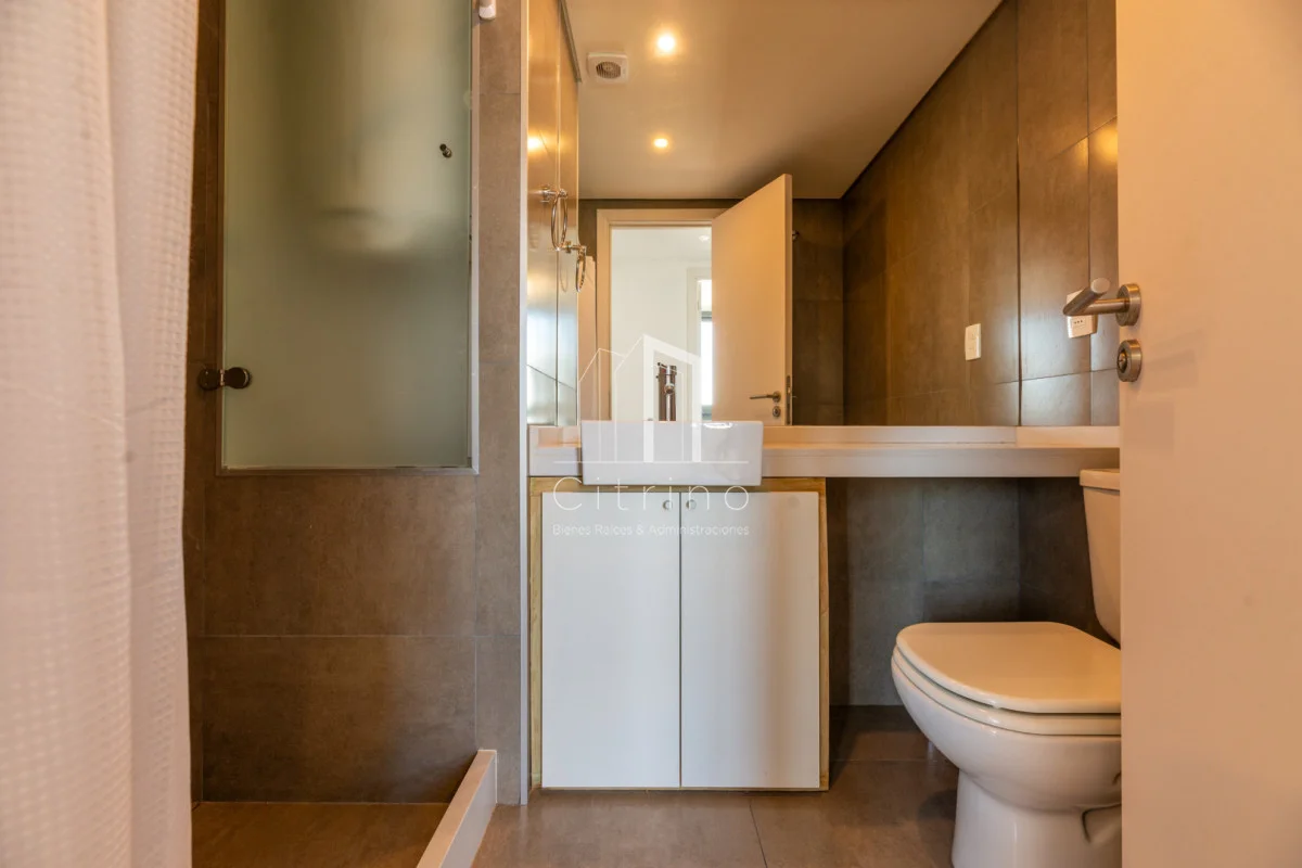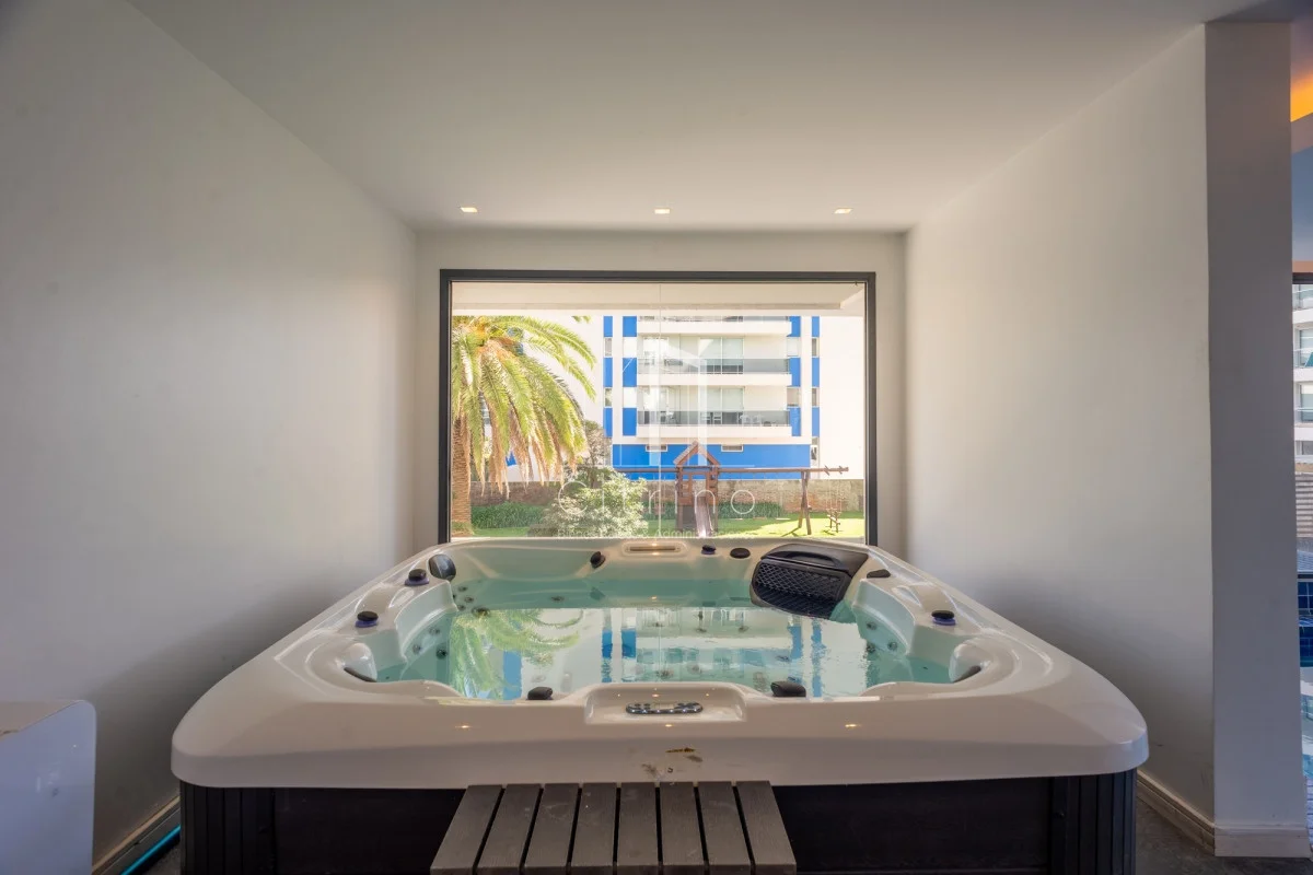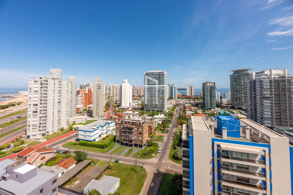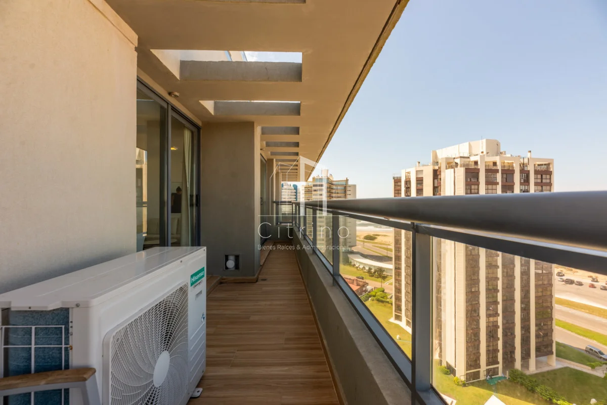 Piso alto en playa brava. Cuenta con 2 dormitorios, 2 baños (principal en siute), living-comedor con cocina integrada, terraza al frente con vista al mar y garage en subsuelo. Torre con servicio de recepcion 24hs, lavadero, piscina interna climatizada, piscina exterior, gym y parrilleros.