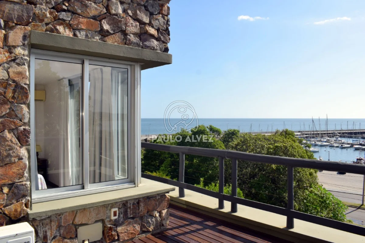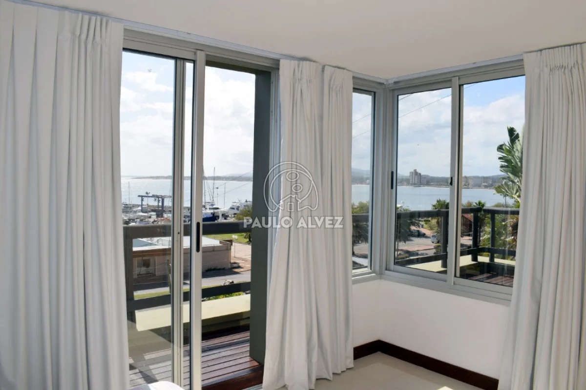 Hermoso apartamento en Amarras Reales. Dúplex, frente al mar con inigualables vistas al mar, puerto de Piriápolis y Cerros. Acceso a planta baja por cómoda escalera. Pasillo distribuidor a tres dormitorios, principal en suite, con aire acondicionado, con acceso a terraza. Baño completo con mampara de vidrio. En planta alta, living comedor cocina, concepto abierto. Amplias aberturas con doble vidrio que permite disfrutar de las espectaculares vistas del balneario. Amplia terraza. Doble garage incluído. Piscina, servicio de lavandería y seguridad. Contáctenos por más información.