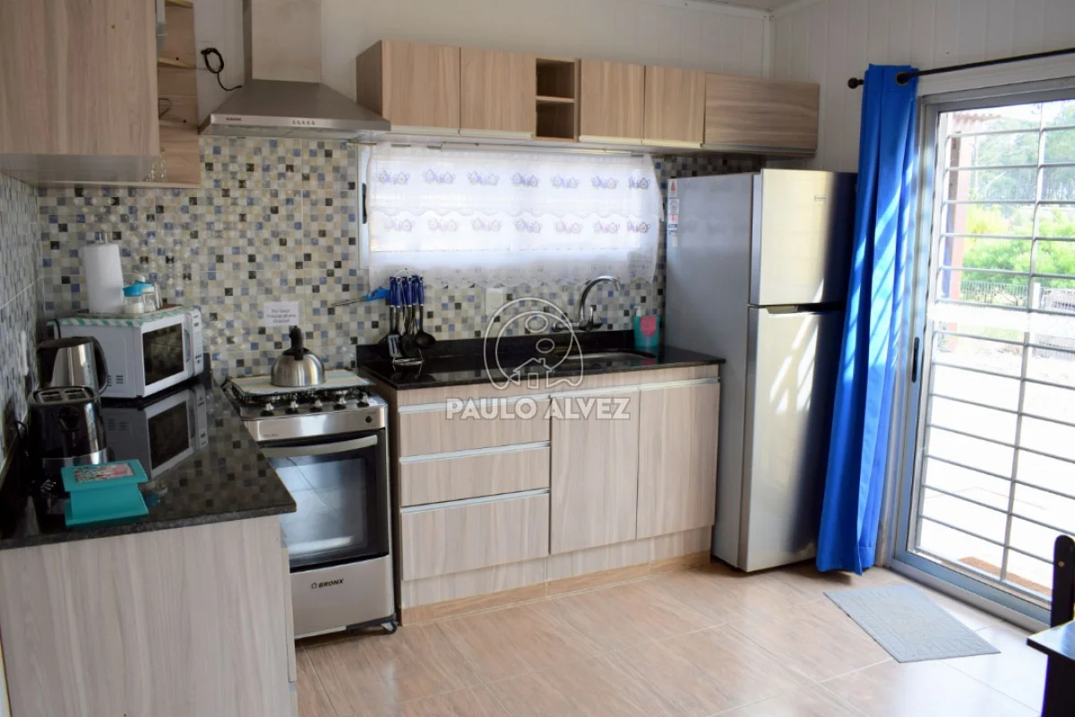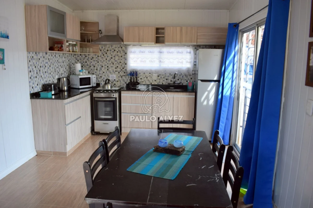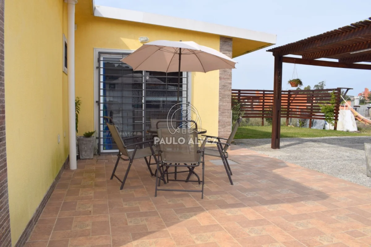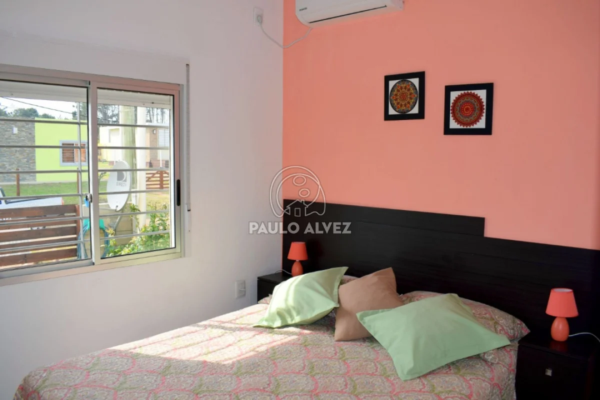 Ideal para disfrutar de sus vacaciones en un entorno tranquilo y natural, a 700 metros del mar. Propiedad al frente construida en el año 2017 sobre terreno de 266 m² con un total de 73 m² edificados, en régimen de propiedad horizontal. Se distribuye en living comedor con Tv Led con DirecTv, cocina completa integrada con acceso al patio, dormitorio matrimonial al frente con aire acondicionado, baño social, dormitorio con cama marinera y dormitorio principal con aire acondicionado en suite. Fondo con parrillero y pérgola. Jardín con cerca perimetral y rejas en aberturas. Por más información contáctenos.