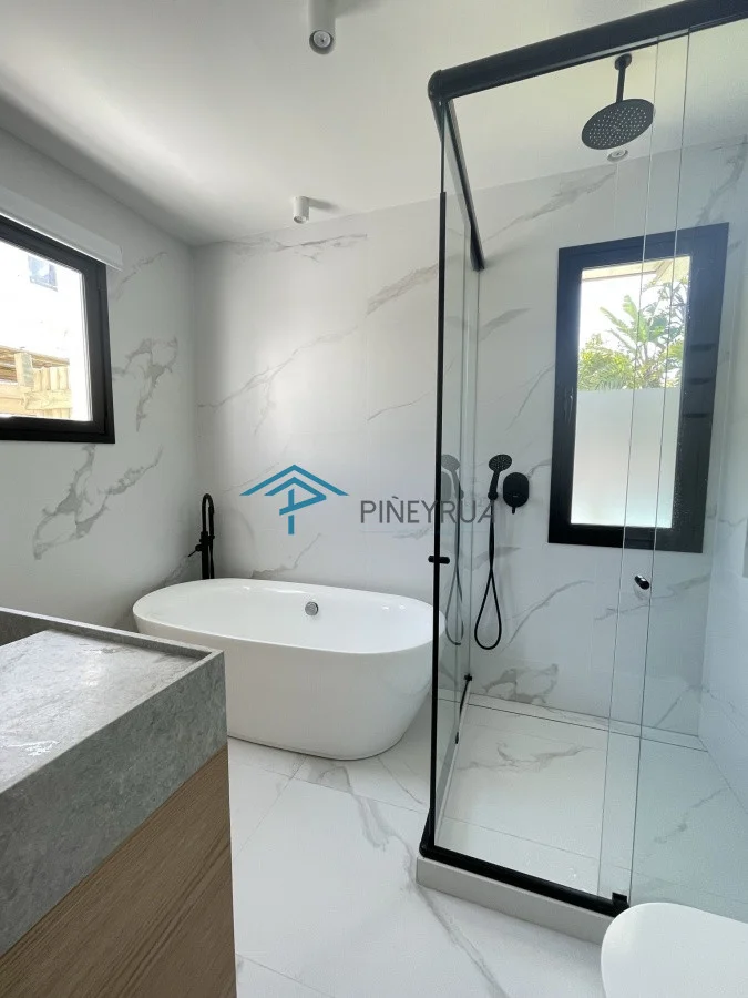 Planta baja: hall de entrada, dormitorio principal en suite con salida al jardín, dos dormitorios con un baño y lavadero. Jardín con piscina.