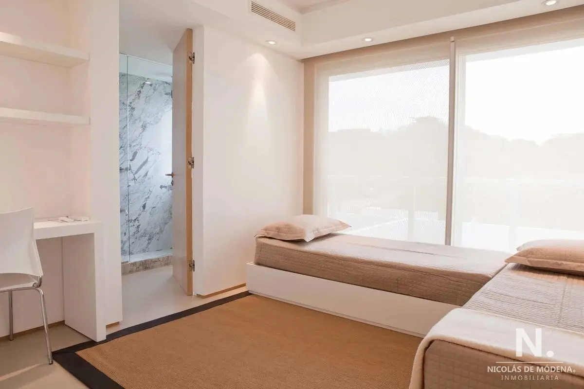 Otra suite con baño incorporado. Todos los dormitorios que dan hacia La Barra tienen vista directa al mar dada la forma del edificio.