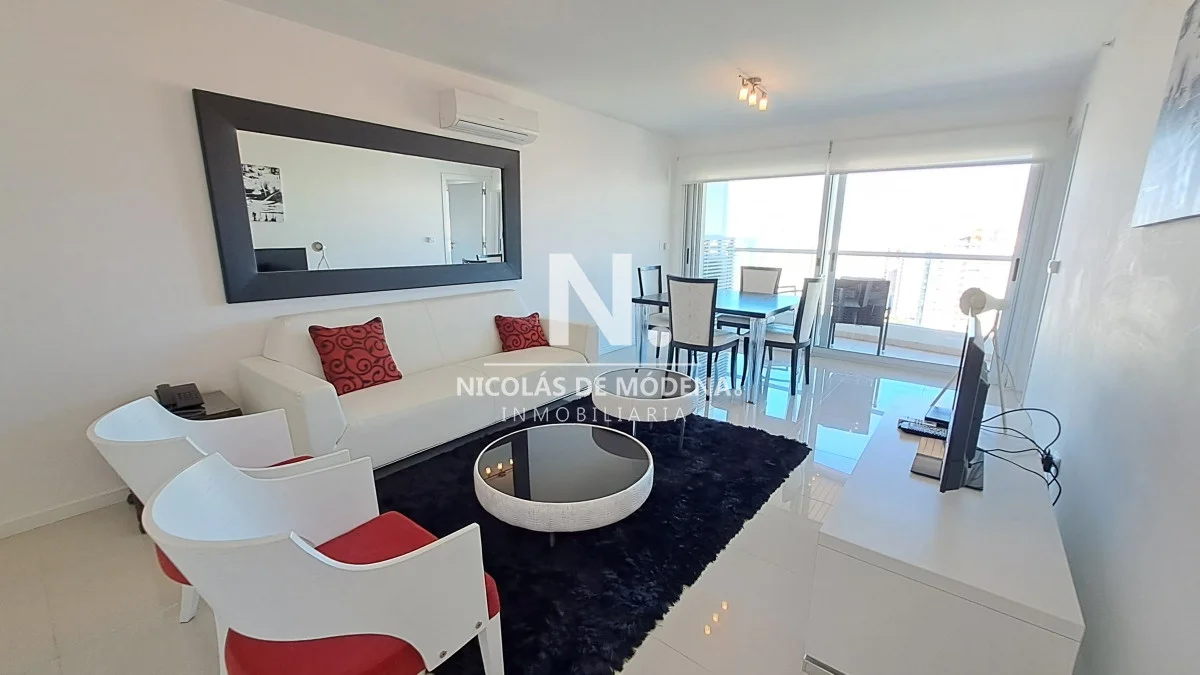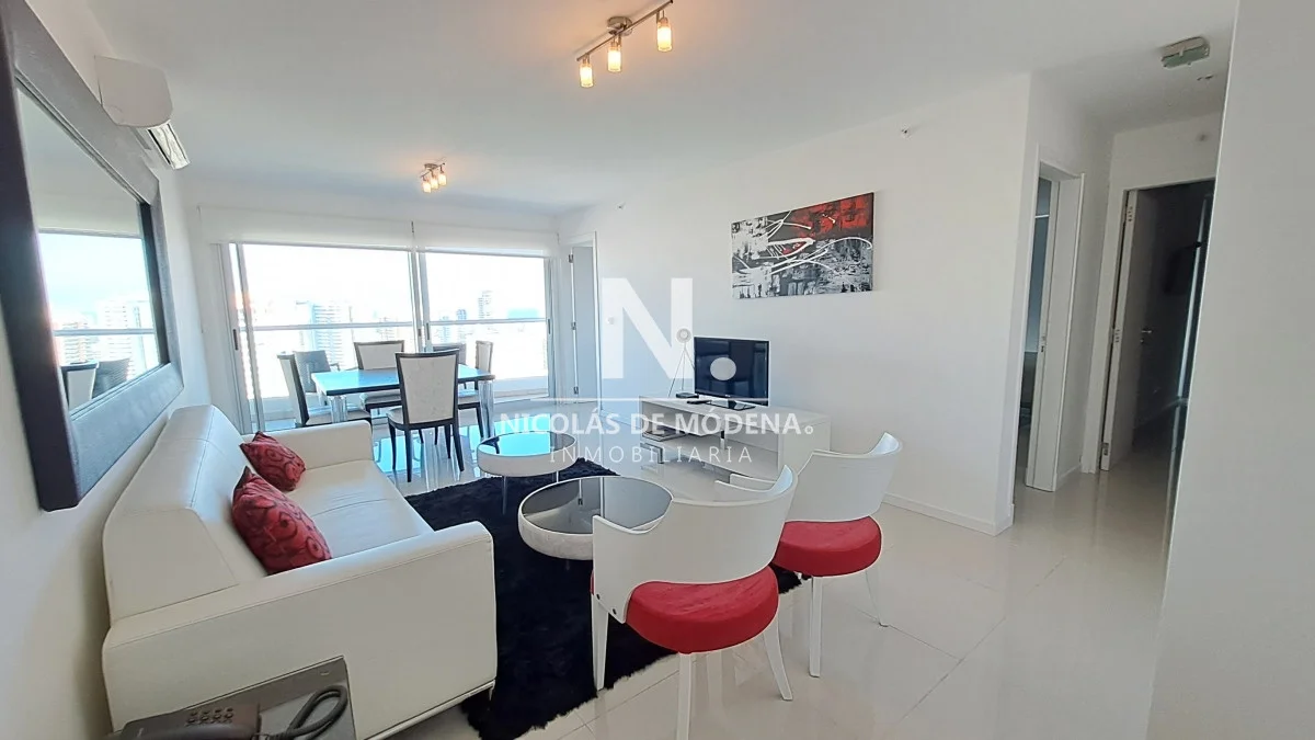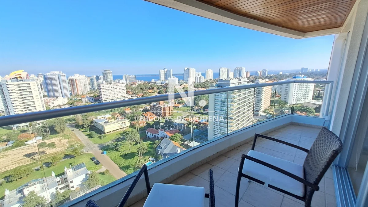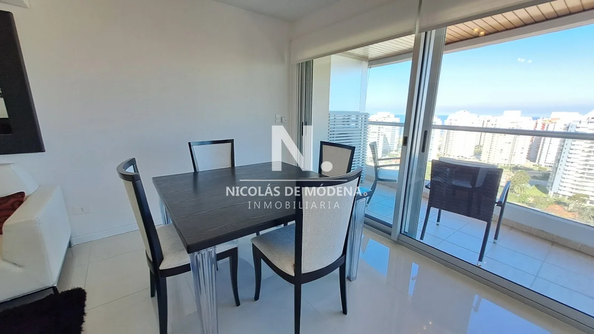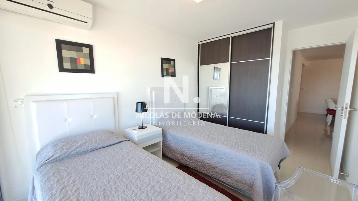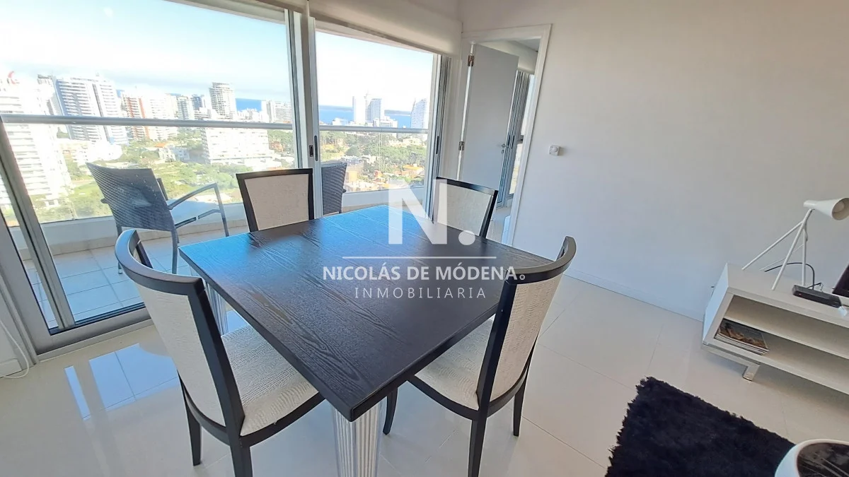 Consta de dos dormitorios y dos baños, uno de ellos en suite. Amplio living comedor con vista a Playa Mansa, Península y Playa Brava.