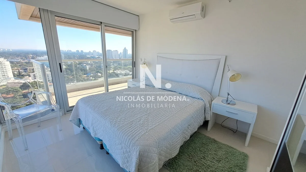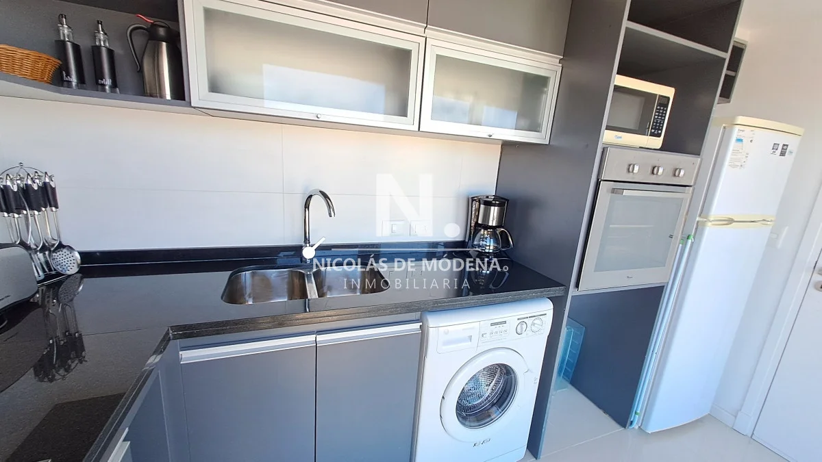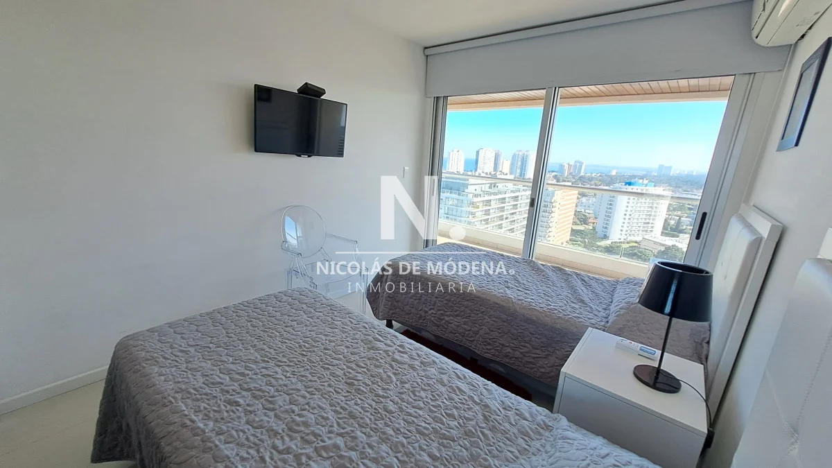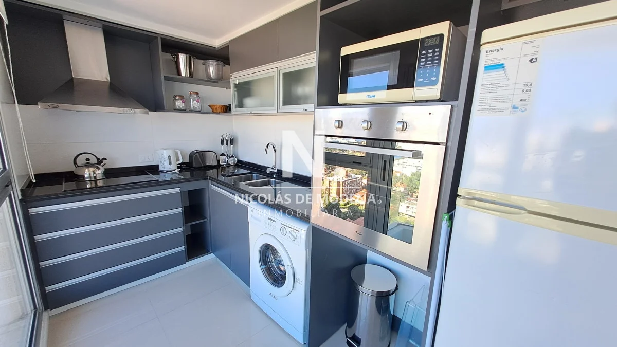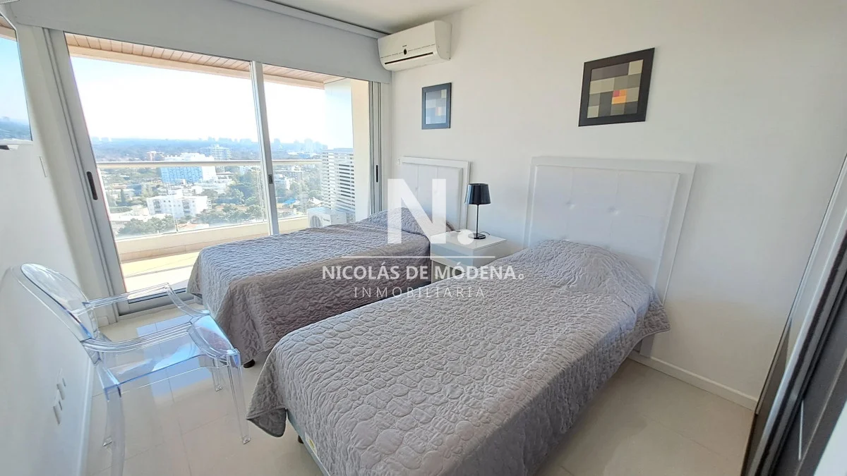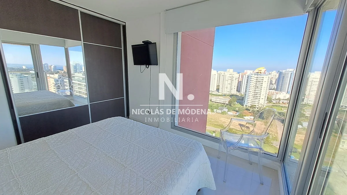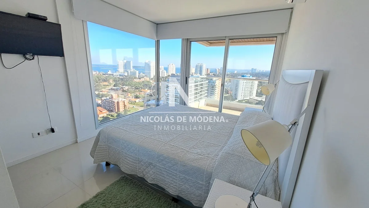 Consta de dos dormitorios y dos baños, uno de ellos en suite. Amplio living comedor con vista a Playa Mansa, Península y Playa Brava.