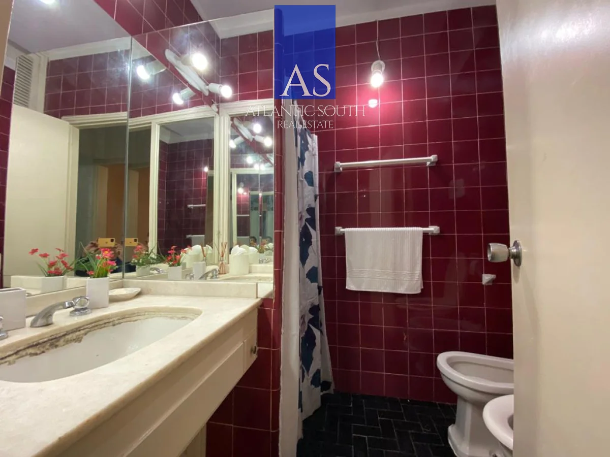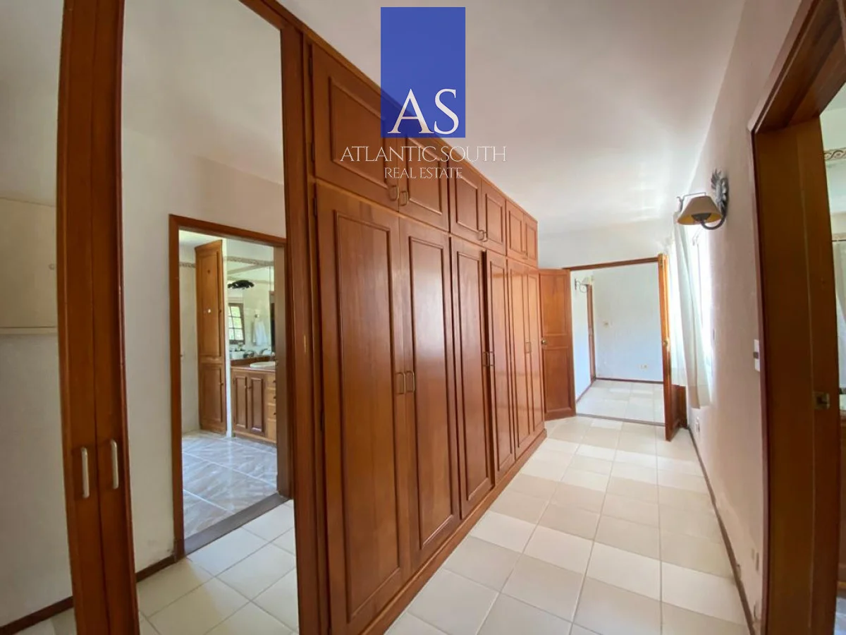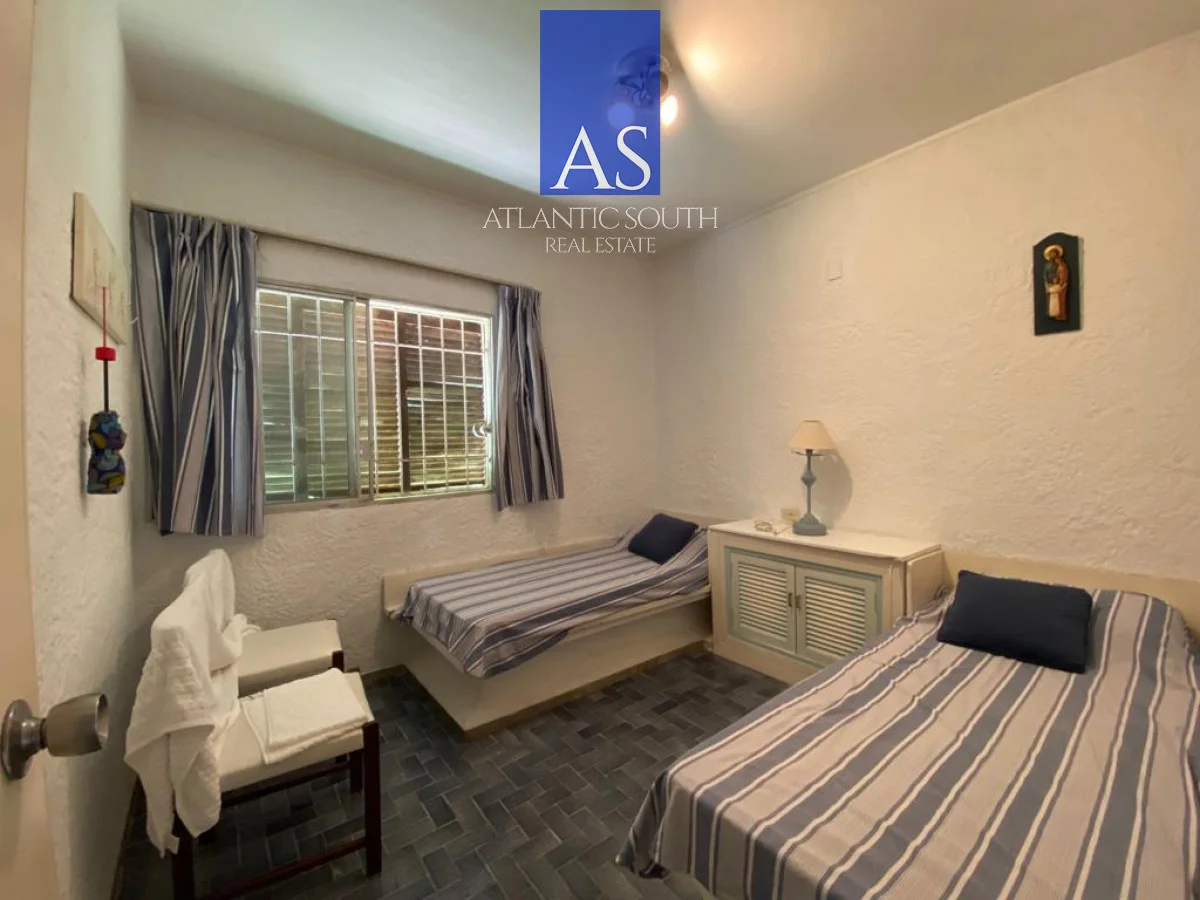 A la derecha hay un pasillo con un dormitorio con cama matrimonial, un dormitorio con dos camas simples, un baño completo, otro dormitorio con dos camas simples, segundo baño completo y cuarto dormitorio con baño completo en suite.