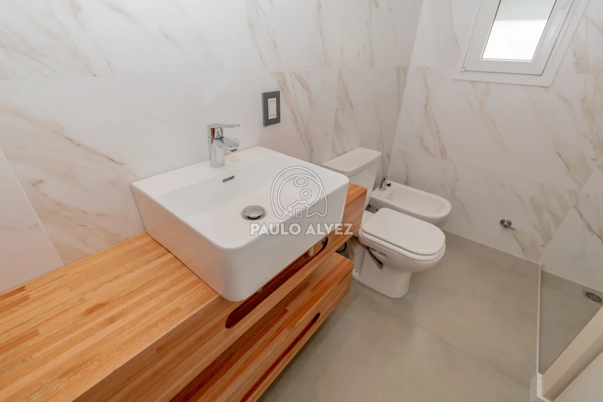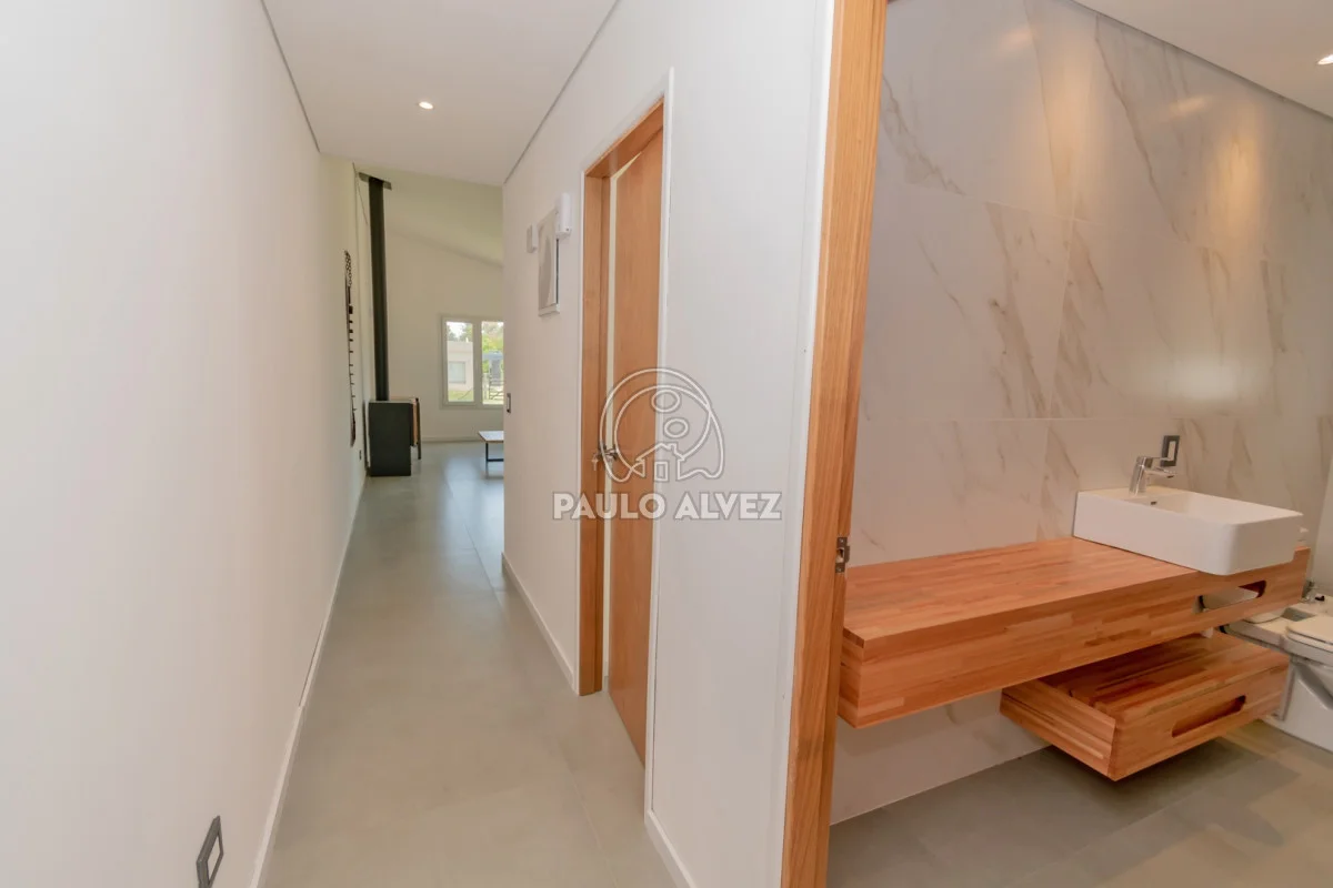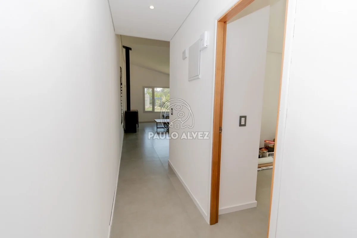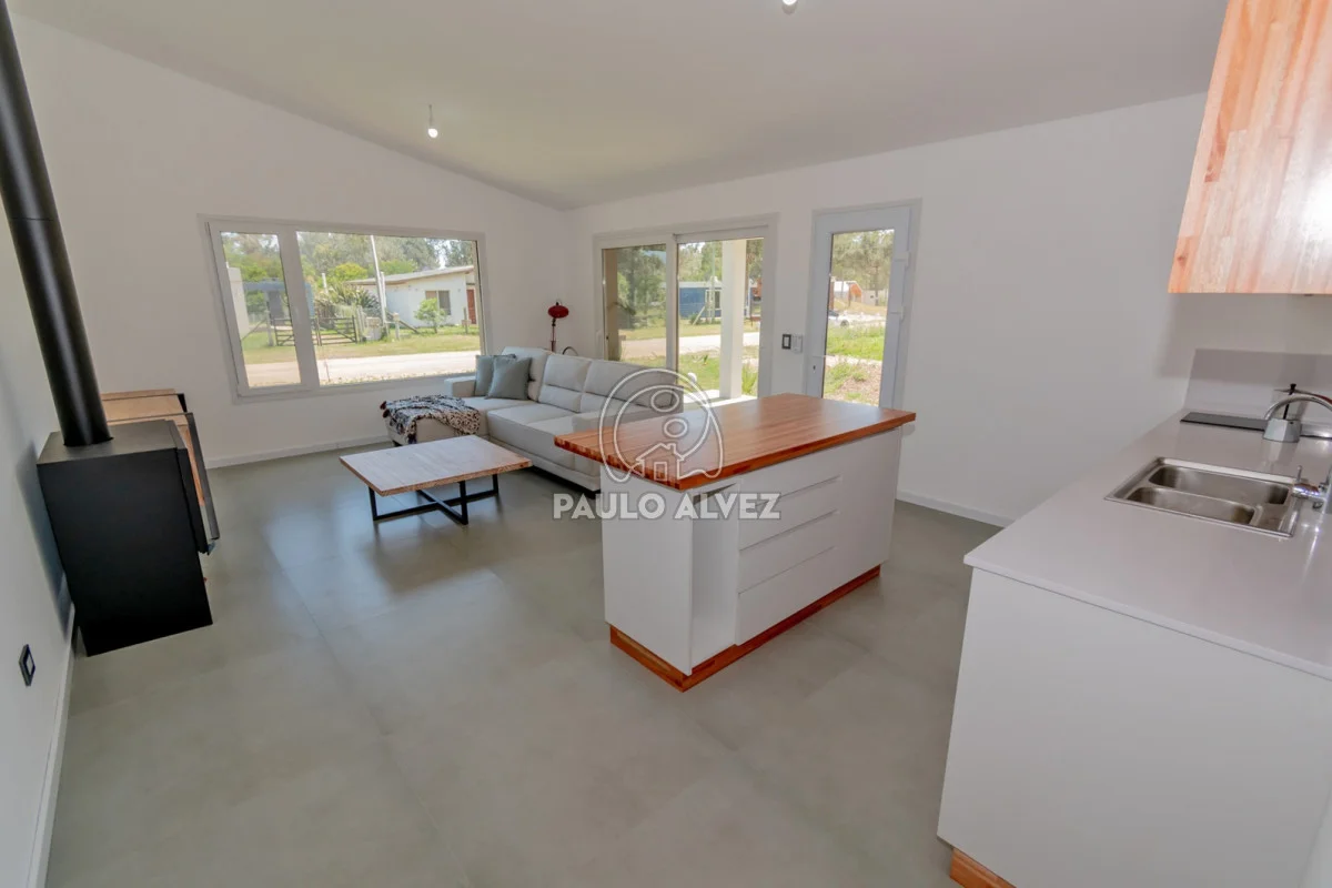 Moderna propiedad ubicada en Punta Colorada, rodeada de un entorno armonioso y natural. Ideal para llevar a cabo tu proyecto de vida permanente o renta, a 600 metros del mar aproximadamente. Emplazada sobre terreno de 550 m², 95 metros edificados en una planta y 14 metros de frente orientados hacia el Oeste. Construcción tradicional de estilo nórdico, paredes de ticholo revestidas en su exterior con chapa galvanizada, revestimiento interior en yeso con cámara de aire, techo liviano con aislación termo acústica de espuma con foil de aluminio, lana de vidrio y cielorrasos en yeso con iluminación Led. Aberturas de nivel Premium en PVC con vidrios DVH y pisos en porcelanato. Ambientes funcionales y luminosos distribuidos en living comedor con estufa a leña de alto rendimiento, cocina definida por isla con gabinetes y equipada con muebles bajo y sobre mesada. Pasillo distribuidor hacia baño social completo y dos dormitorios (matrimonial en suite). Deck en madera, parrillero cubierto y amplio parque con espacio verde. Previsión para instalaciones de aire acondicionado y sistema de alarma en todos los ambientes. Consulte por más información.