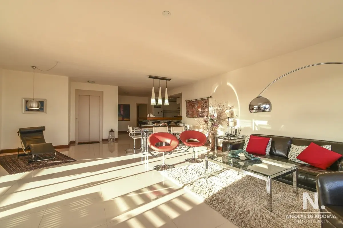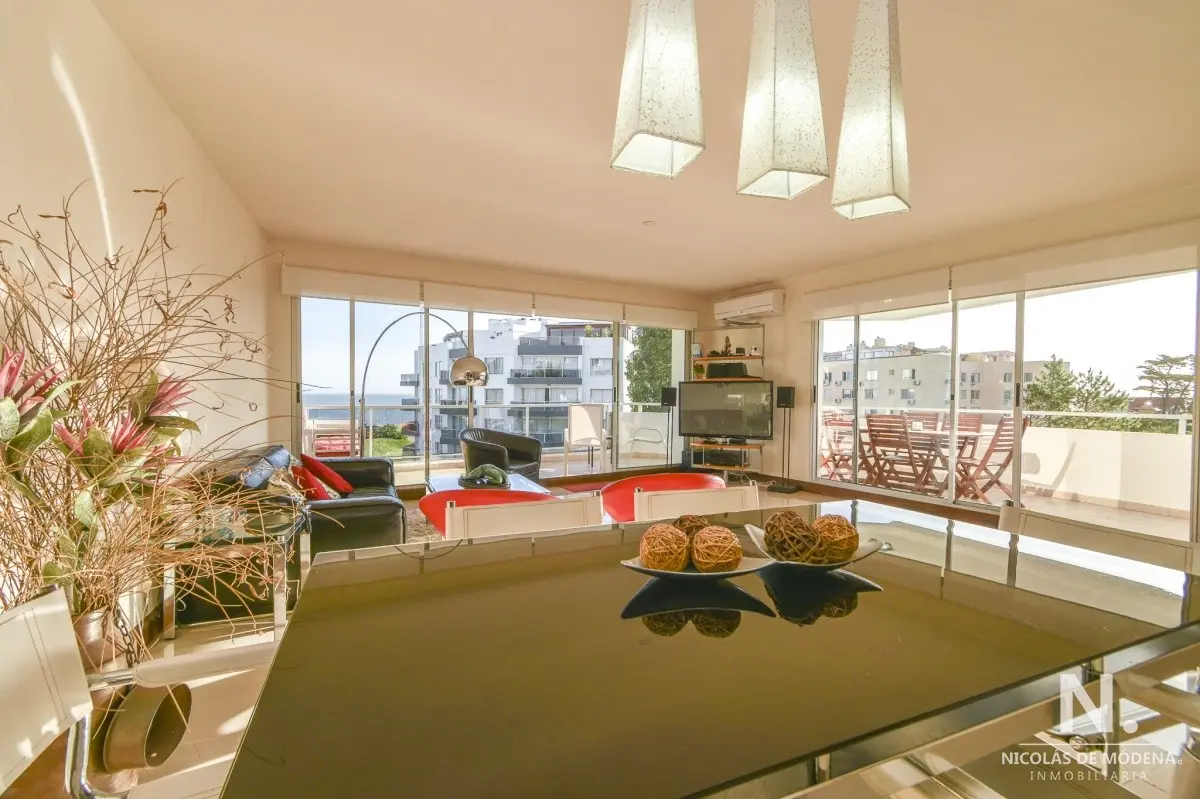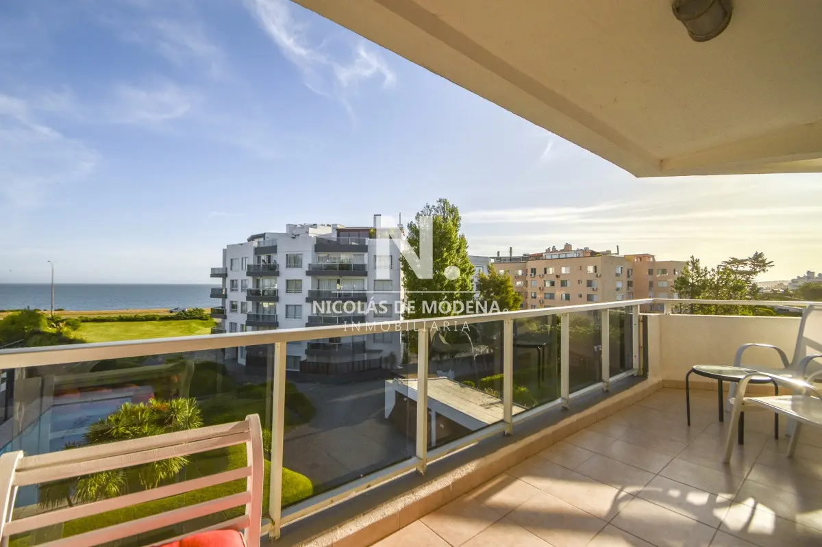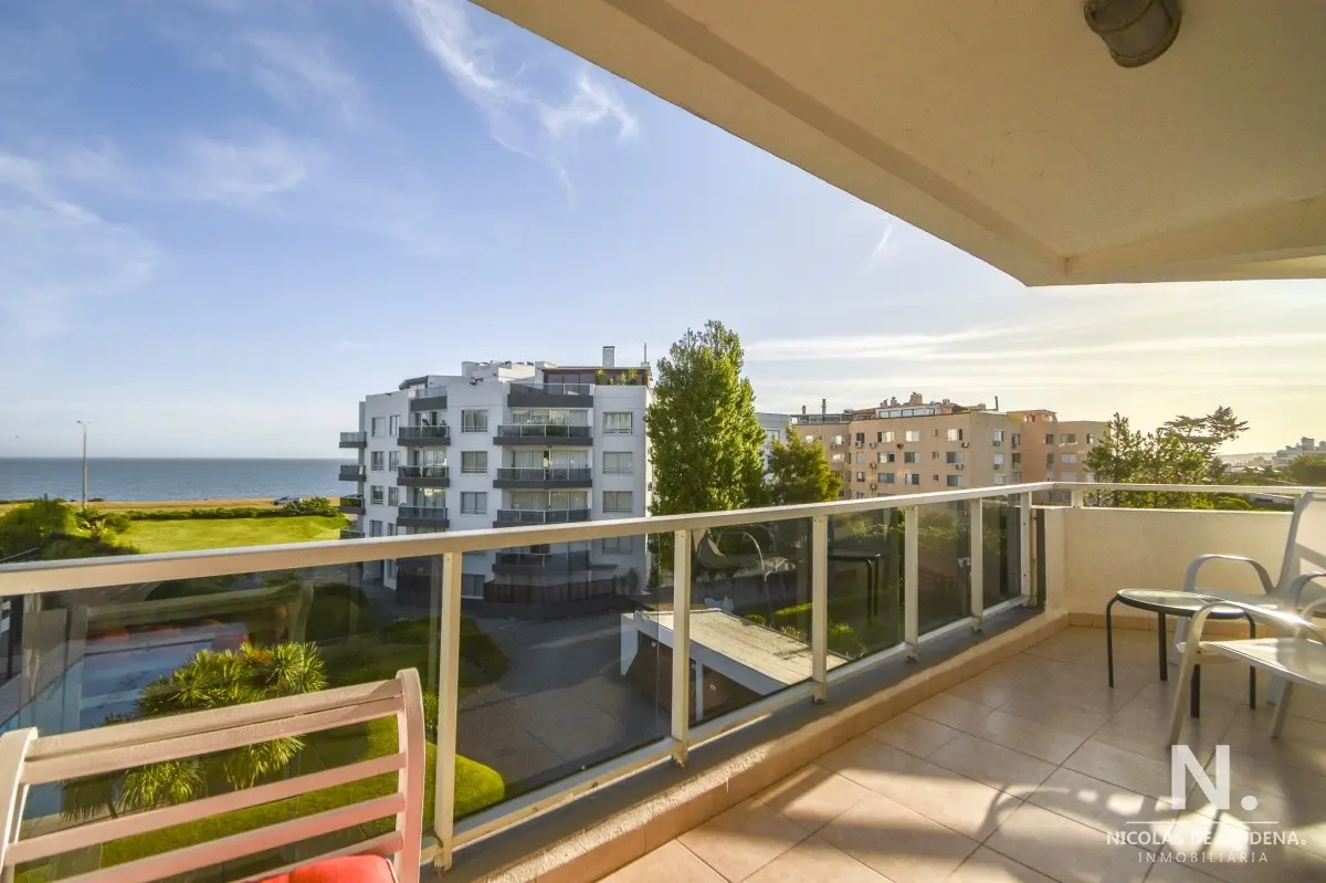 Excelente planta, con amplios espacios y vista al mar. Dispone de tres dormitorios, dos baños completos, el principal en suite más toilette de visitas. Espacioso y luminoso living comedor con salida al balcón mirando al mar y parrillero propio. Cocina tipo americana, bien equipada con área de lavadero.